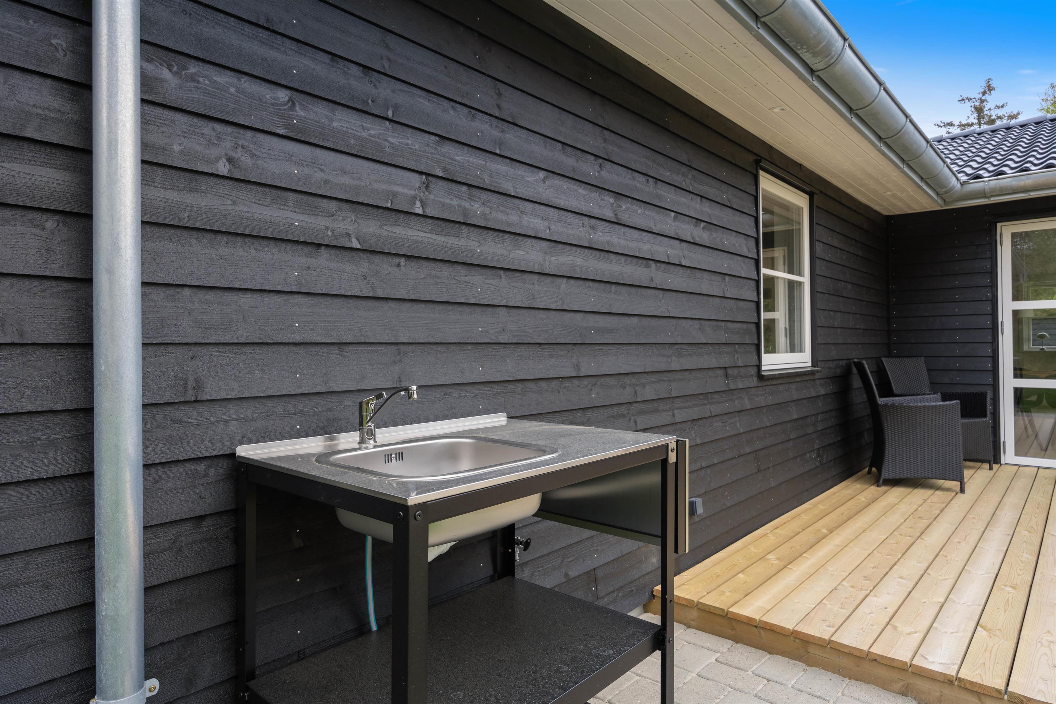 One of the absolute highlights of the holiday home is undoubtedly the outdoor hot tub, which includes whirlpool features. You can enjoy it in any weather, whether rain or snow, warming up whilst gazing at the stars. The holiday home is surrounded by a beautiful terrace, partially covered, complete with garden furniture, a barbecue, and an outdoor kitchen for making the most of your holiday in the sun. The outdoor shower is available from April to November for washing off sandy feet.