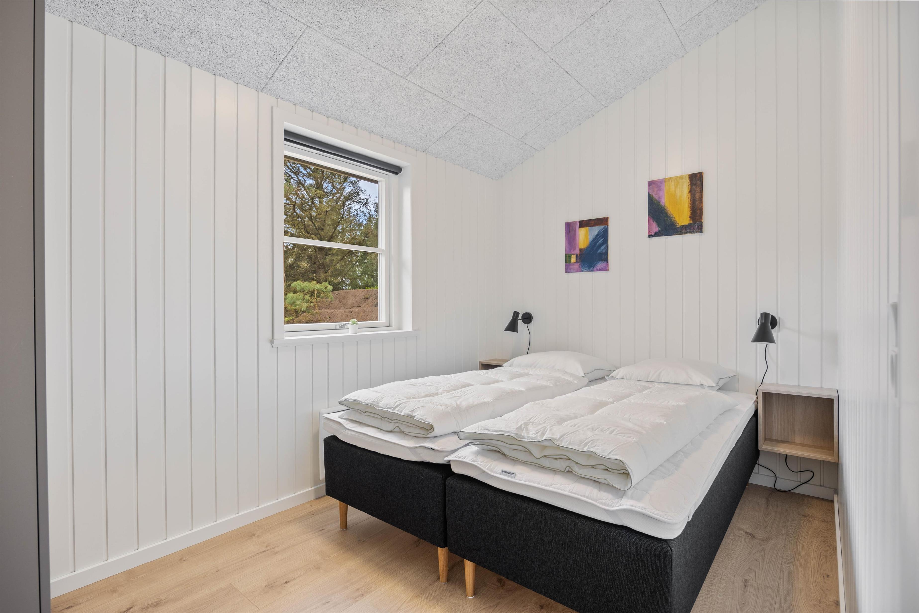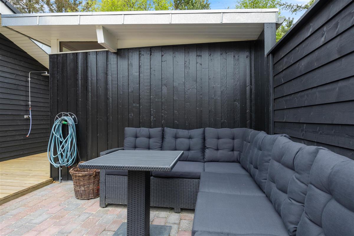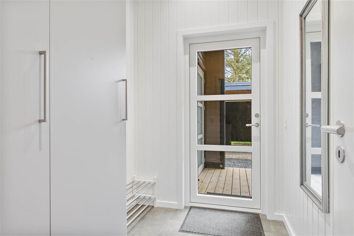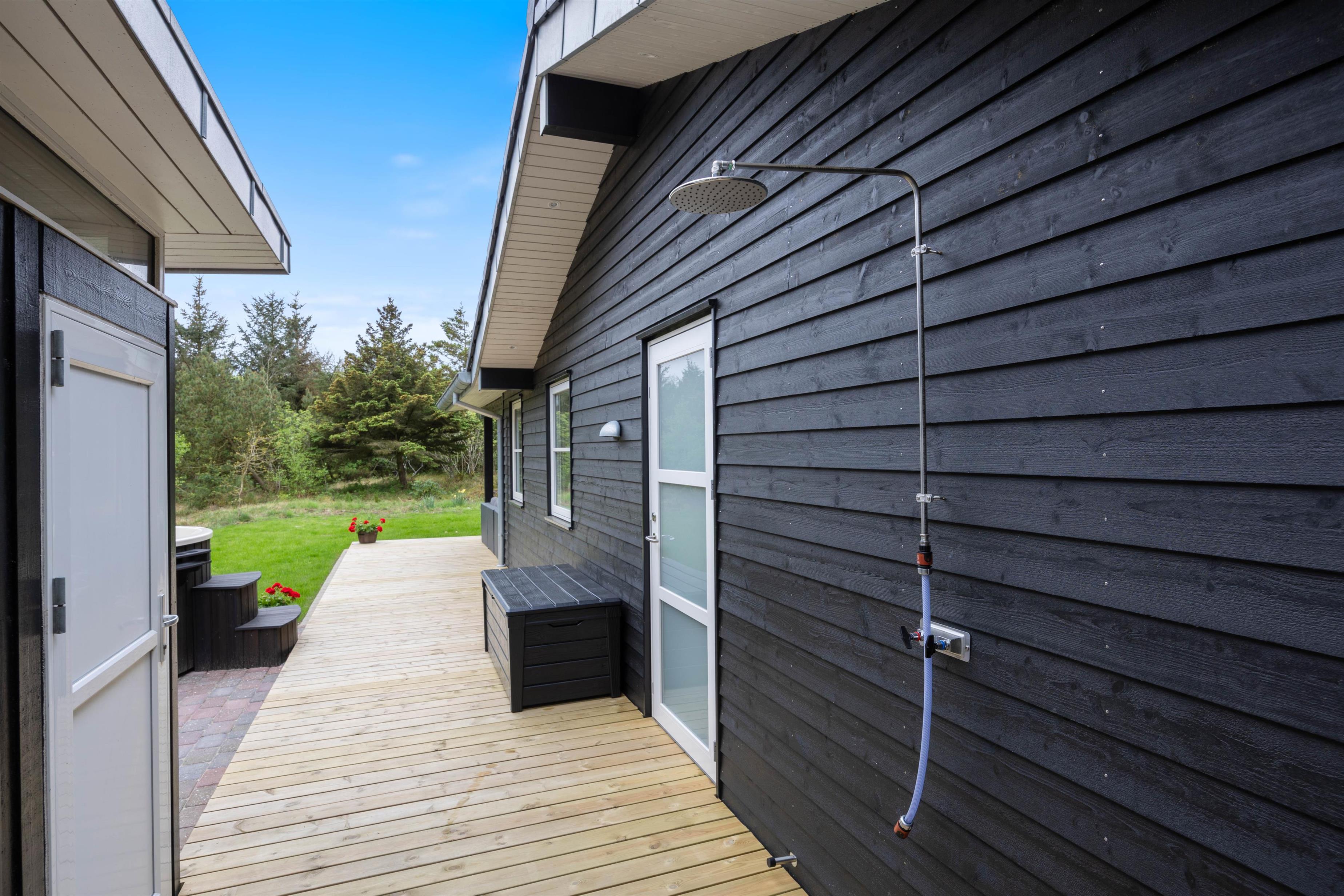 The holiday home features three bedrooms, each with a double bed, perfect for recharging after a day's activities. The comfortable beds ensure you wake up fresh and ready for new holiday adventures. There are two bathrooms, both with underfloor heating, and one houses the holiday home's sauna. Here you can relax and let your thoughts drift while recovering from everyday stress. After a lovely beach walk, you can rinse the sand from your feet using the outdoor shower.