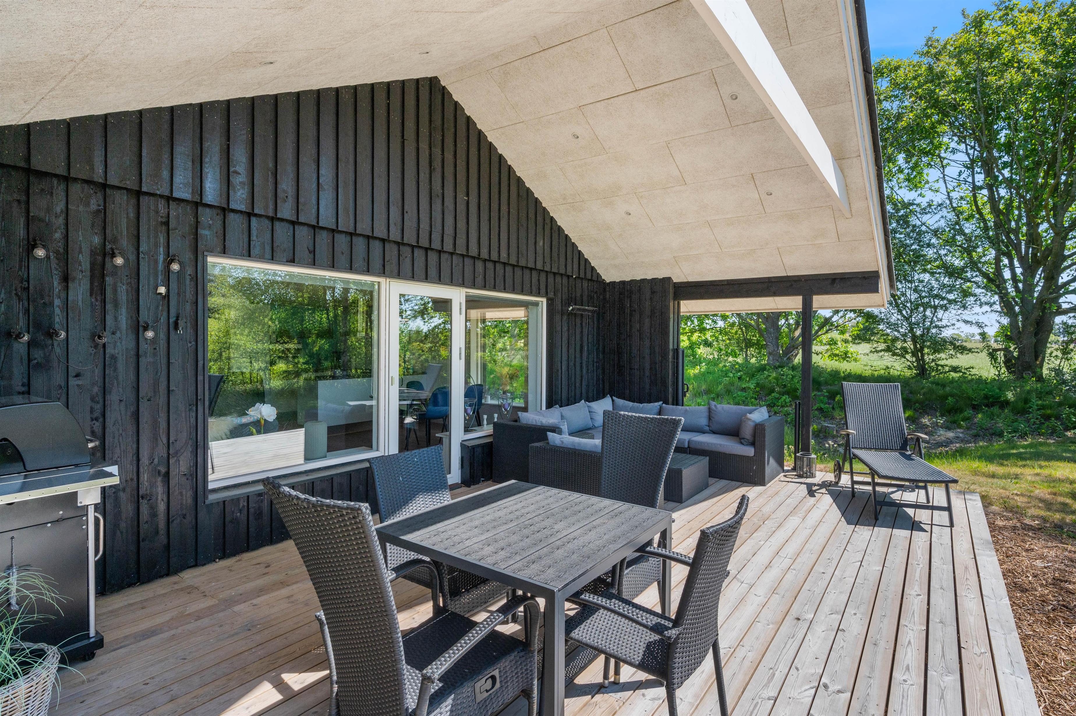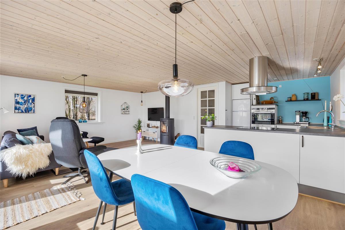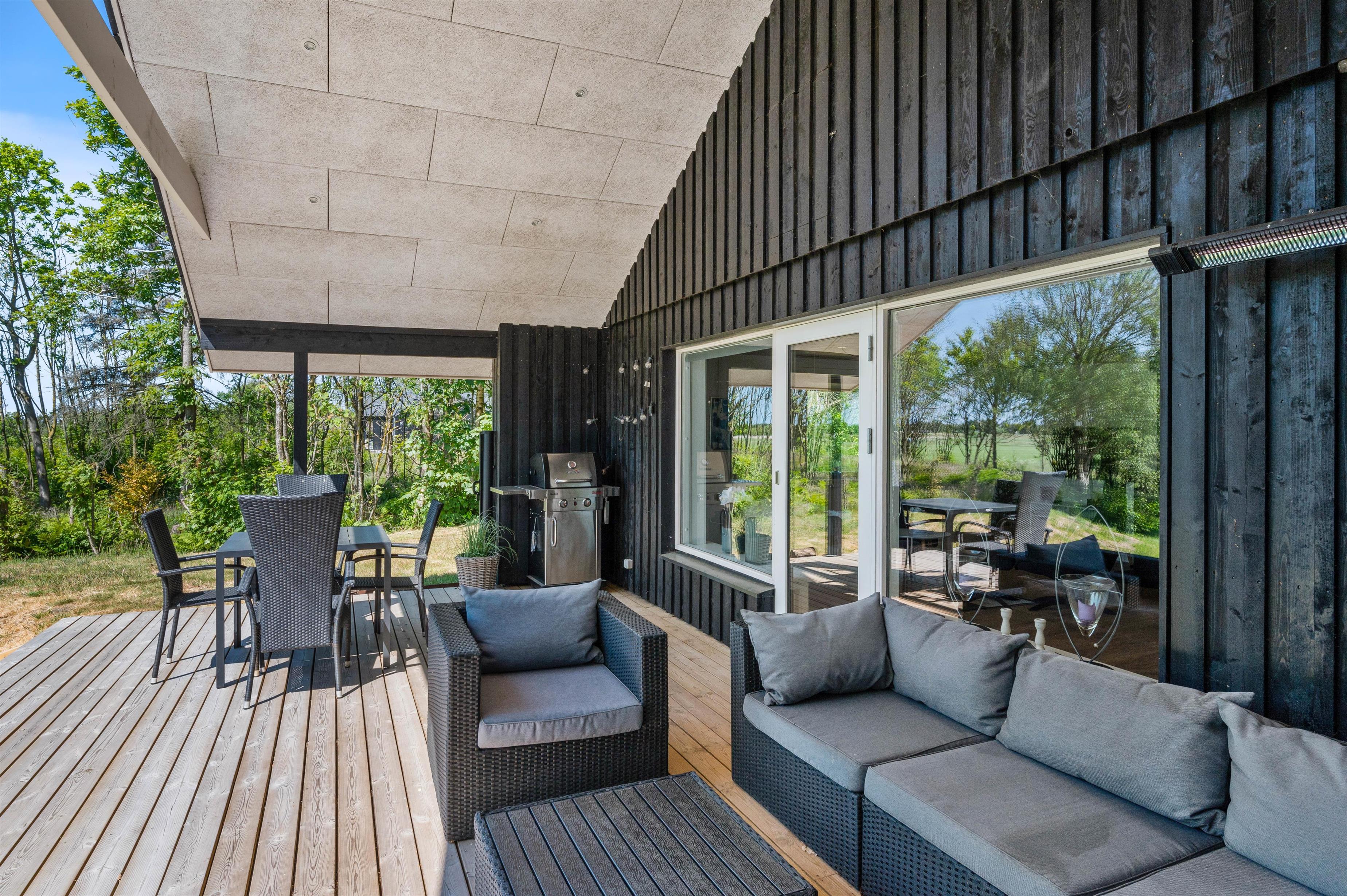 The holiday home at Risbjergvej 80 in Lodberg Hede sits on a 2,438-square-metre lawned plot at the end of a quiet cul-de-sac. Here you can escape the stresses of everyday life and enjoy views across the surrounding fields. The lawned grounds provide plenty of space for children and dogs to play while you relax on the covered terrace with a cool drink. In the evening, fire up the gas barbecue and enjoy an al fresco meal.