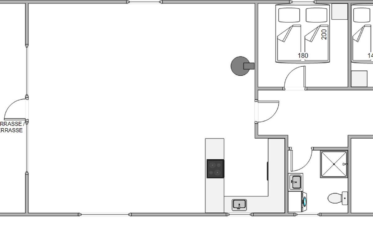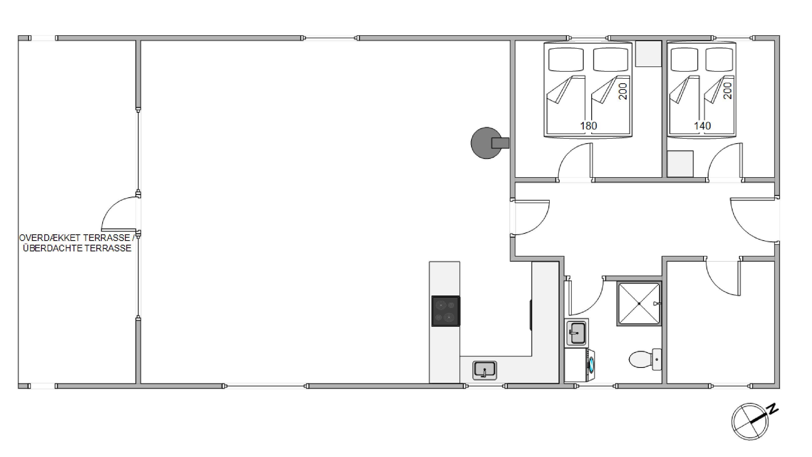 The holiday home offers 77 square metres of space, comfortably accommodating 4 people and a dog. At its heart is the spacious, bright and airy open-plan area combining the kitchen, living room and dining space. Here you can spend many enjoyable hours together cooking, playing games or simply relaxing.
