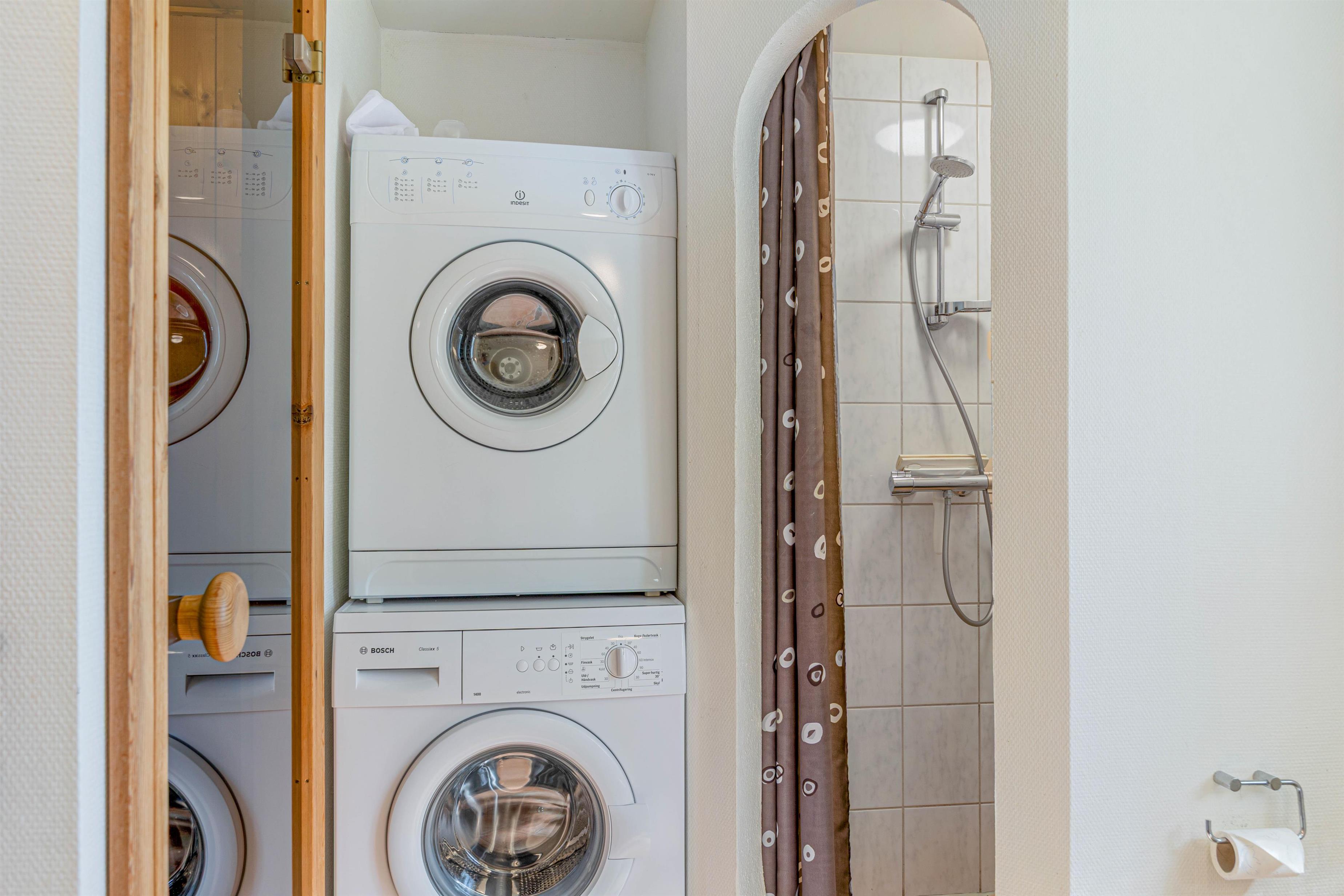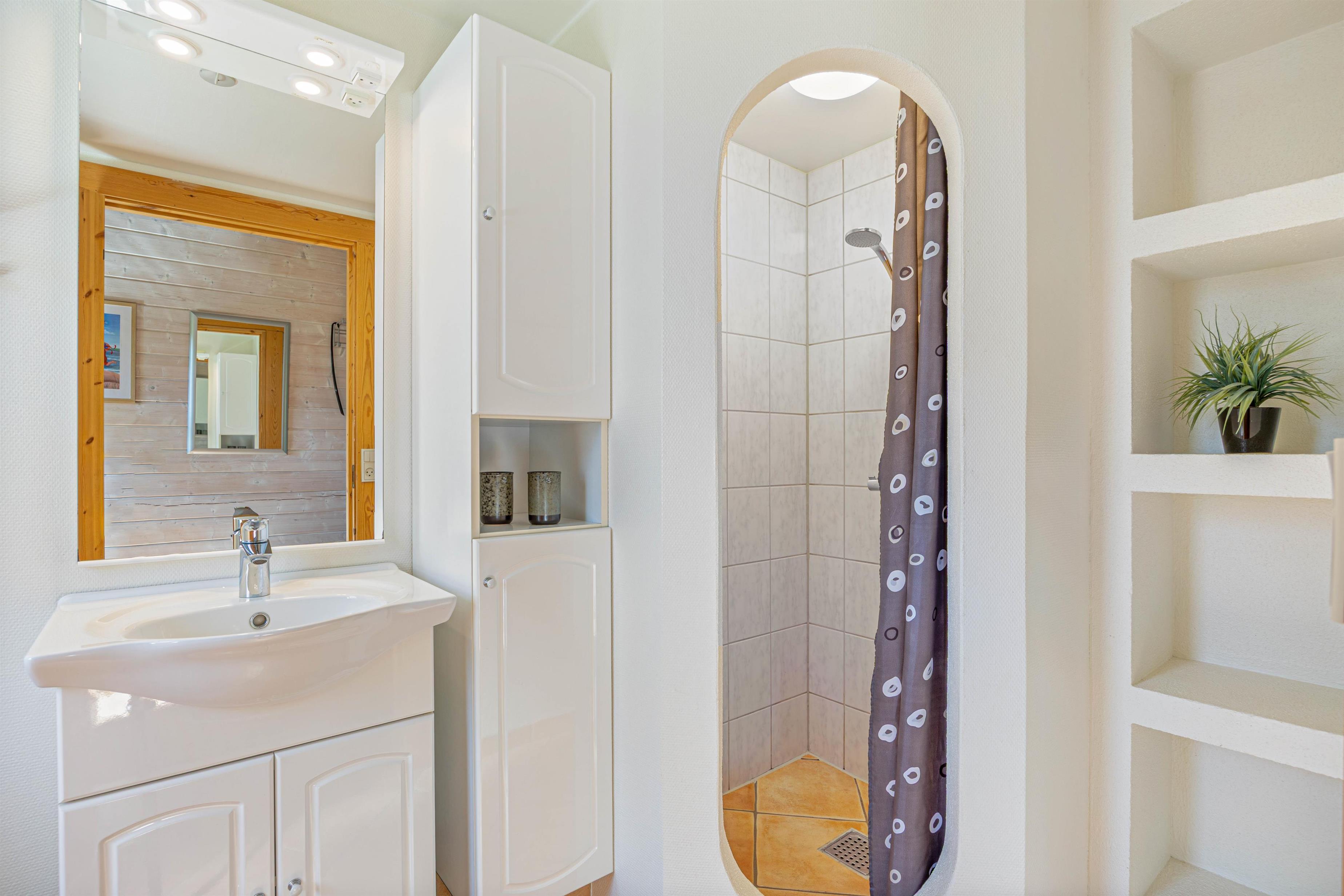The holiday home features beautiful terraces on different sides, allowing you to find a sheltered spot nearly any time. The west-facing terrace is partially covered and screened, making it perfect for cosy family barbecue evenings. Children can play on the adjacent lawn.