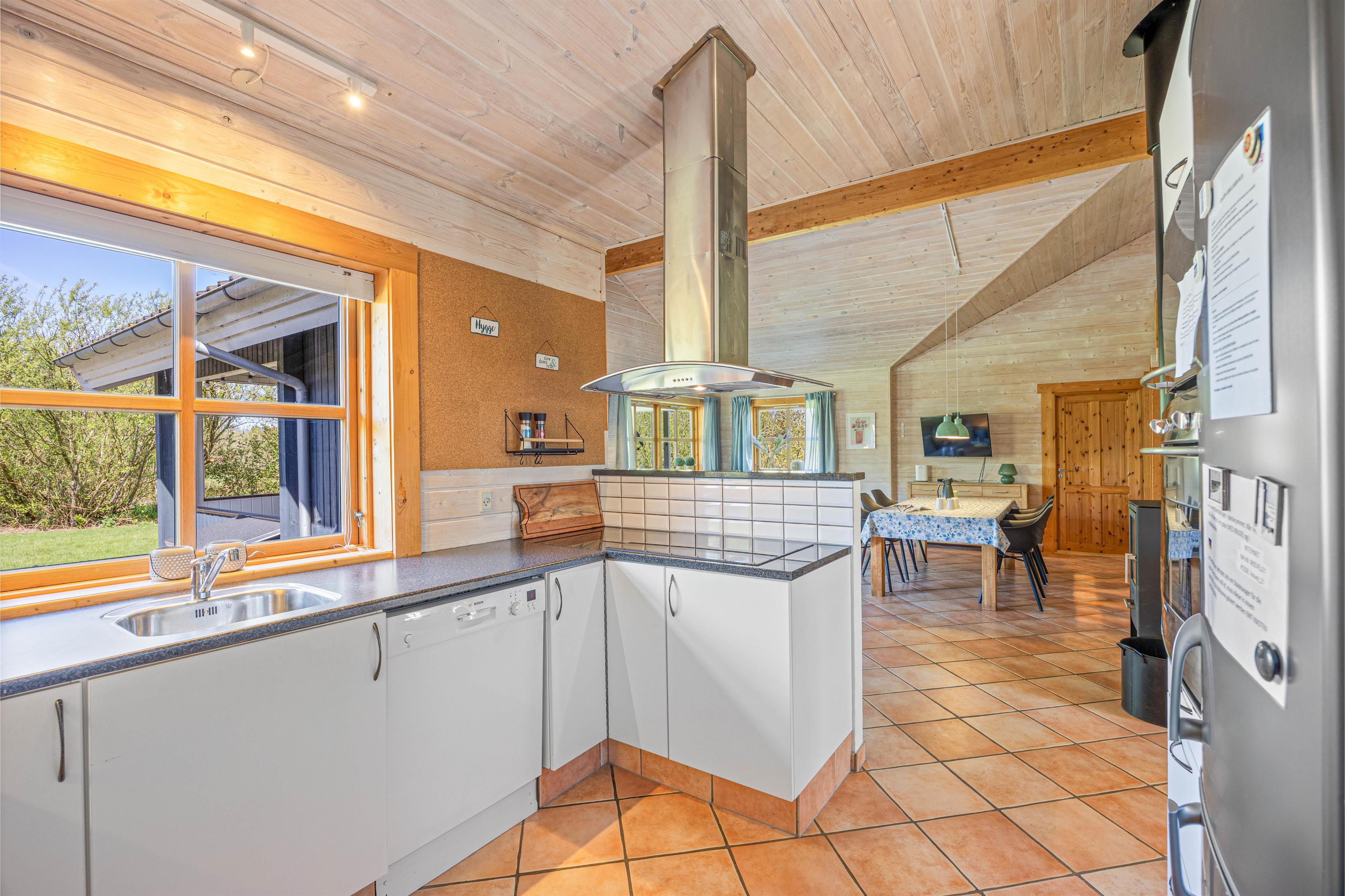 This holiday home is a beautiful, rustic timber house that's both well-maintained and welcoming. It provides the perfect setting for a wonderful family holiday. There's plenty of space around the holiday home, and to the north, you can enjoy views over a nature reserve. The wood-burning stove creates a cosy atmosphere where you can warm up and enjoy the crackling fire.