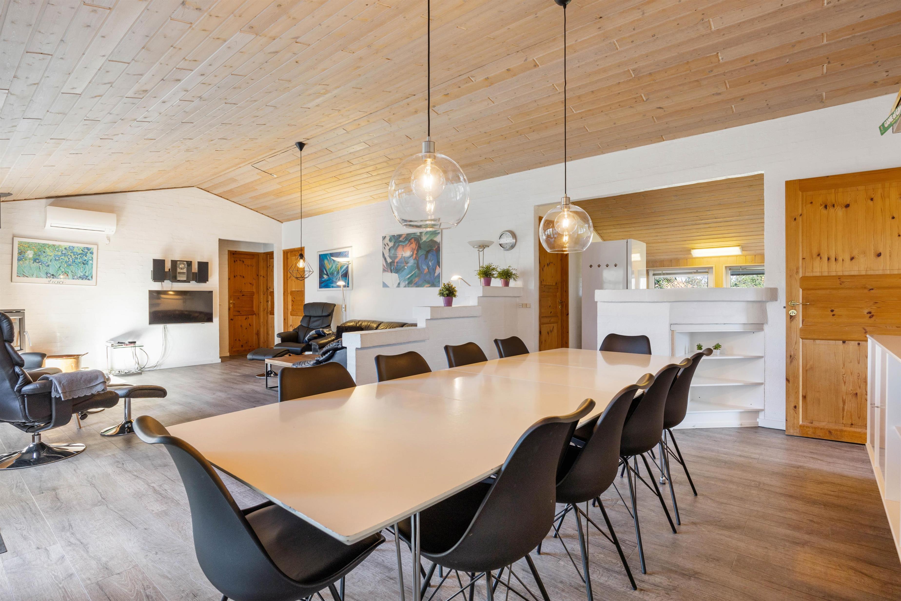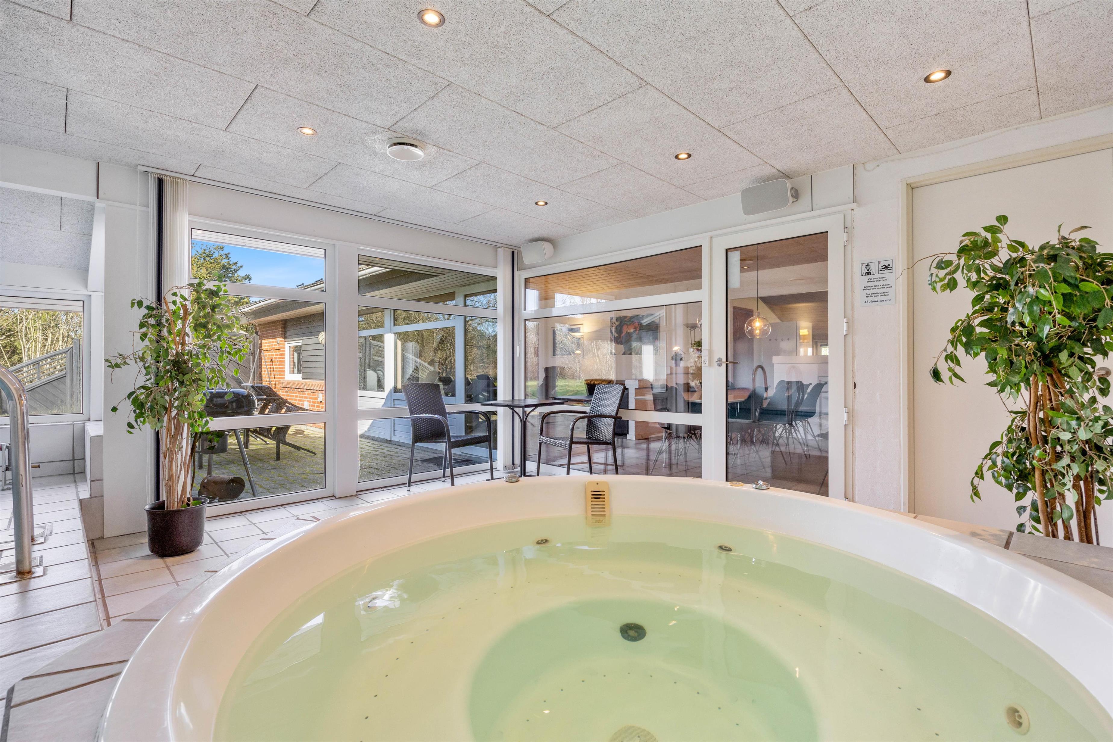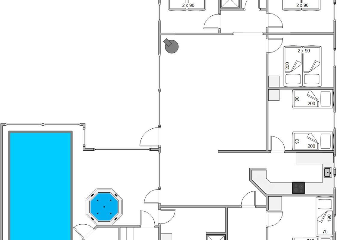 This 181-square-metre holiday home at Hybenvej 8 in Lodberg Hede, complete with swimming pool, sauna and hot tub, accommodates 12 people and 2 dogs. Whether enjoying the generous pool area with its private swimming pool, hot tub and sauna, or relaxing in the cosy living room with fireplace, there's something for everyone.