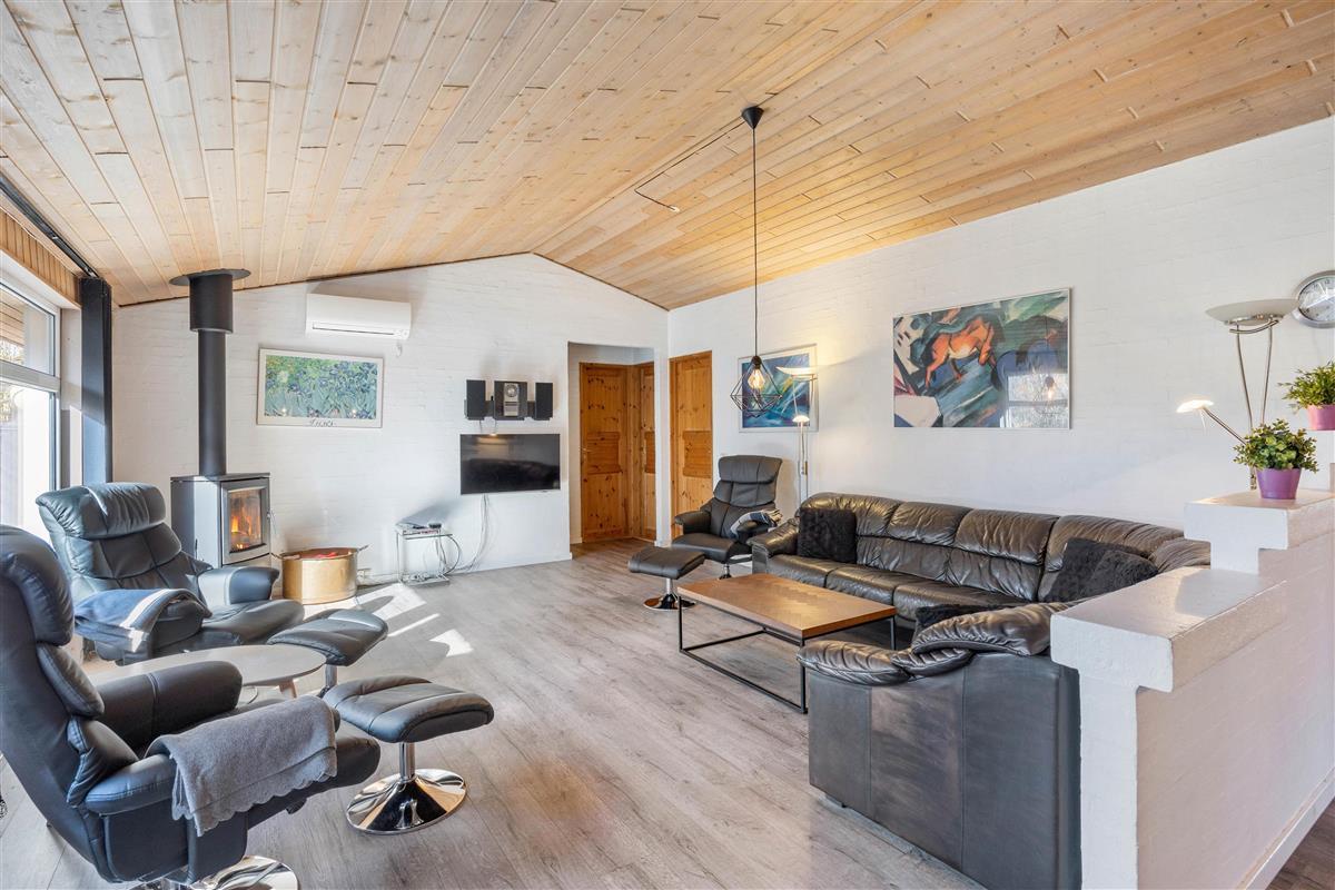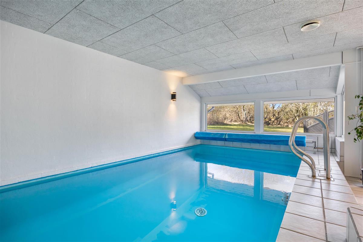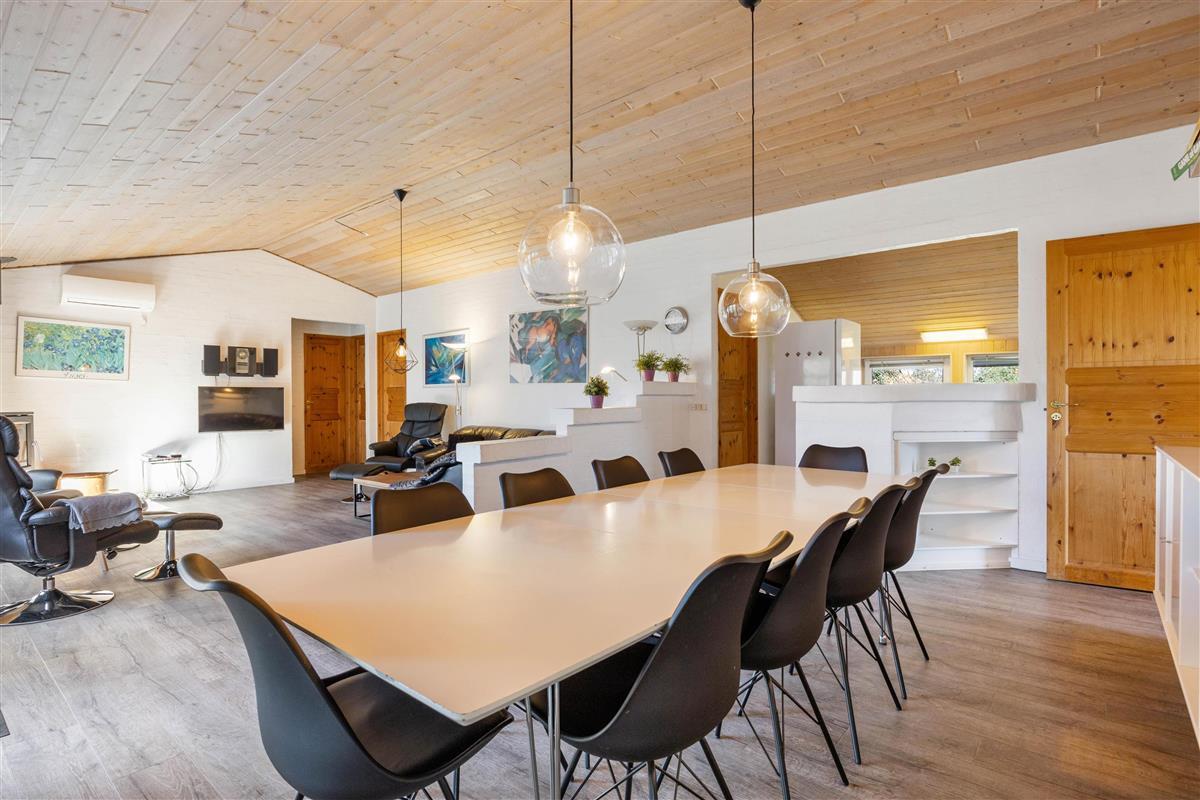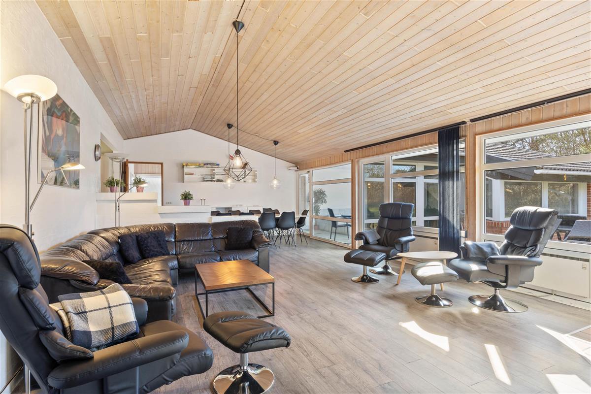 This 181-square-metre holiday home at Hybenvej 8 in Lodberg Hede, complete with swimming pool, sauna and hot tub, accommodates 12 people and 2 dogs. Whether enjoying the generous pool area with its private swimming pool, hot tub and sauna, or relaxing in the cosy living room with fireplace, there's something for everyone.