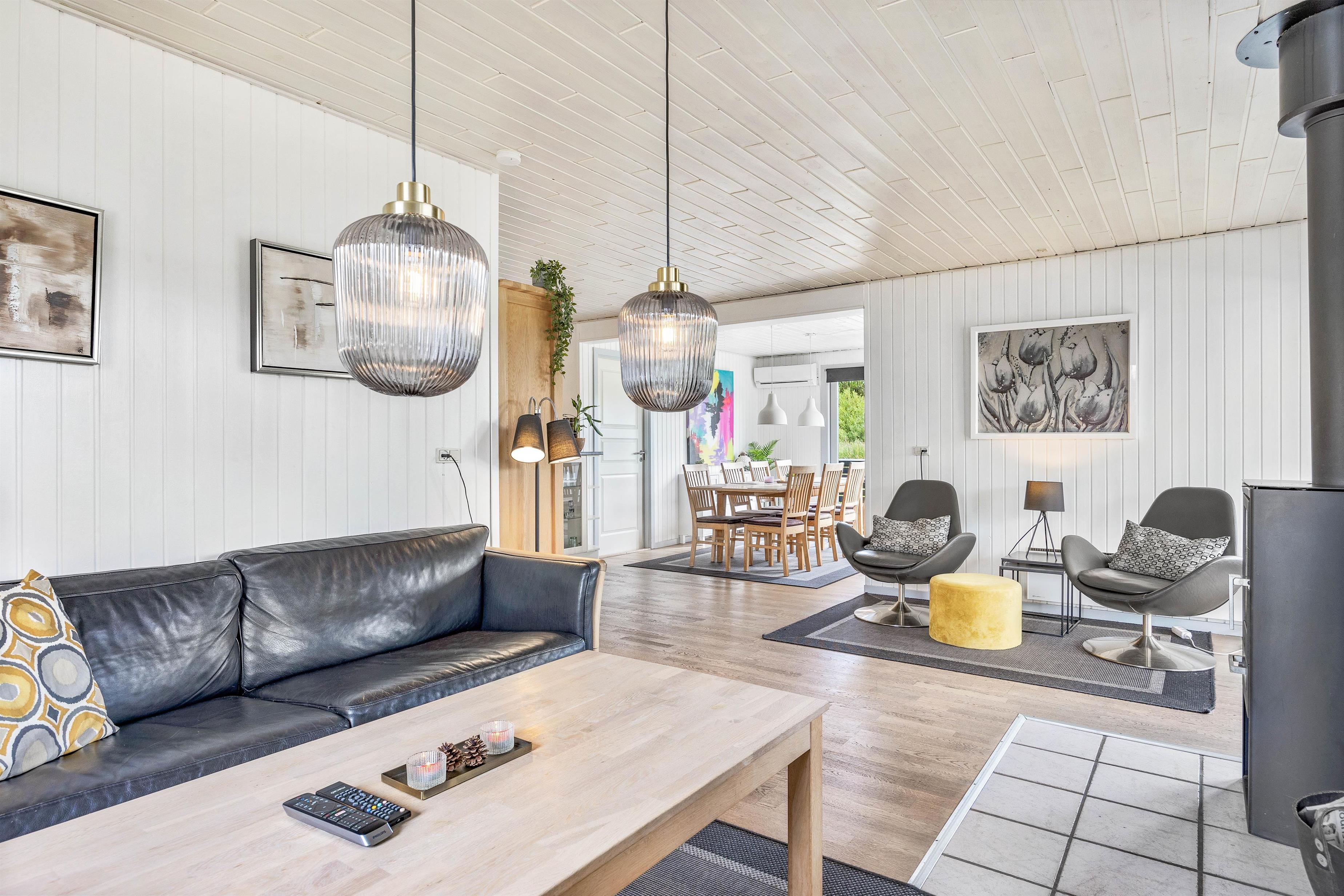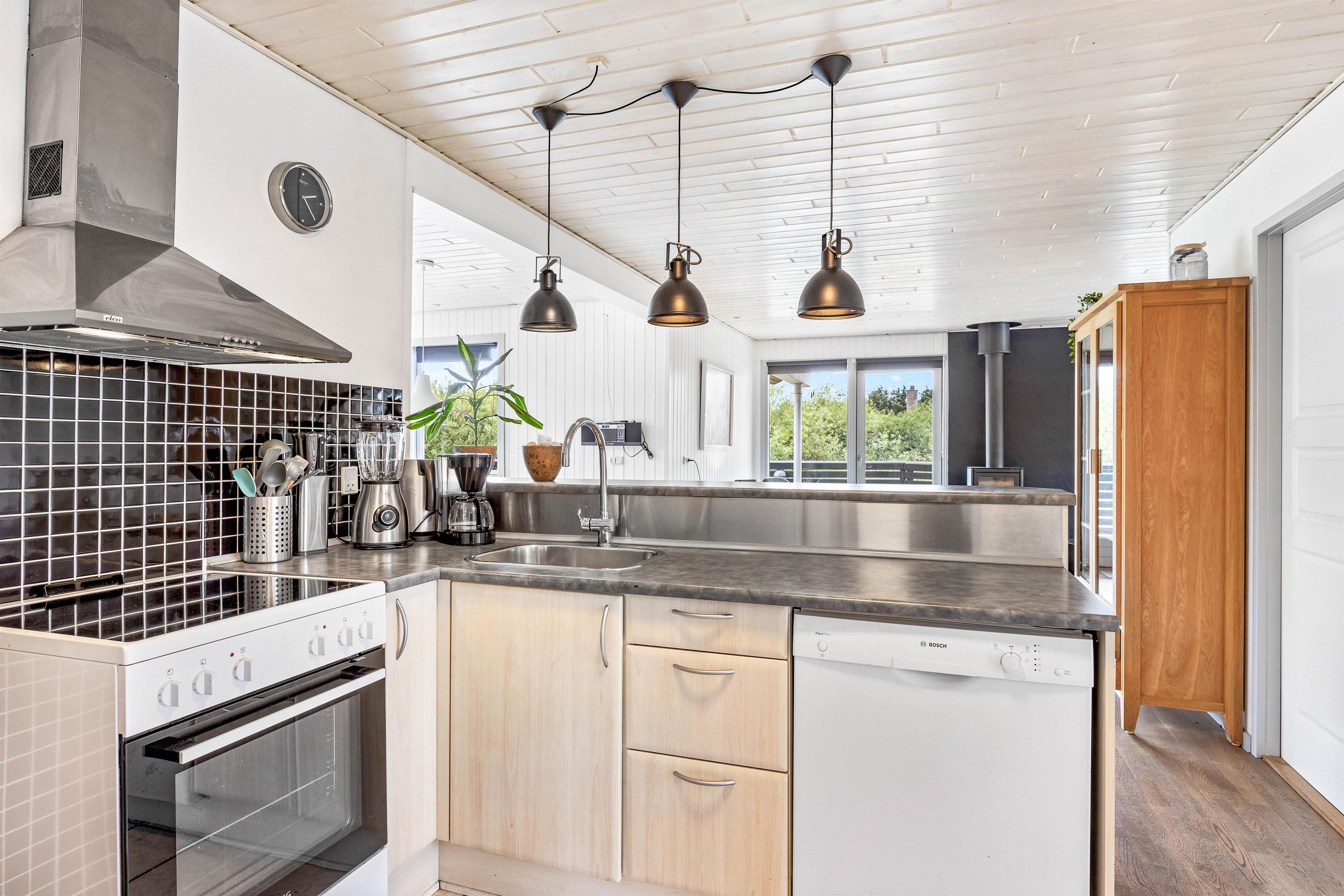 Both the summer house and its surroundings are truly beautiful, bright and open-plan - you'll quickly feel at home here. The spacious living area, combining kitchen, dining area and living room, forms the heart of the house and serves as the family gathering spot during your stay. The attractive and well-equipped kitchen offers everything holiday cooks need - including a fridge with a 50-litre freezer compartment, microwave and dishwasher.