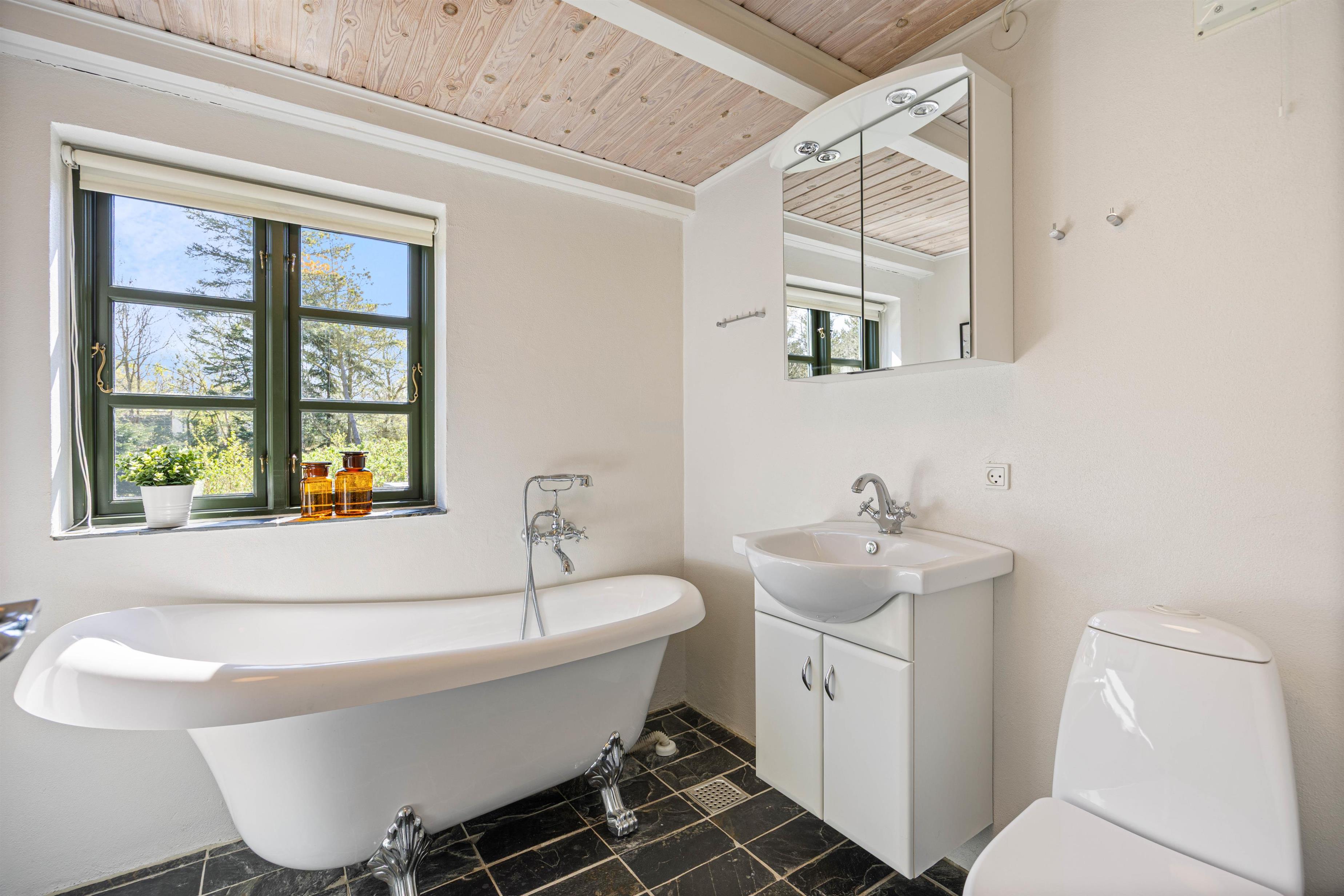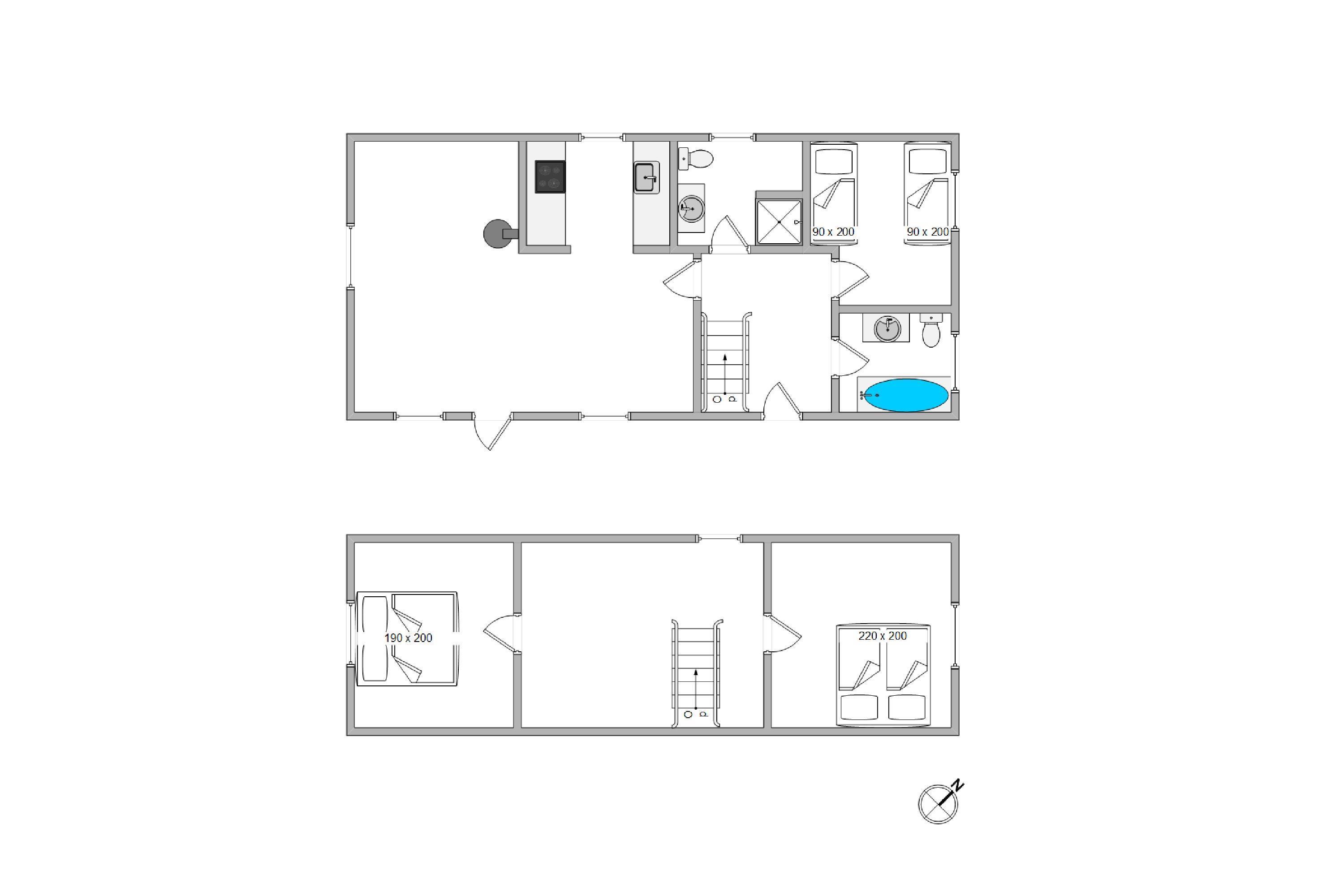 A beautiful and well-maintained holiday home with comfortable furnishings. The ground floor features two bathrooms, one with a bath and the other with a shower, both with underfloor heating. There's also a bright bedroom with twin beds on this level.