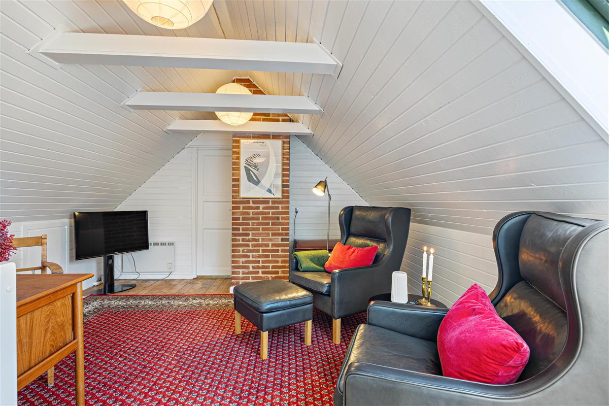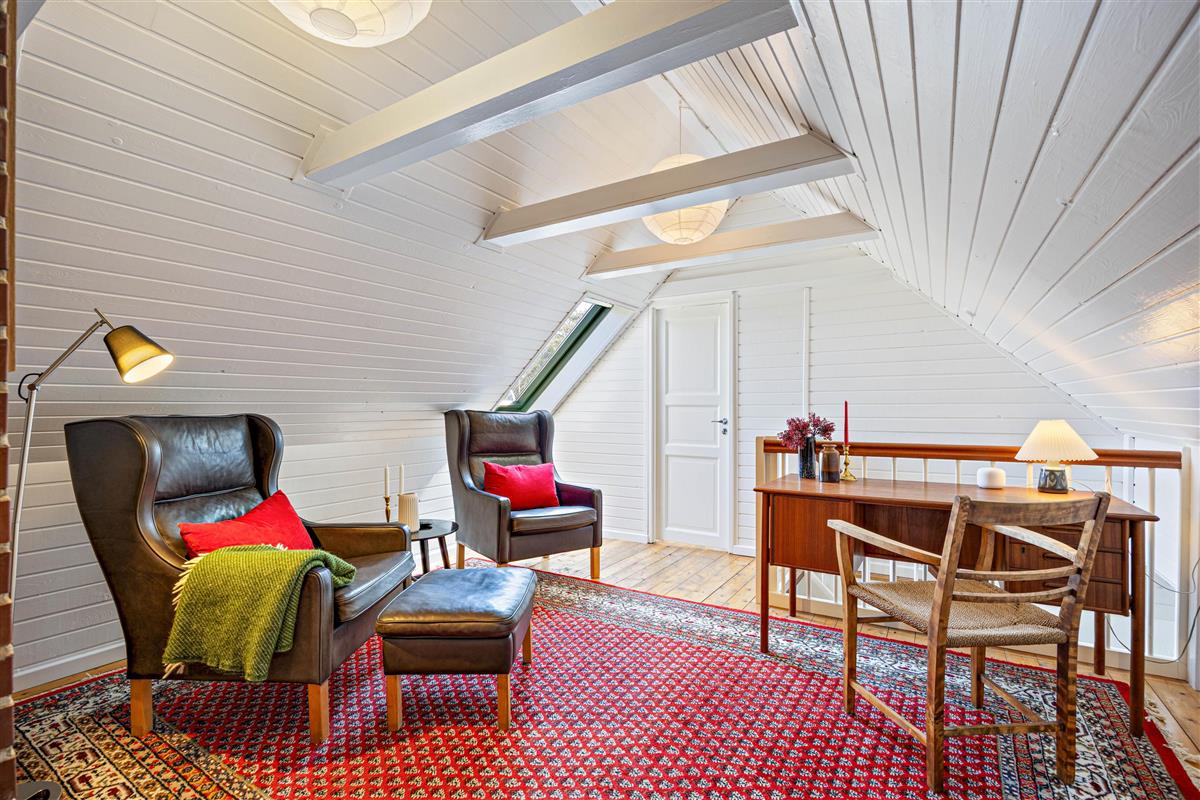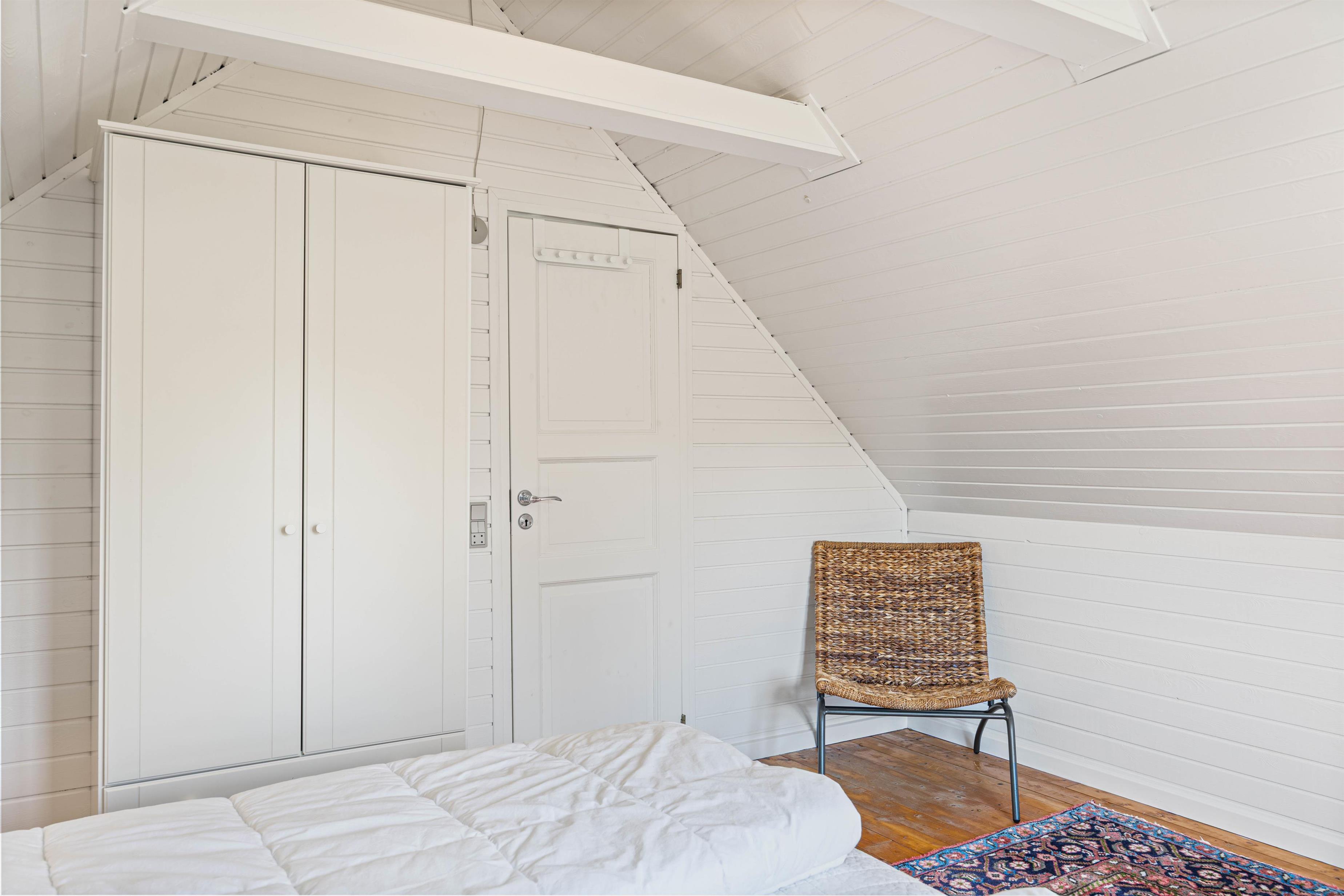 On the upper floor, you'll find two bright bedrooms with double beds. There's also an additional room by the stairs where children can play or relax.