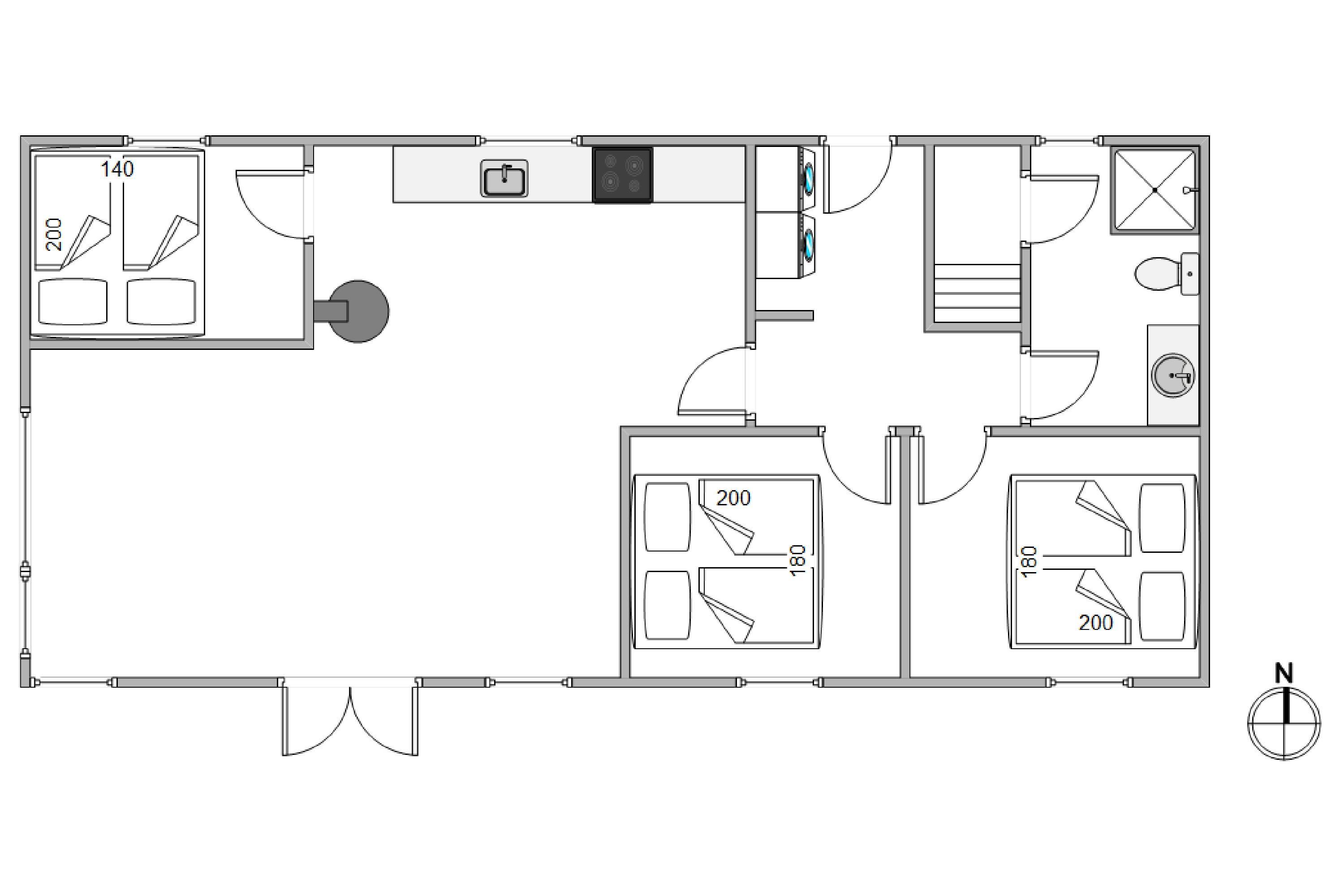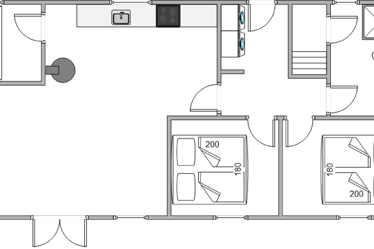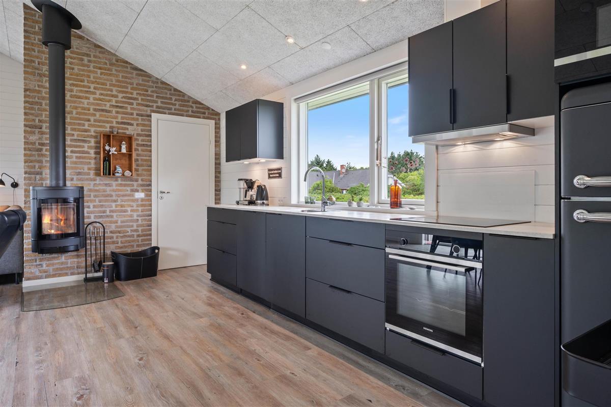 The bright, open-plan layout features a large kitchen-living area at the heart of the house - perfect for family gatherings. The well-equipped kitchen offers everything holiday cooks need, including a dishwasher, naturally. There's also an additional freezer. The wood-burning stove provides warmth during the cooler months, creating a cosy atmosphere.
