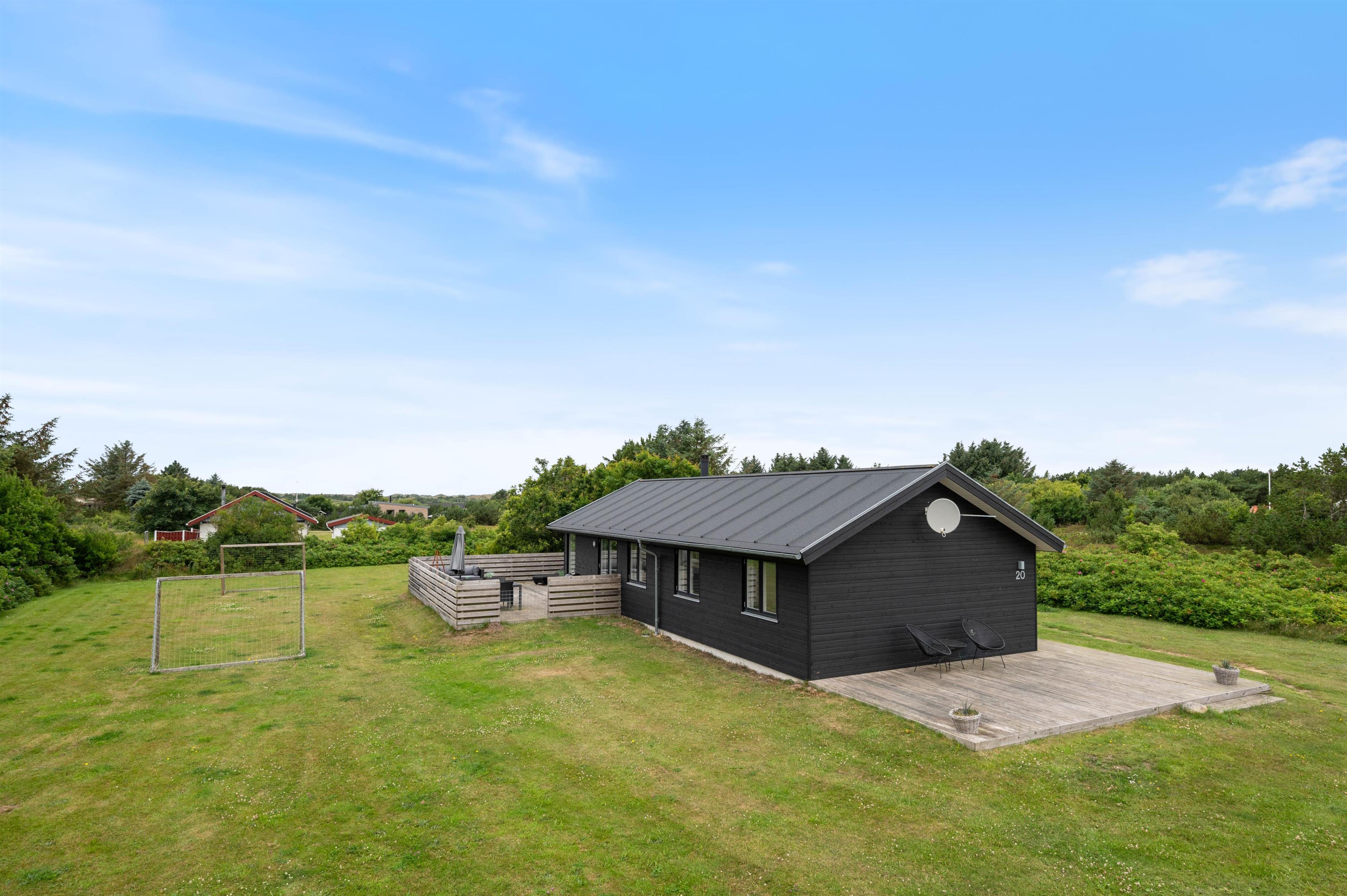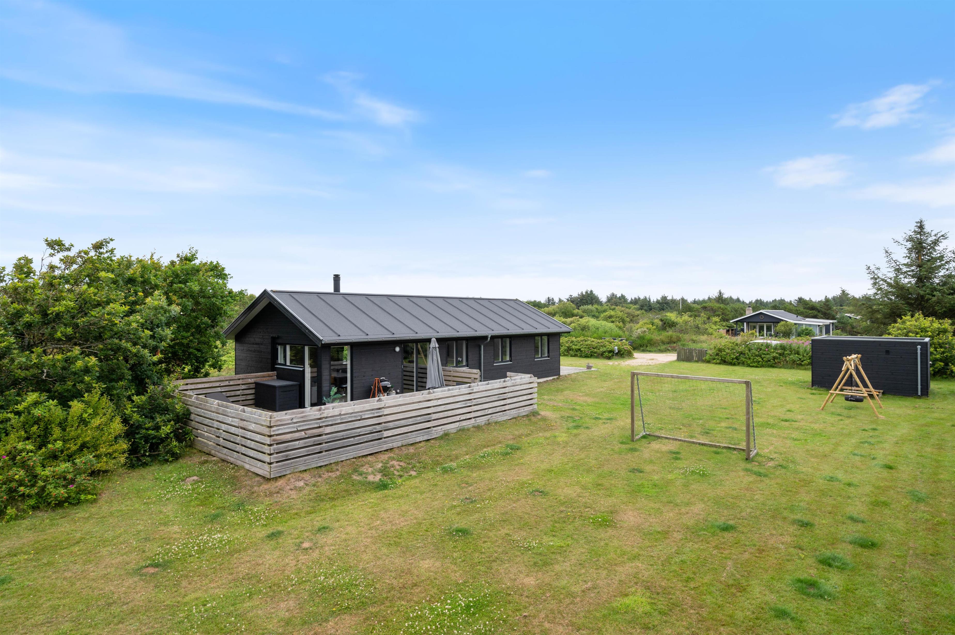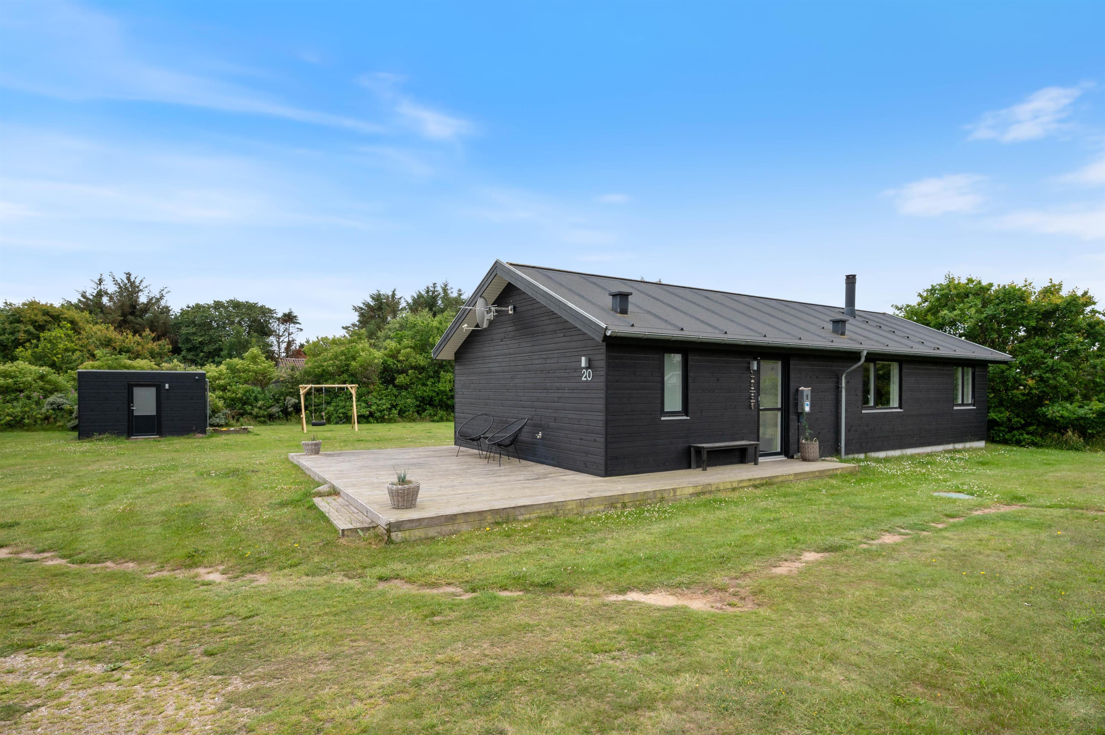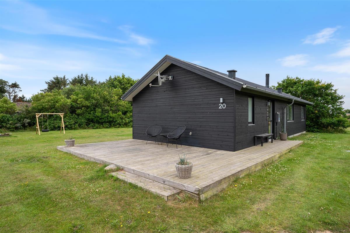 Lodbjerg Hede is a popular holiday area, known particularly for its green surroundings, extensive plantations and peaceful atmosphere. These qualities are perfectly reflected at Brunbjergvej 20. The holiday home features both a large terrace with plenty of space for relaxation and sunbathing, and a spacious garden with a sandbox and swing for children, plus ample room for dogs to romp about.