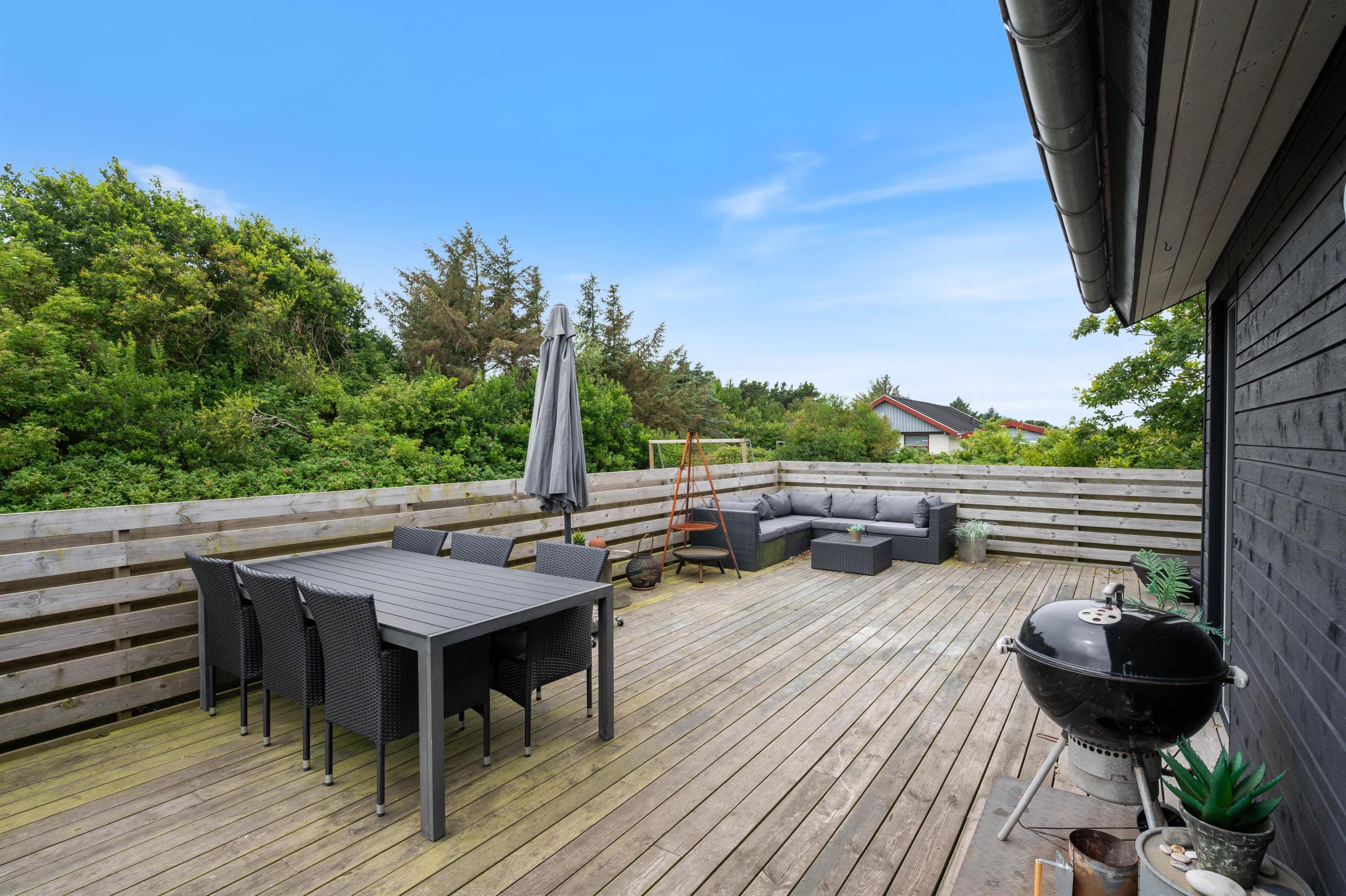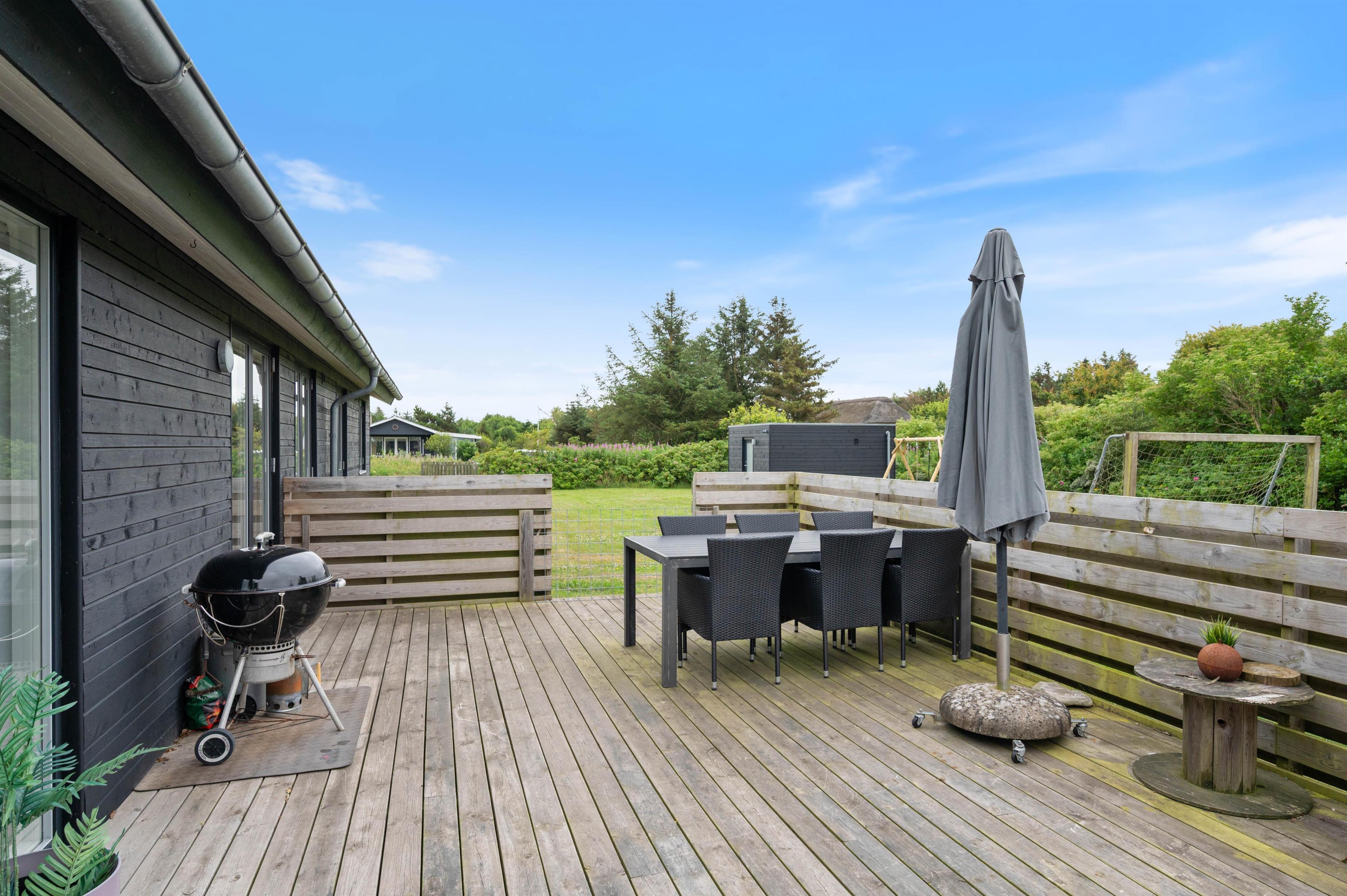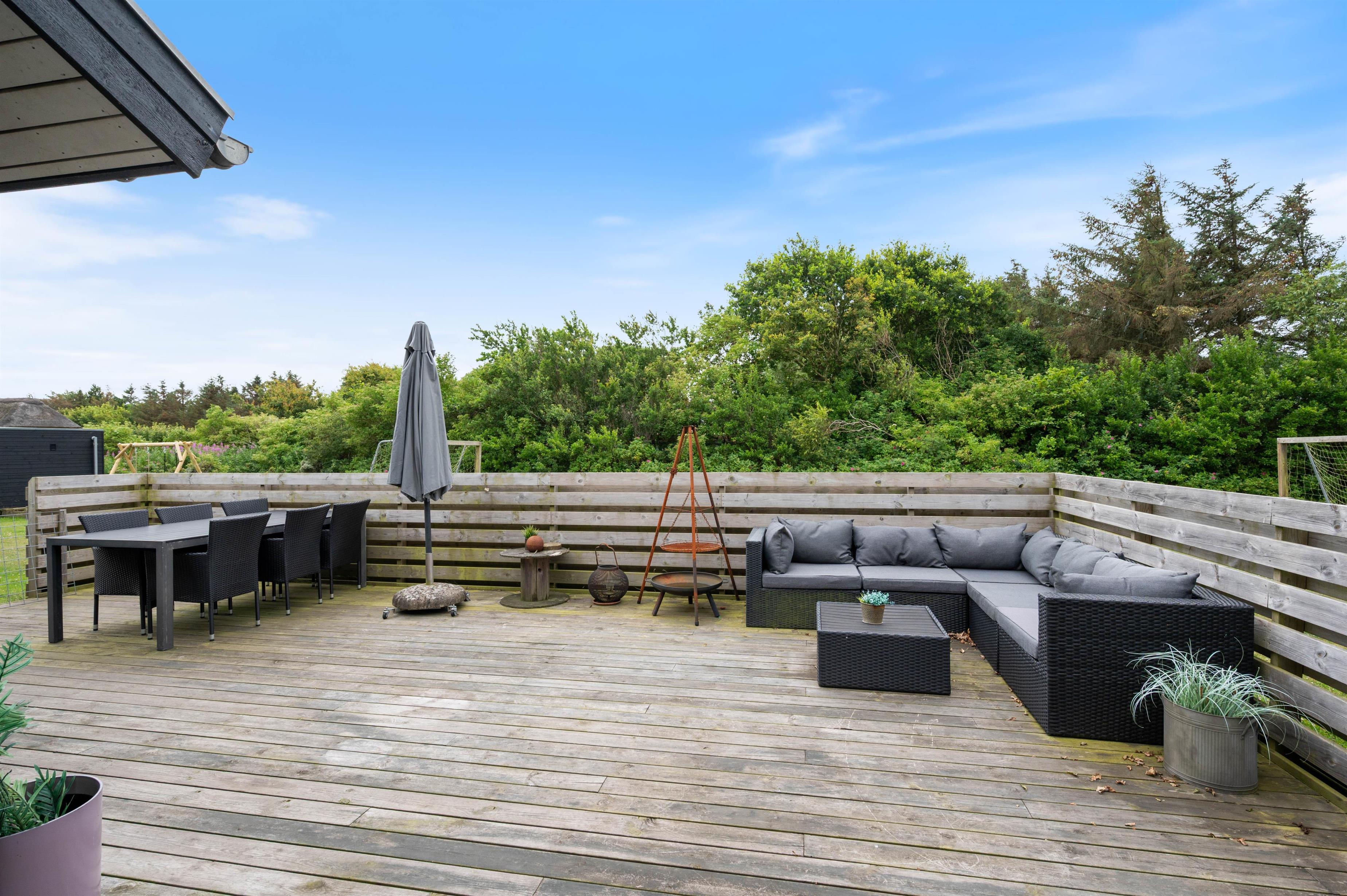 Lodbjerg Hede is a popular holiday area, known particularly for its green surroundings, extensive plantations and peaceful atmosphere. These qualities are perfectly reflected at Brunbjergvej 20. The holiday home features both a large terrace with plenty of space for relaxation and sunbathing, and a spacious garden with a sandbox and swing for children, plus ample room for dogs to romp about.