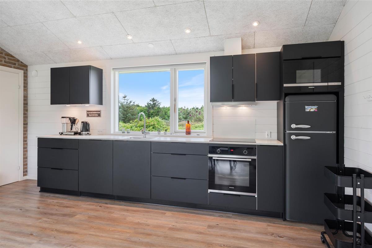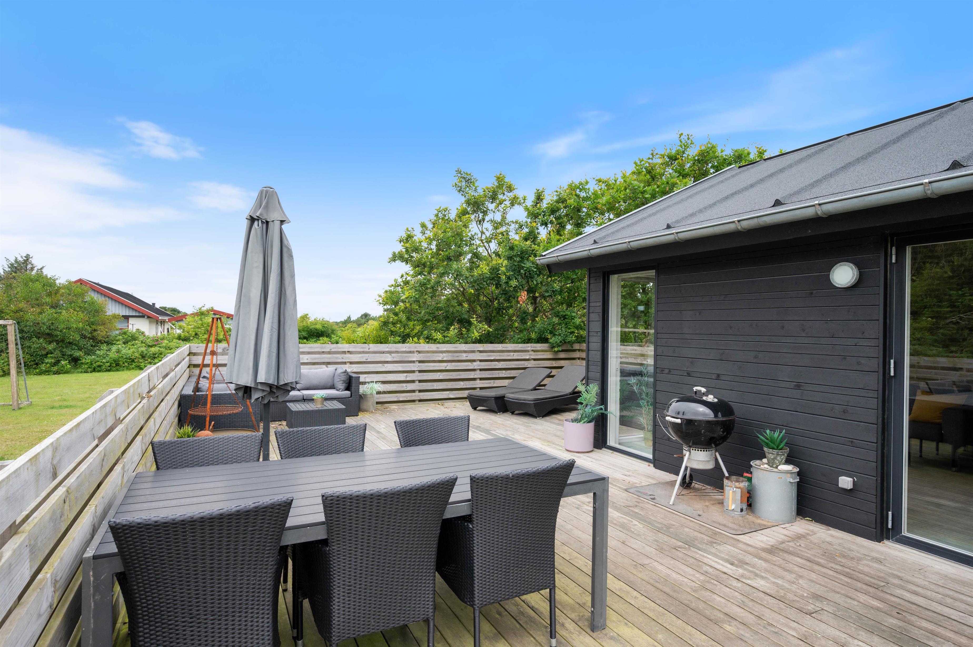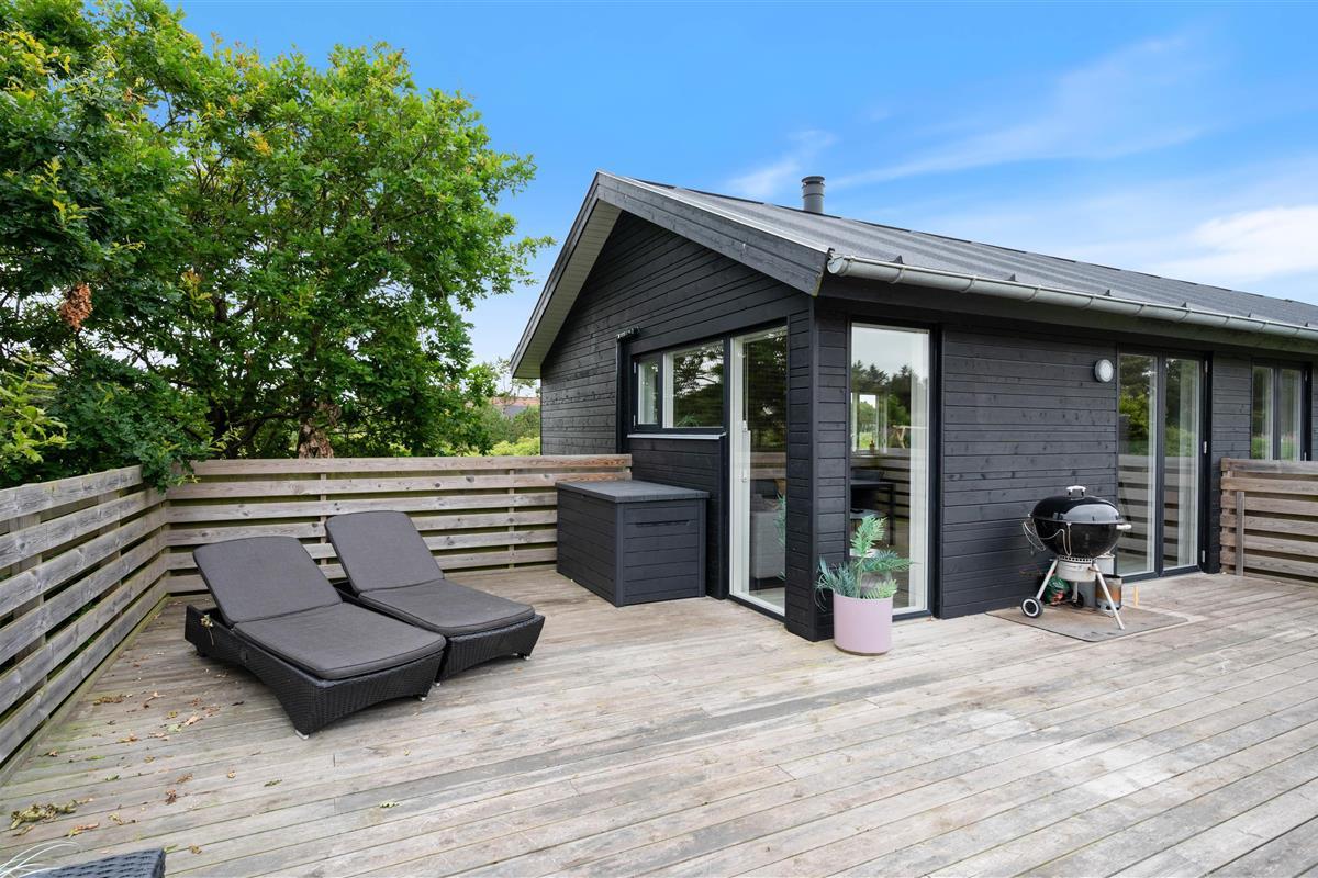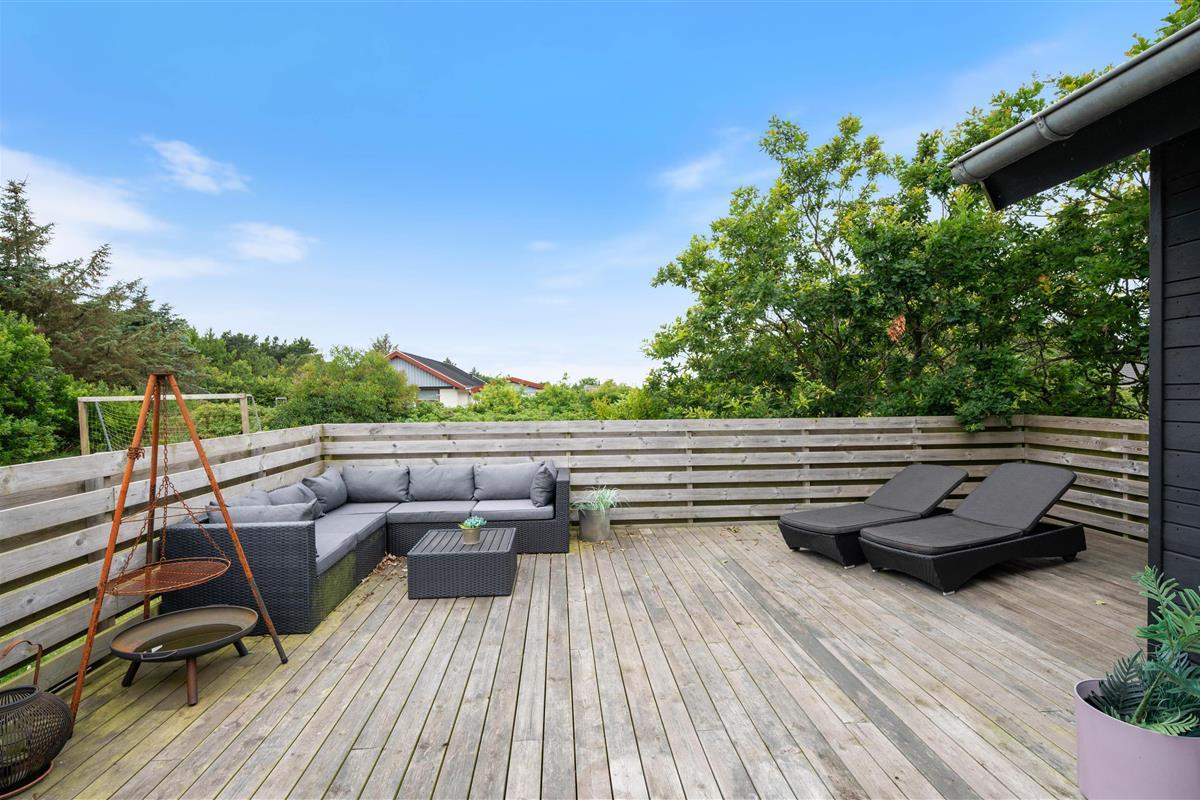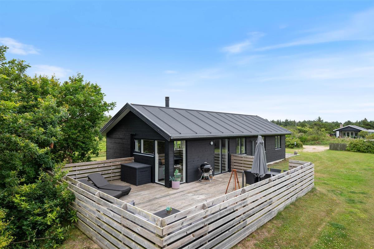 Located on nearly 2,500 square metres of land, close to Søndervig, this holiday home offers the perfect holiday retreat. Built in 2019, this stylishly furnished holiday home features a sauna and wood-burning stove. The attractive setting includes large south-west and east-facing terraces and a lawn where children and dogs can play, completing this excellent holiday package.