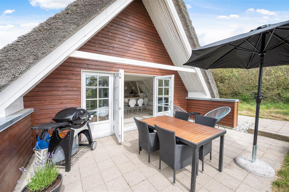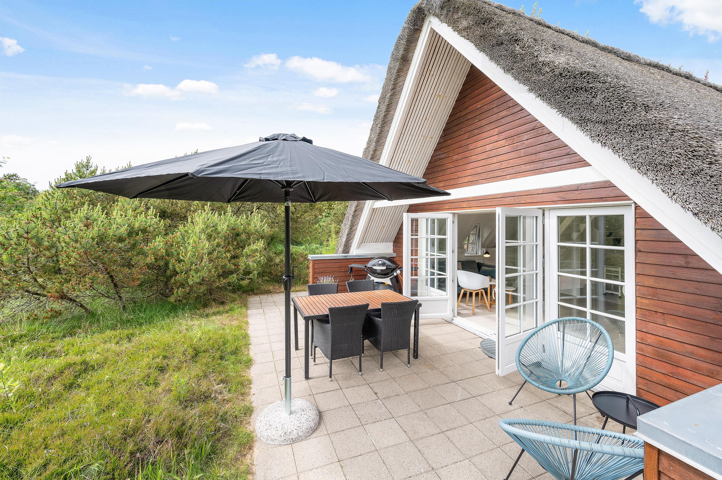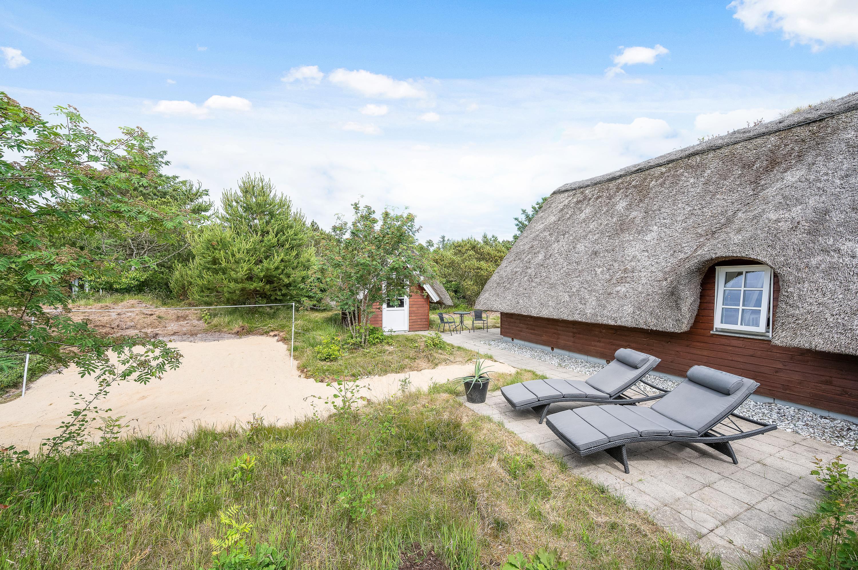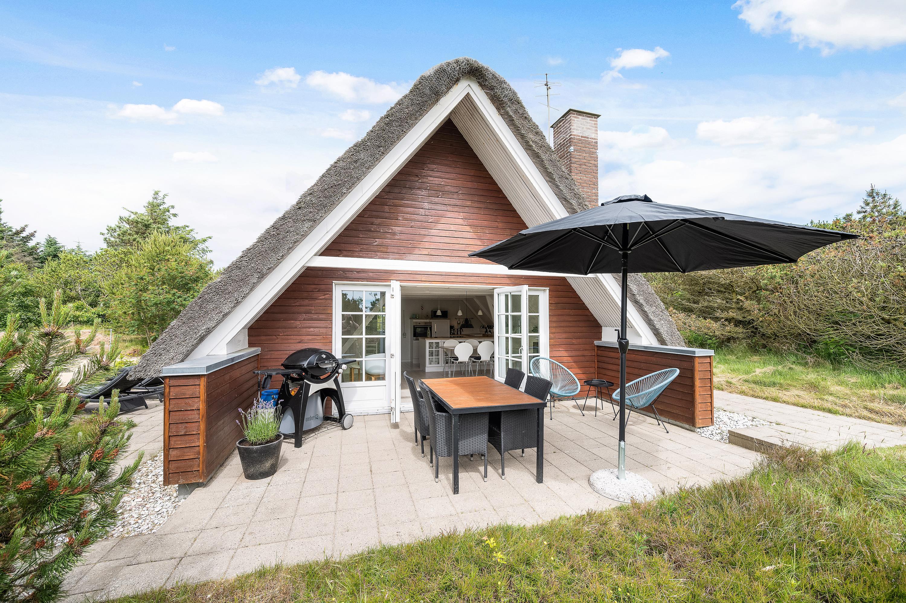 This thatched roof cottage at Hybenvej 60 in Lodbjerg Hede features both open and sheltered terraces, furnished with suitable garden furniture. You can enjoy summer sunshine or experience the invigorating North Sea breeze on stormier days, whatever takes your fancy. The barbecue invites you to enjoy al fresco dining during long summer evenings.
