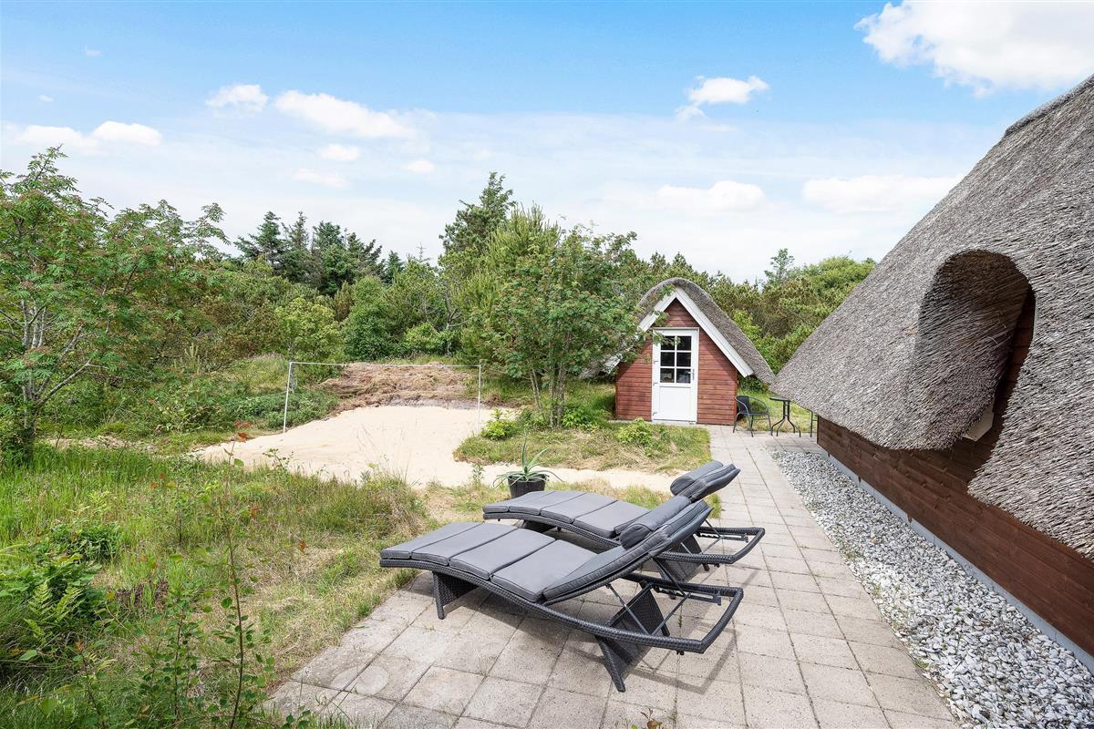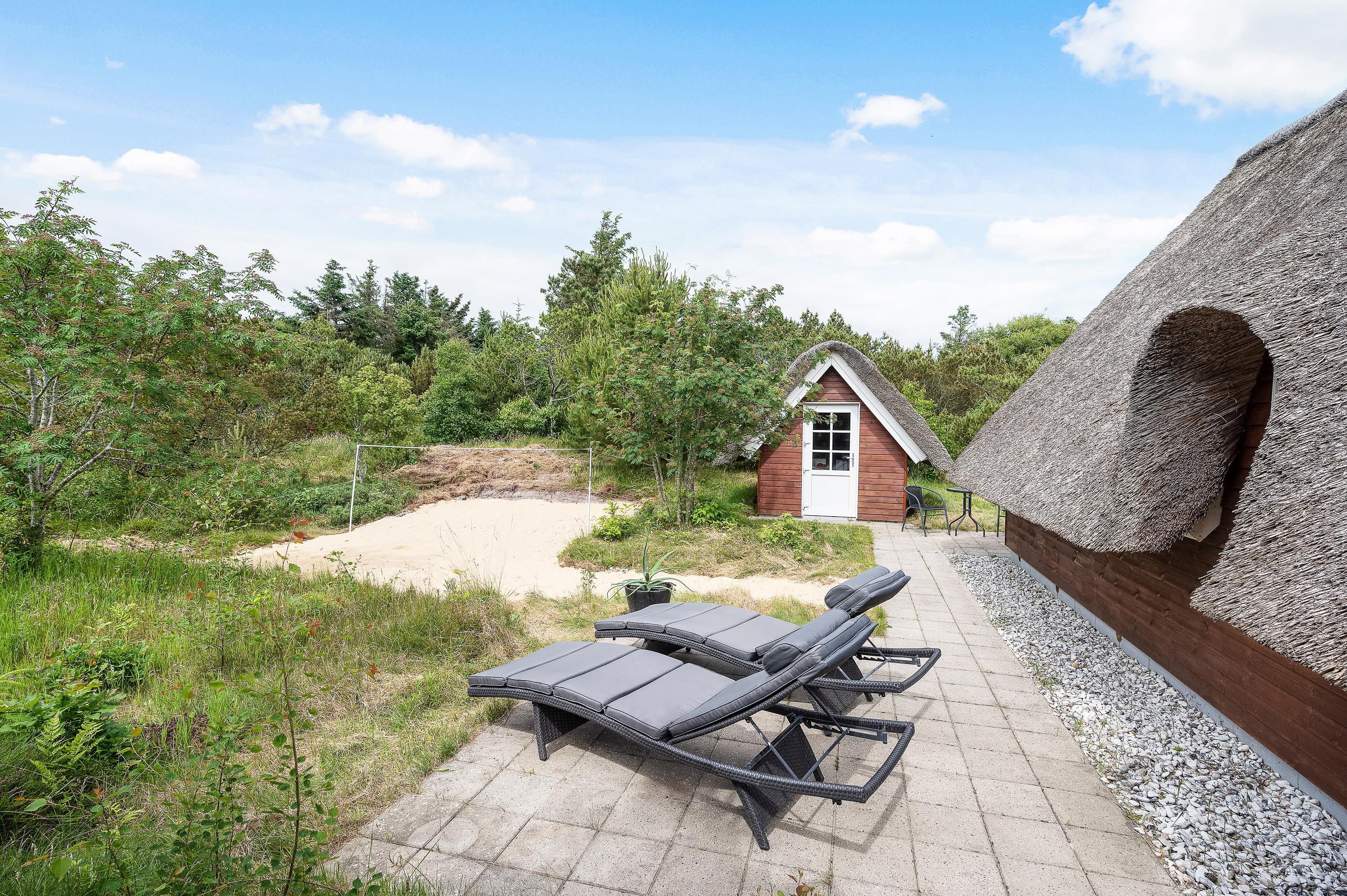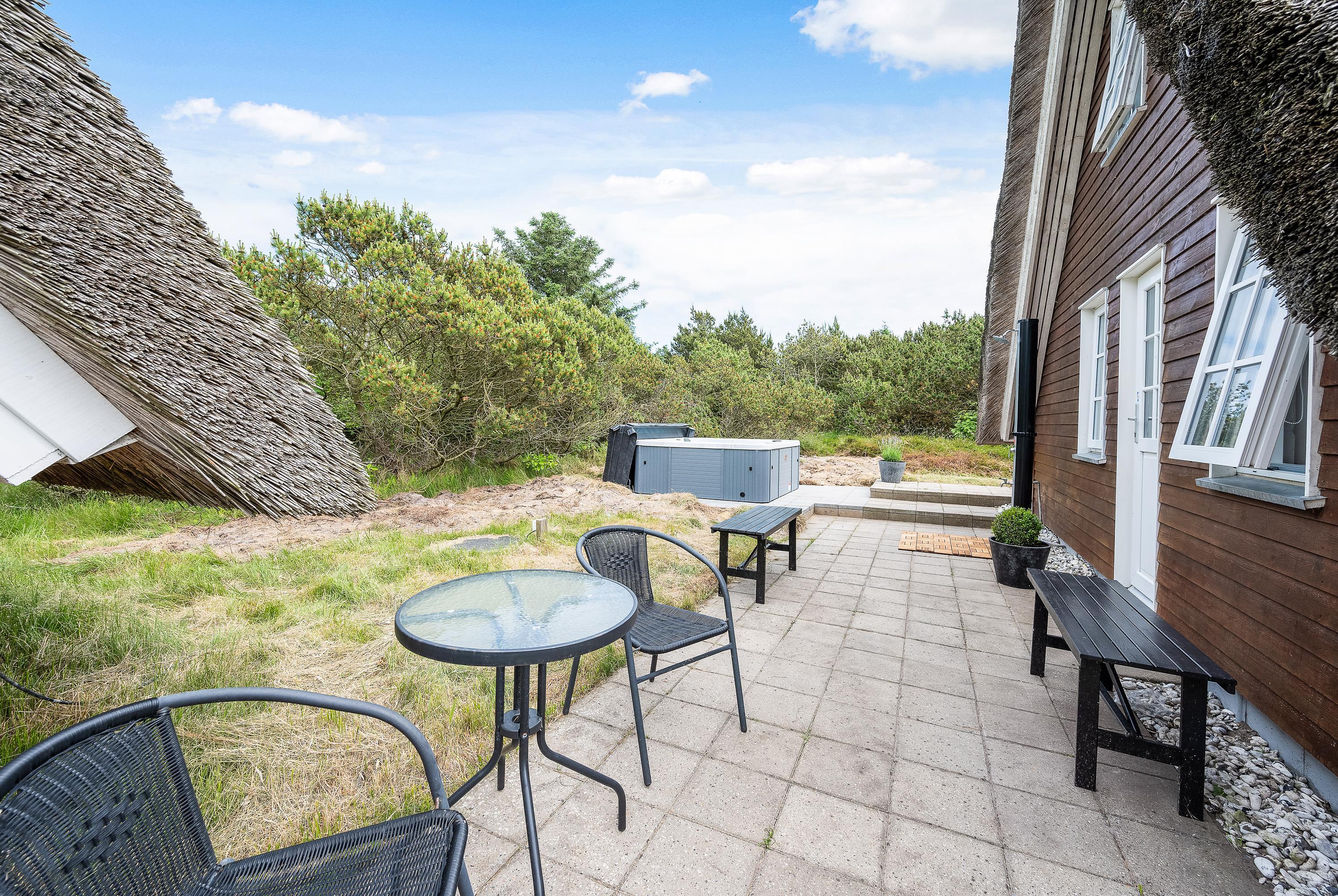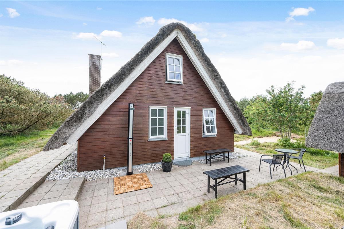 This thatched roof cottage at Hybenvej 60 in Lodbjerg Hede features both open and sheltered terraces, furnished with suitable garden furniture. You can enjoy summer sunshine or experience the invigorating North Sea breeze on stormier days, whatever takes your fancy. The barbecue invites you to enjoy al fresco dining during long summer evenings.