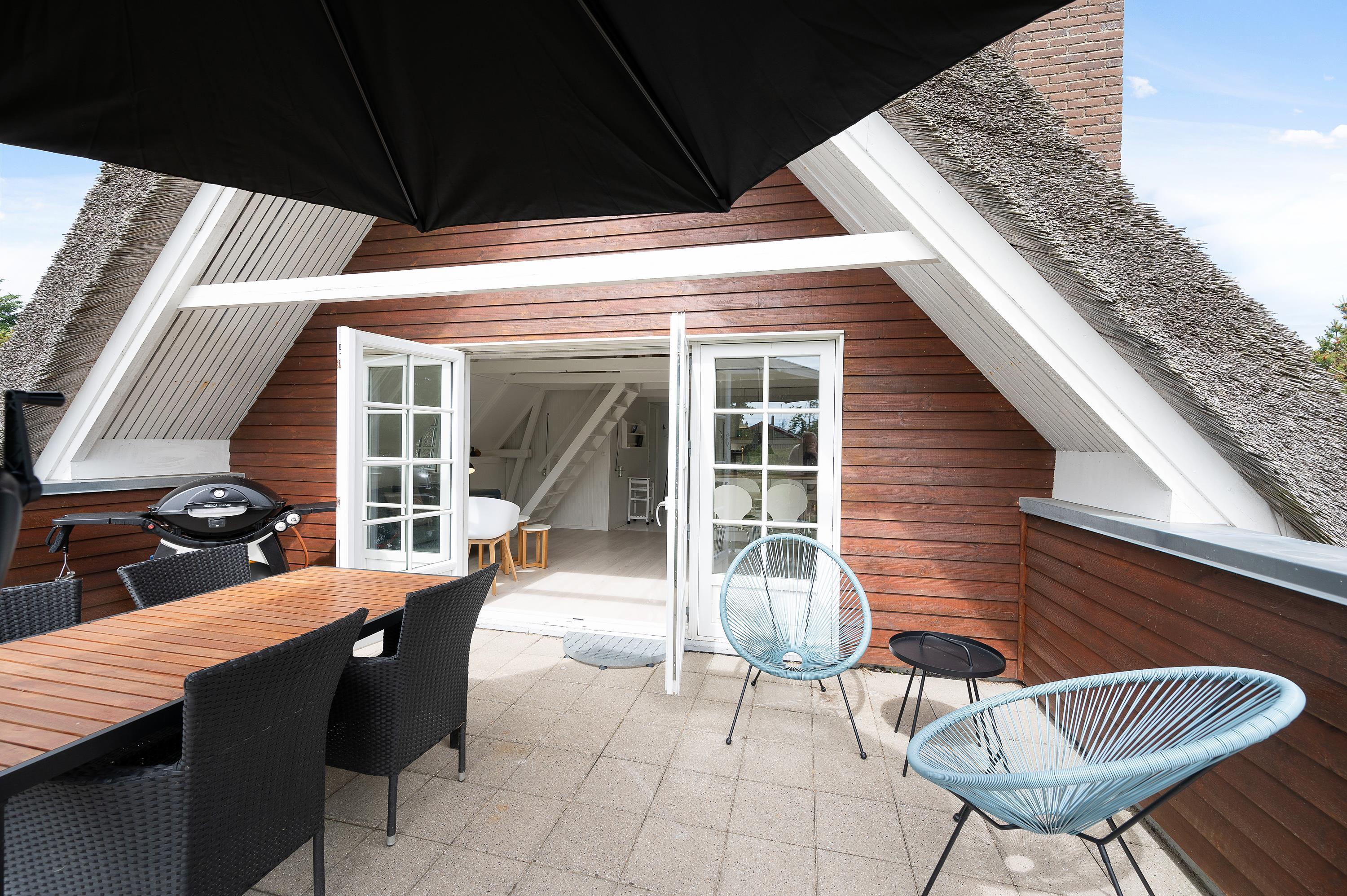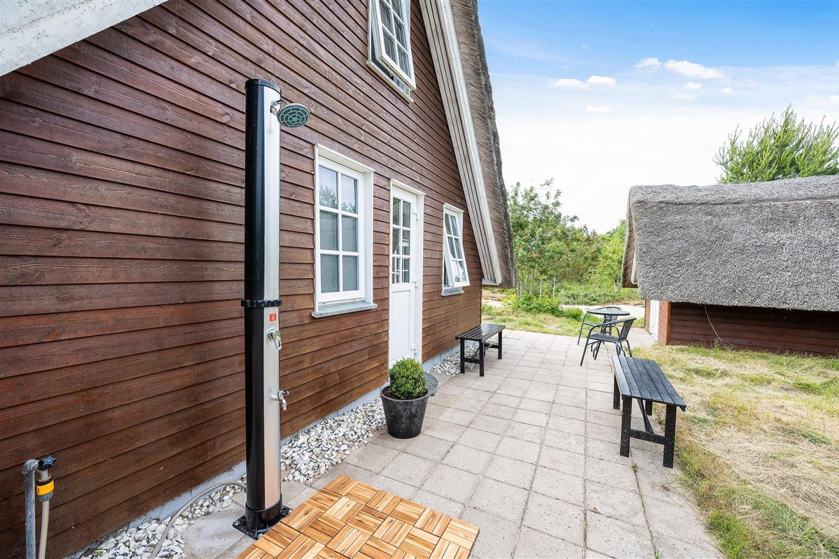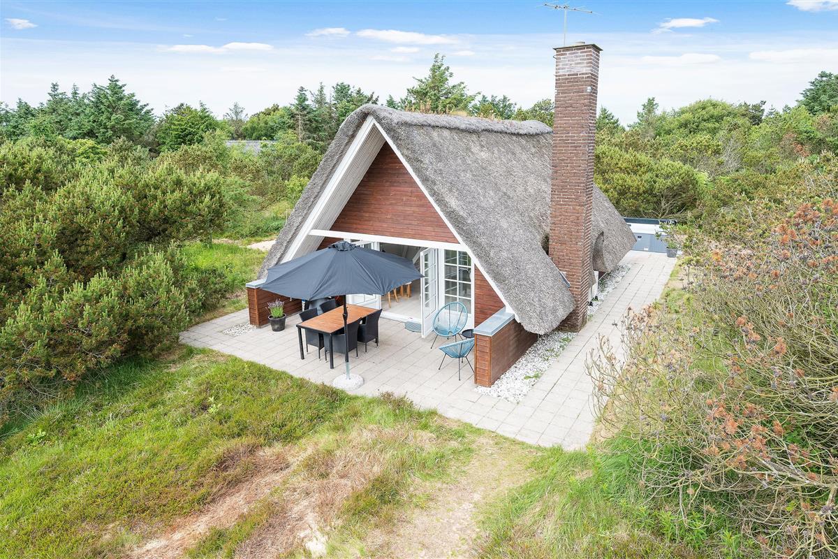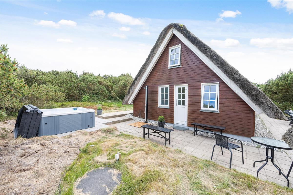 This thatched roof cottage at Hybenvej 60 in Lodbjerg Hede features both open and sheltered terraces, furnished with suitable garden furniture. You can enjoy summer sunshine or experience the invigorating North Sea breeze on stormier days, whatever takes your fancy. The barbecue invites you to enjoy al fresco dining during long summer evenings.