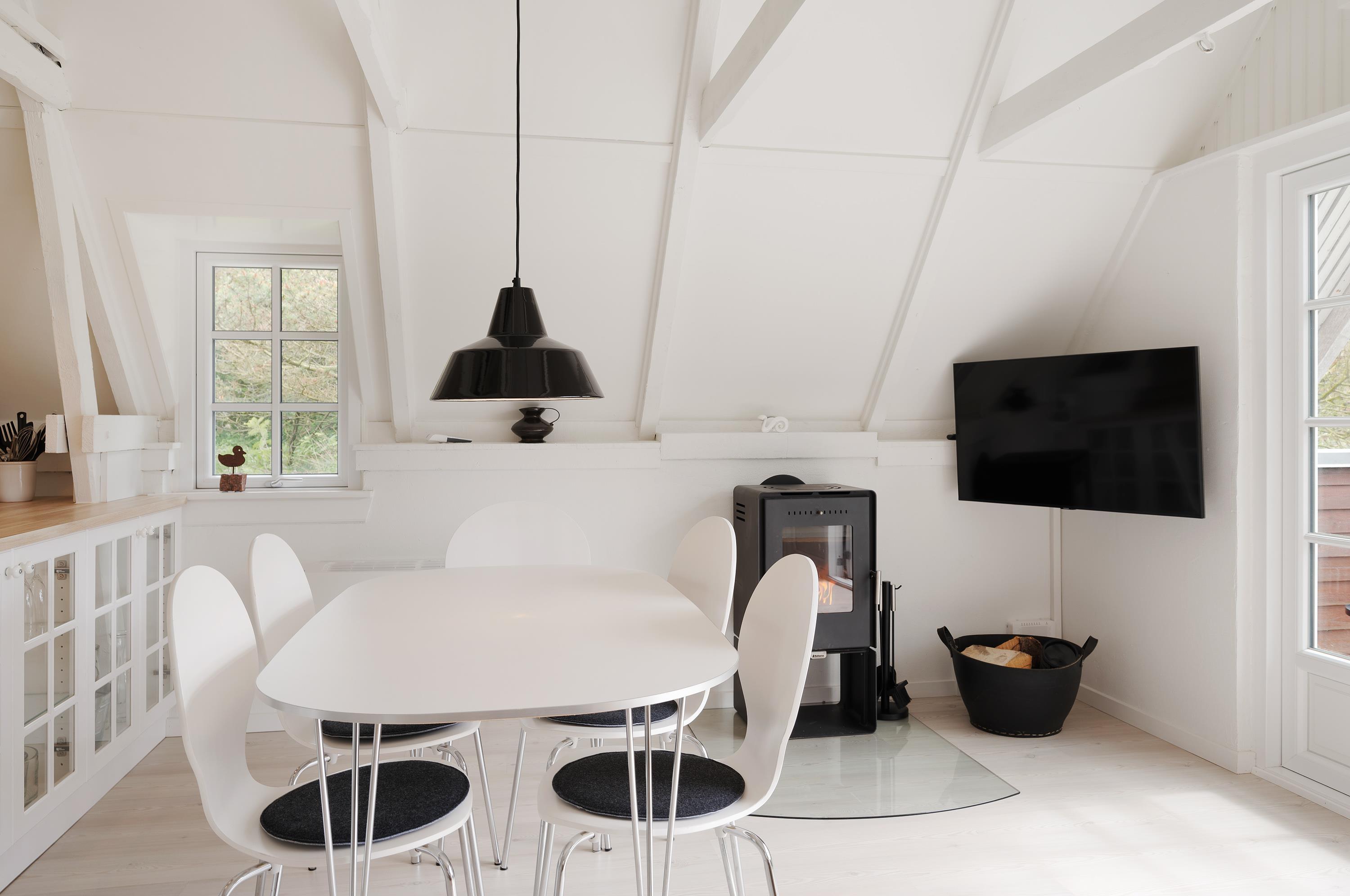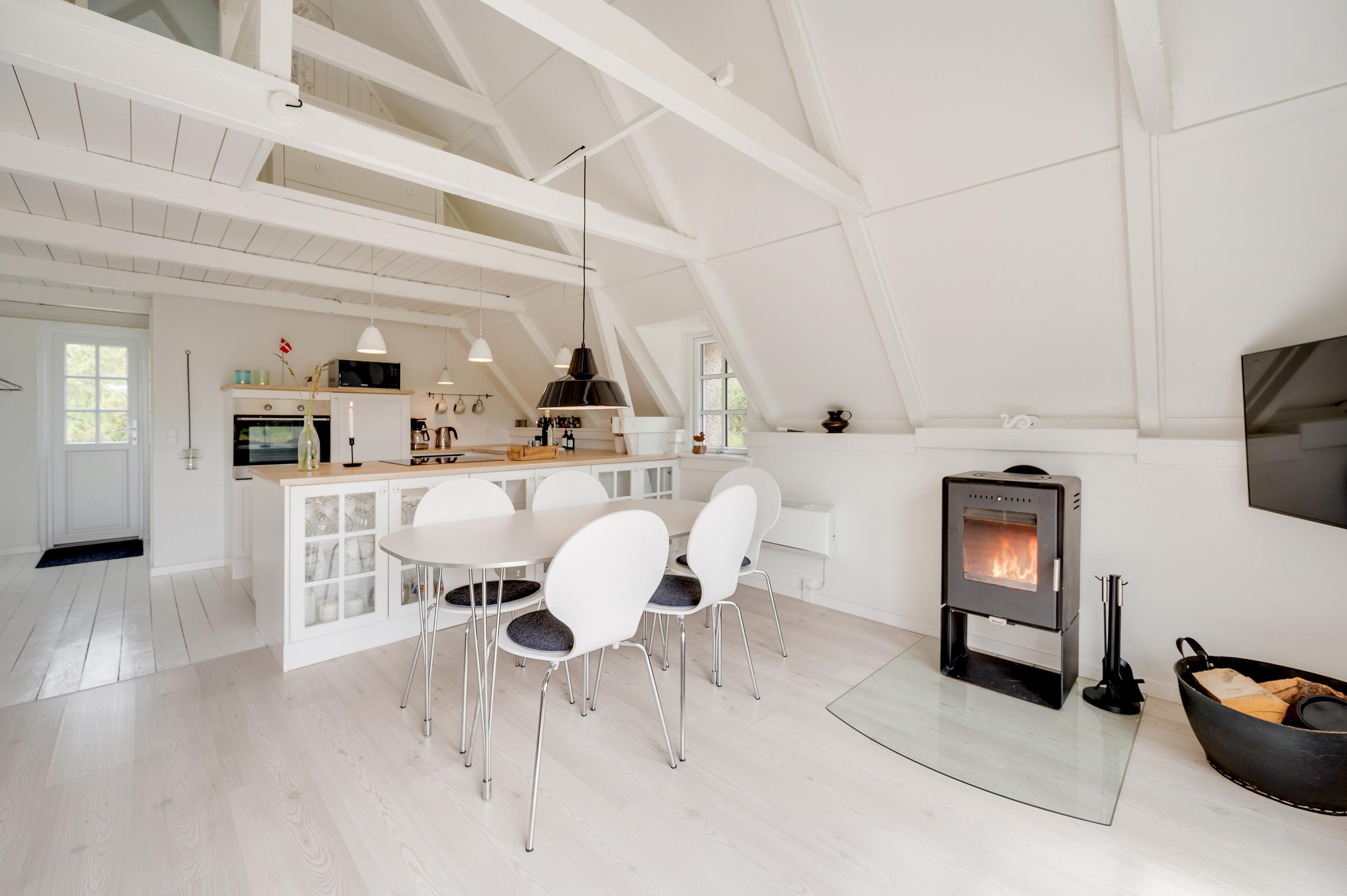 The heart of the house is the spacious living area with its integrated modern kitchen. Here you can prepare dinner while staying connected with family, enjoy game nights, or simply relax. In the evening, the wood-burning stove creates a cosy atmosphere - perfect for enjoying a glass of wine and a good book by the crackling fire.