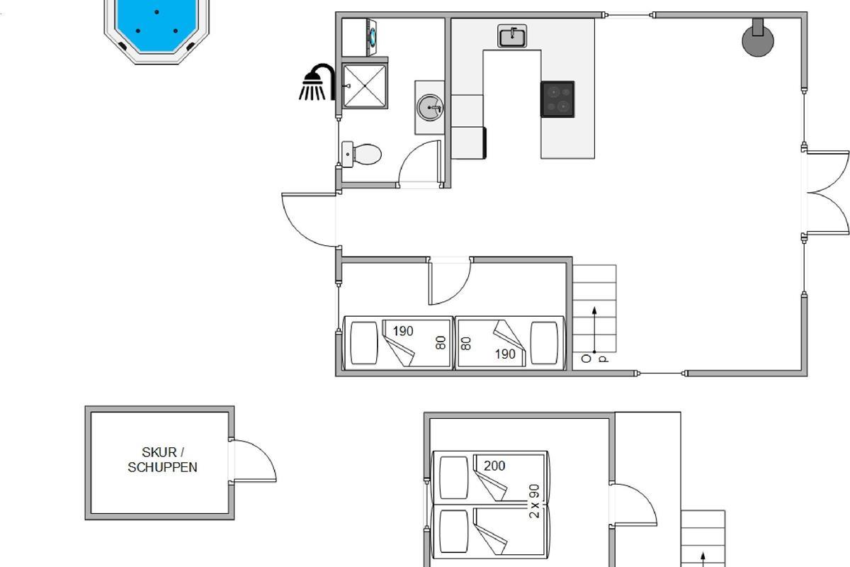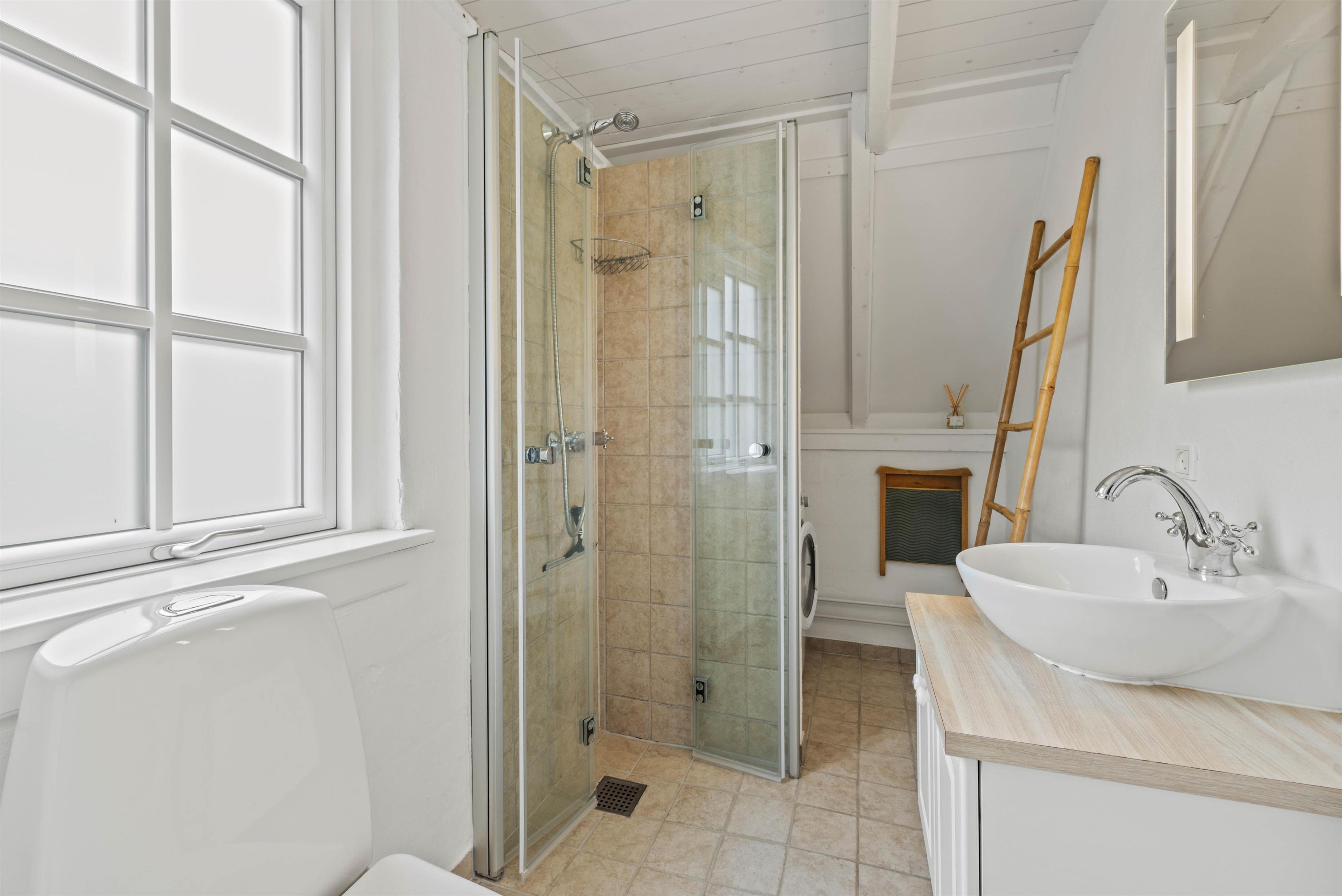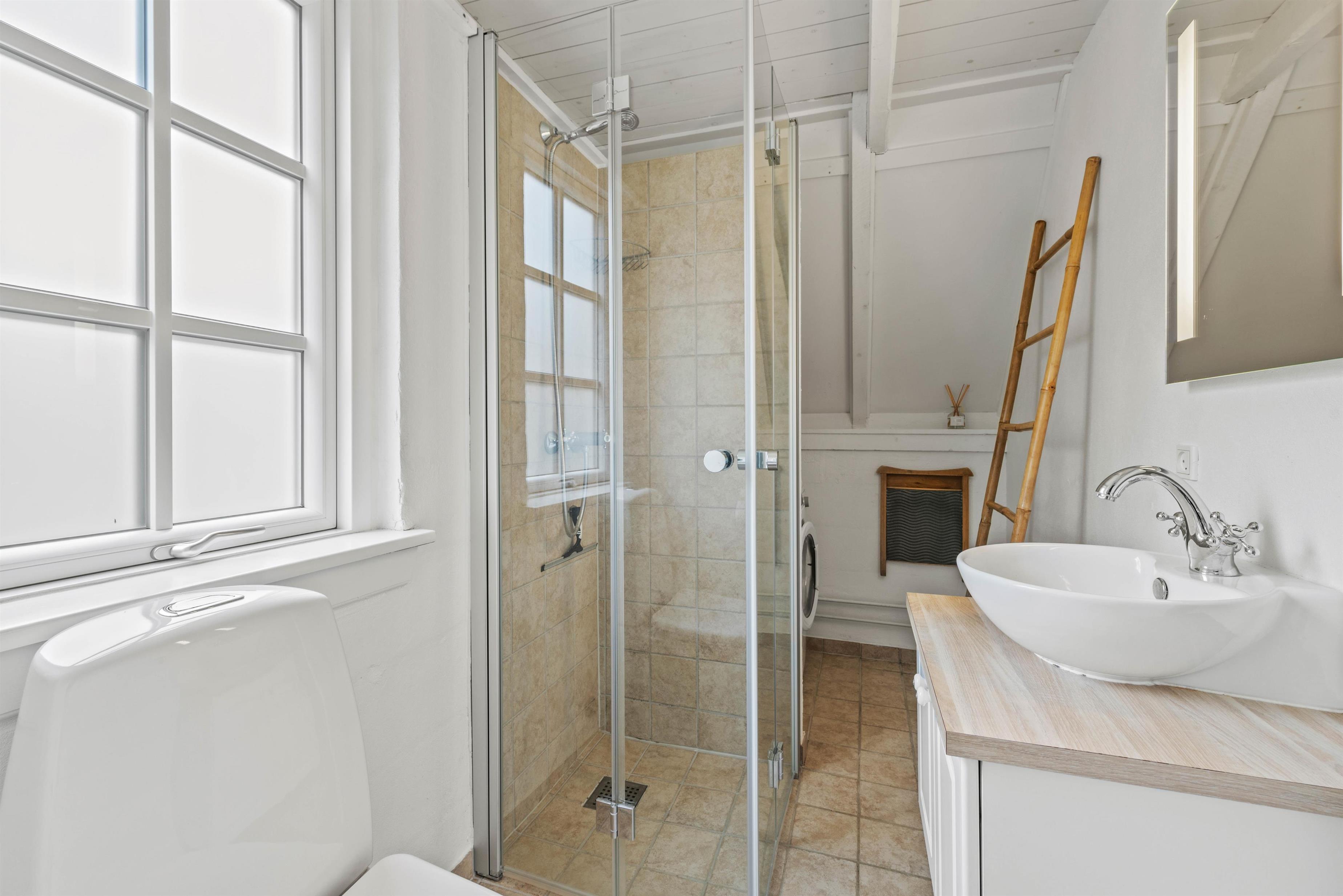 The bathroom features underfloor heating, ensuring warm feet on cold winter mornings. The shower was renovated in 2023. As a helpful tip, the holiday home's heat pump maintains a consistently comfortable climate while helping to reduce heating costs.