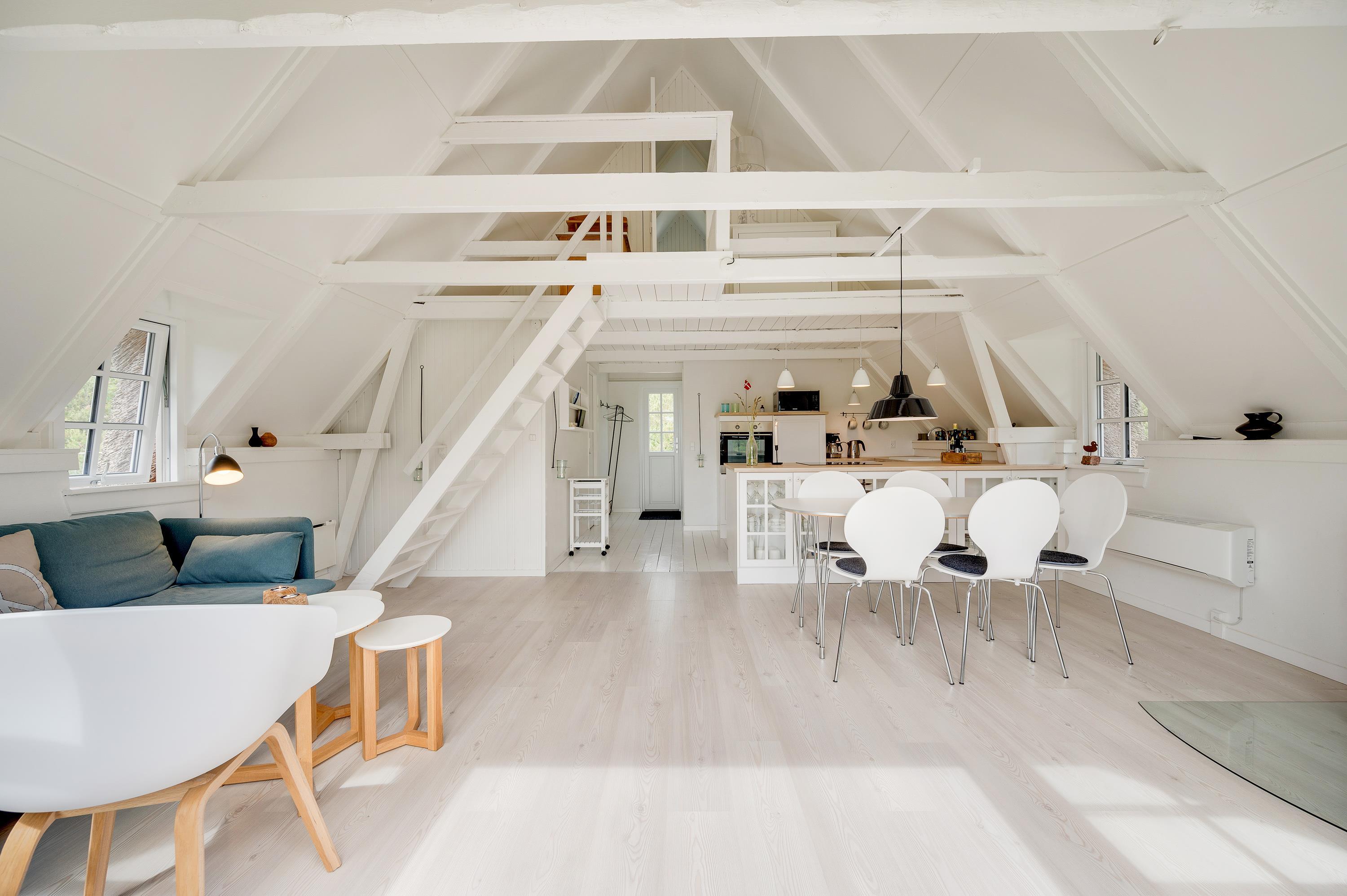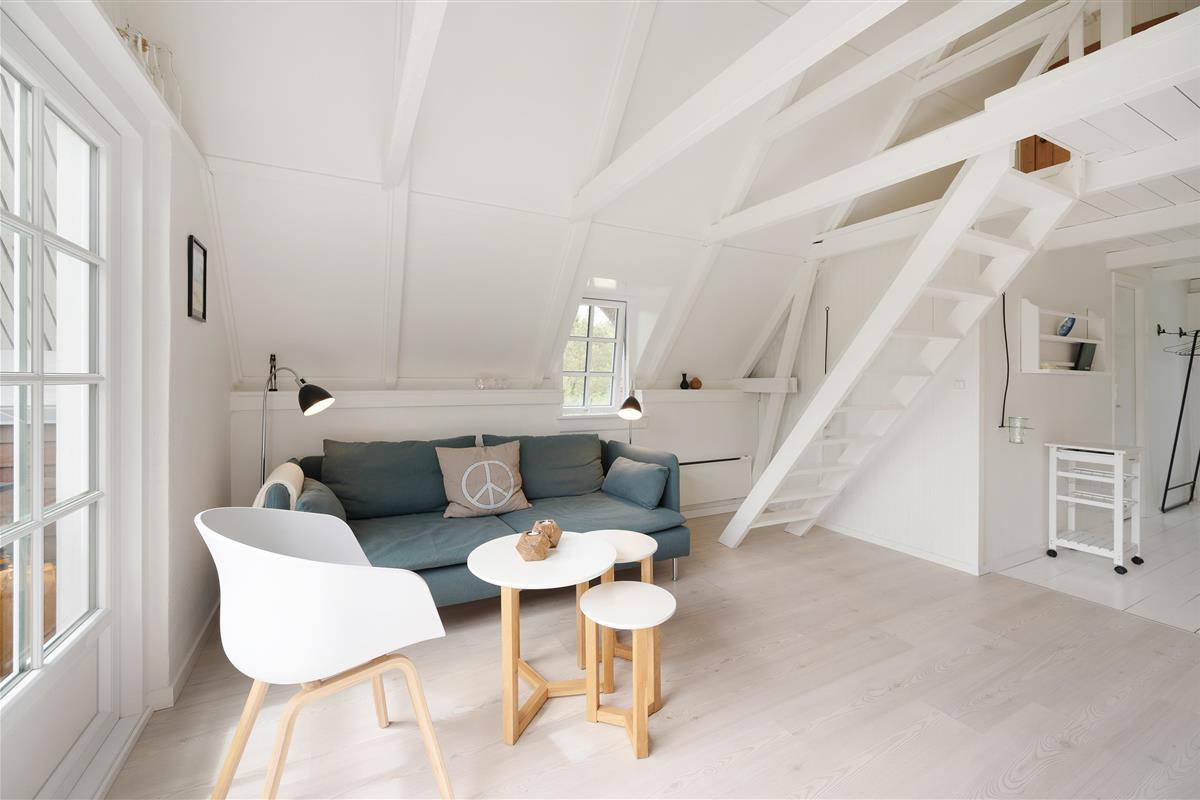 This delightful holiday home was renovated in 2016 and comfortably accommodates up to 4 people across two bedrooms. One bedroom features two single beds, while the second bedroom, located in the sleeping loft, comes with a double bed - a perfect retreat when storms and rain rage outside.