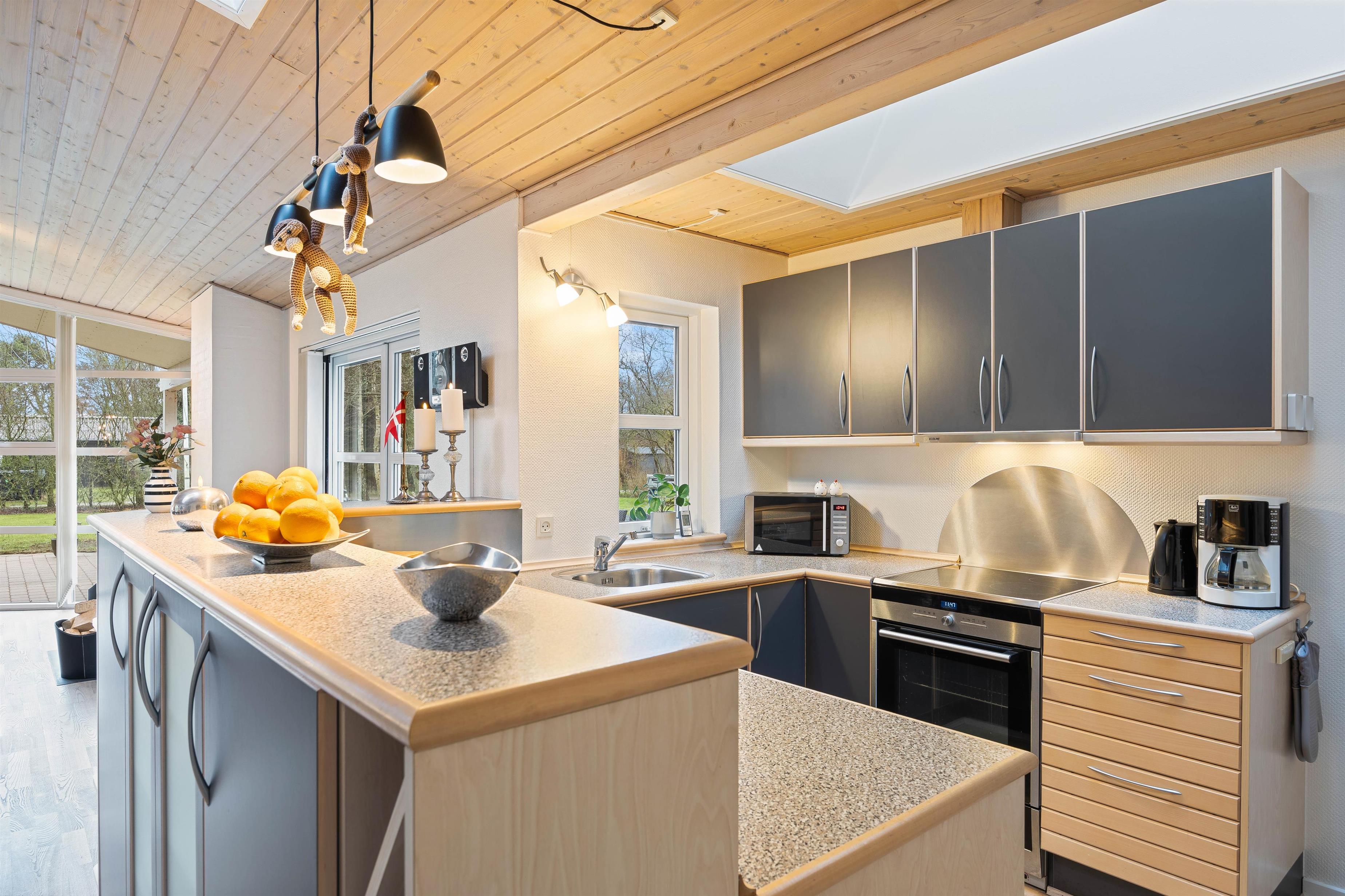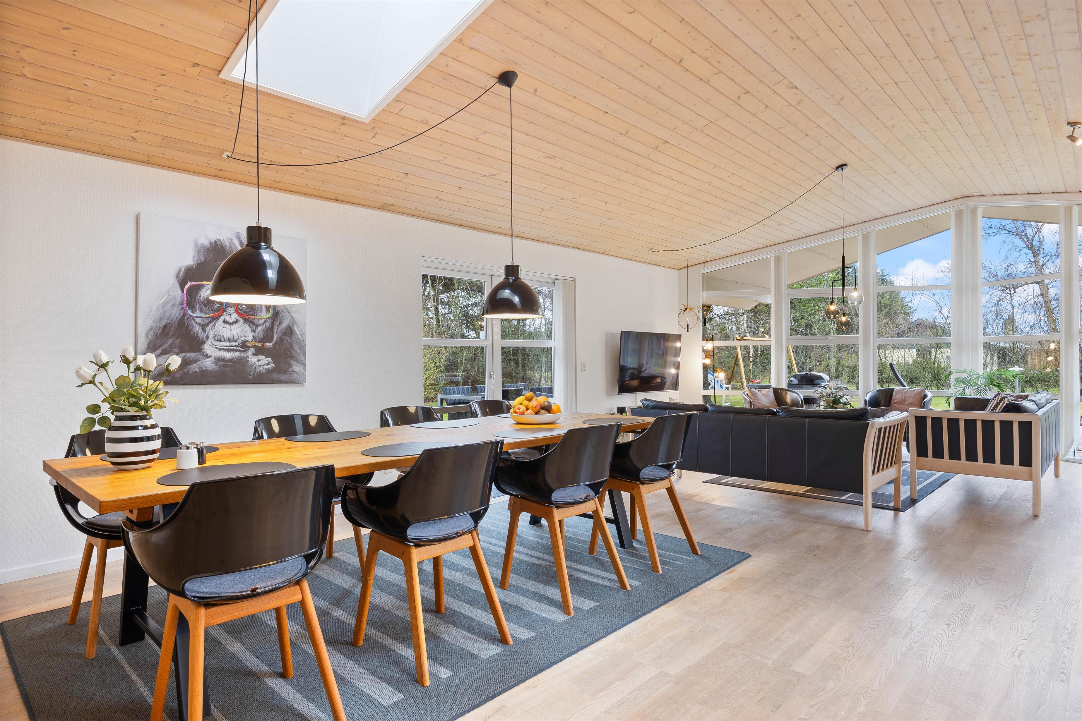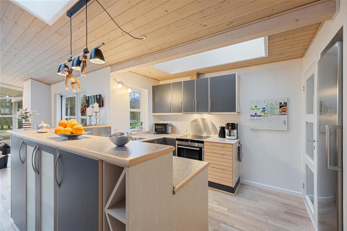 The skylights in the kitchen and above the dining table flood the space with natural light, creating a particularly enchanting atmosphere during moonlit evenings - making dinner even more enjoyable.