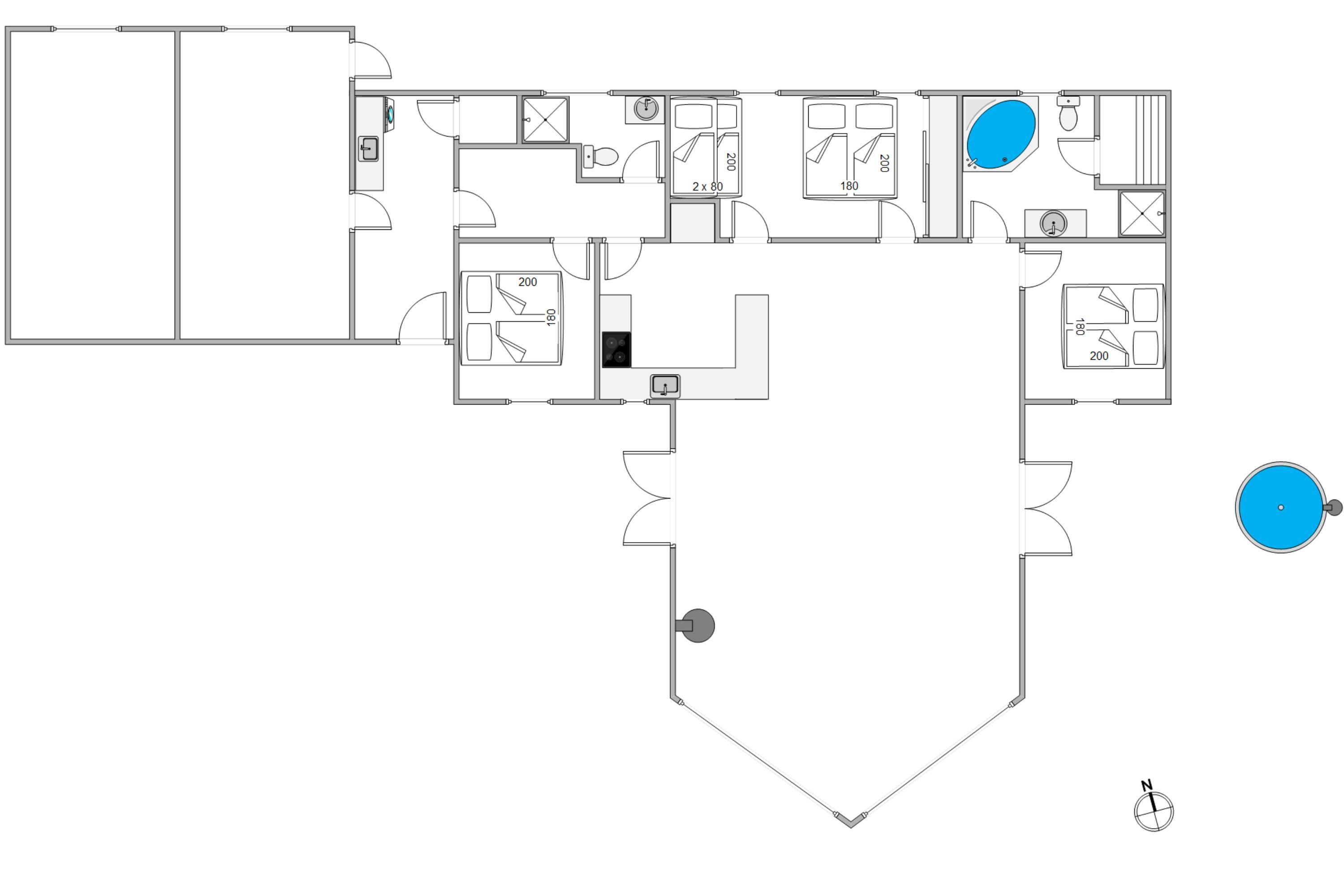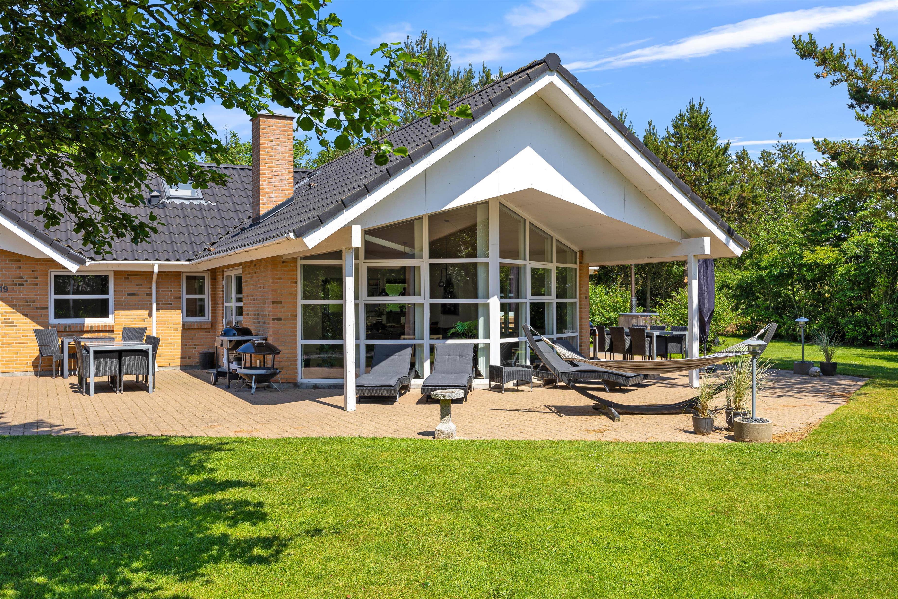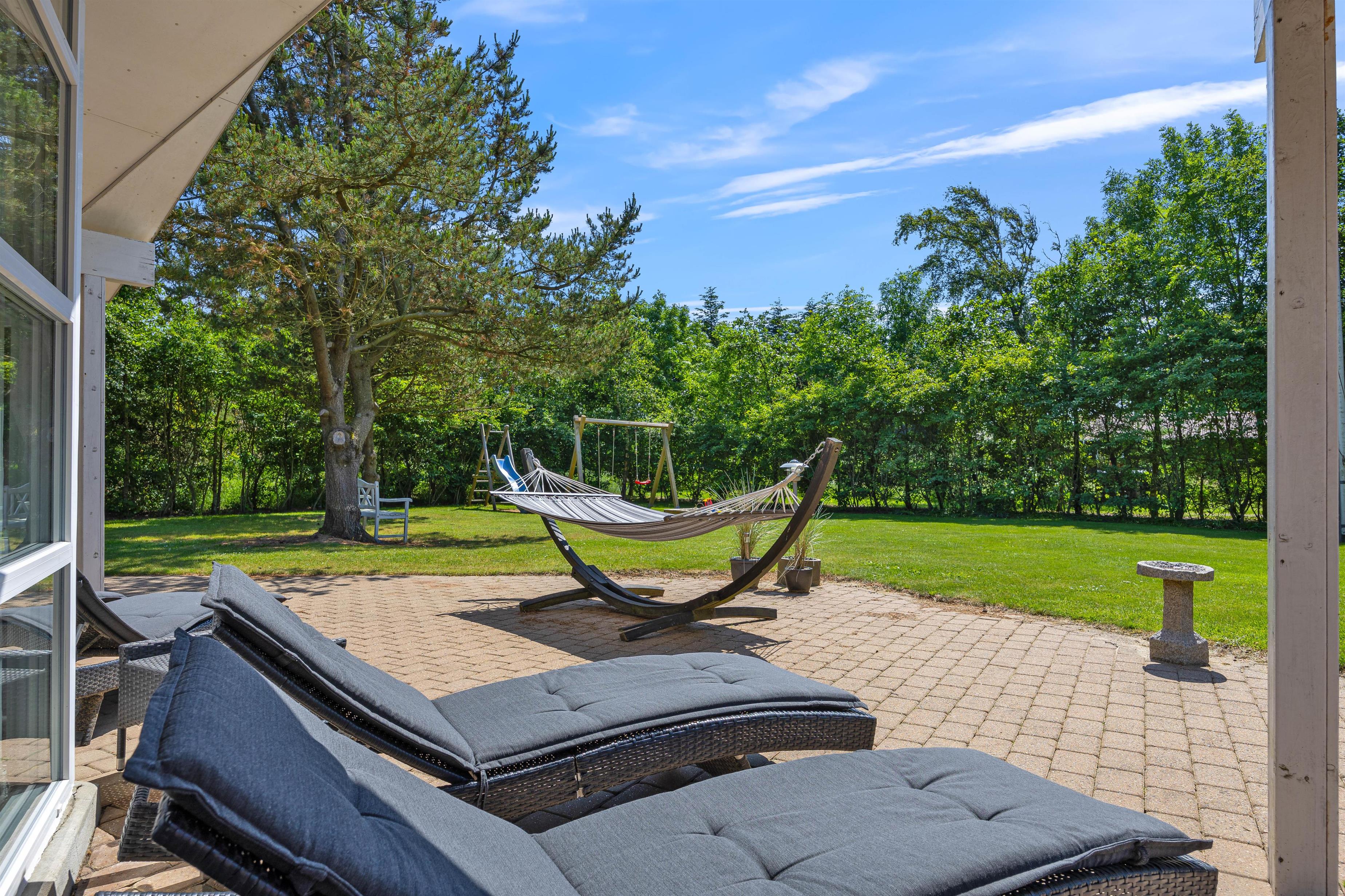 This wonderful holiday home sits on approximately 2,100 square metres of private grounds with open and partially covered terraces. There's plenty of space for undisturbed sunbathing while children enjoy the swing, slide down the slide, or make sandcastles in the sandpit.