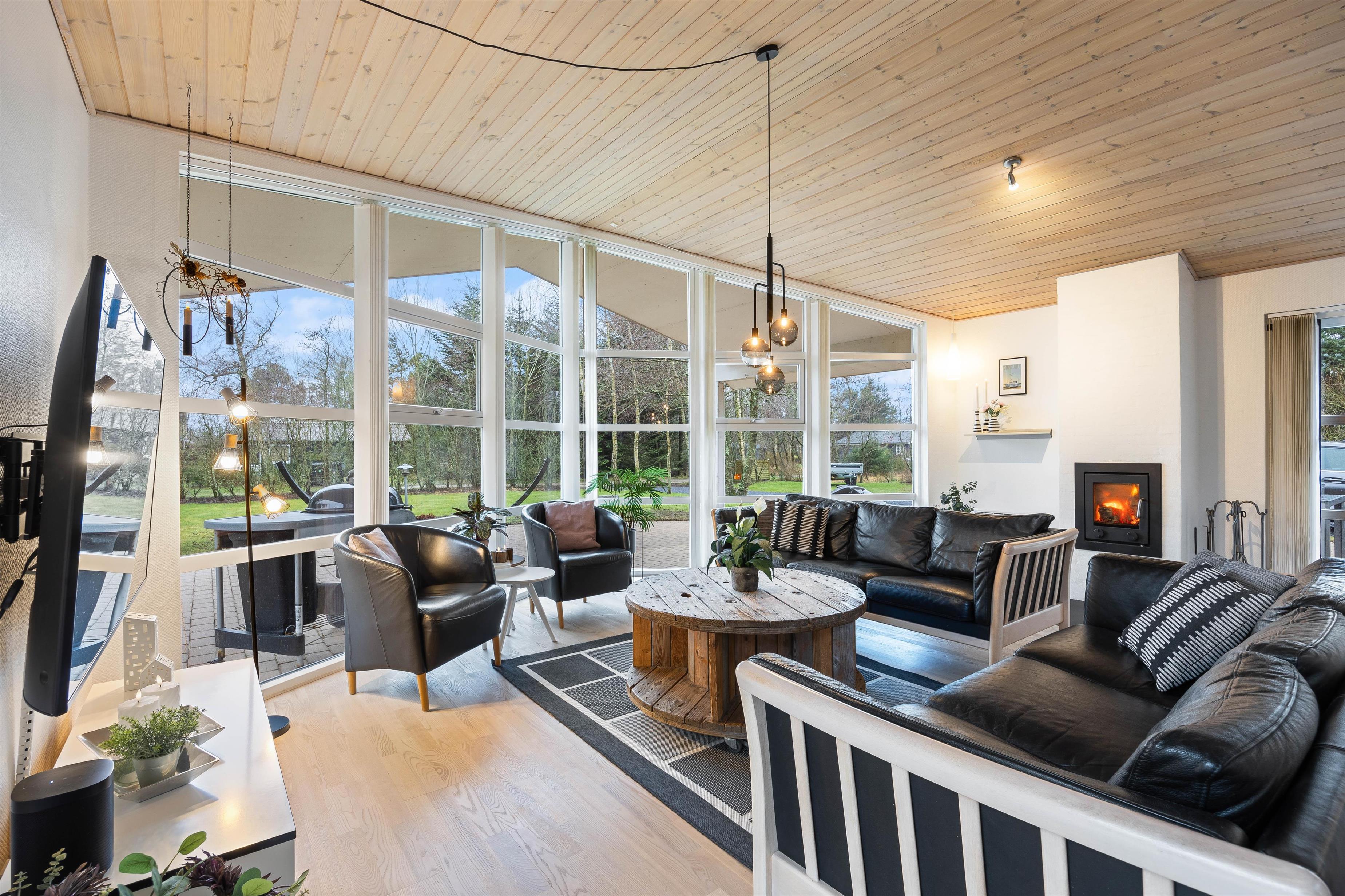 While the dishwasher handles the cleaning up and the washing machine is running, you can gather in the living area to play games or plan upcoming activities. You can also watch your favourite films via Chromecast - perfect for movie nights. There's an additional television in the bedroom, allowing for two different programmes to be watched simultaneously. The wood-burning stove adds extra cosiness, and a fireguard is provided for safety.