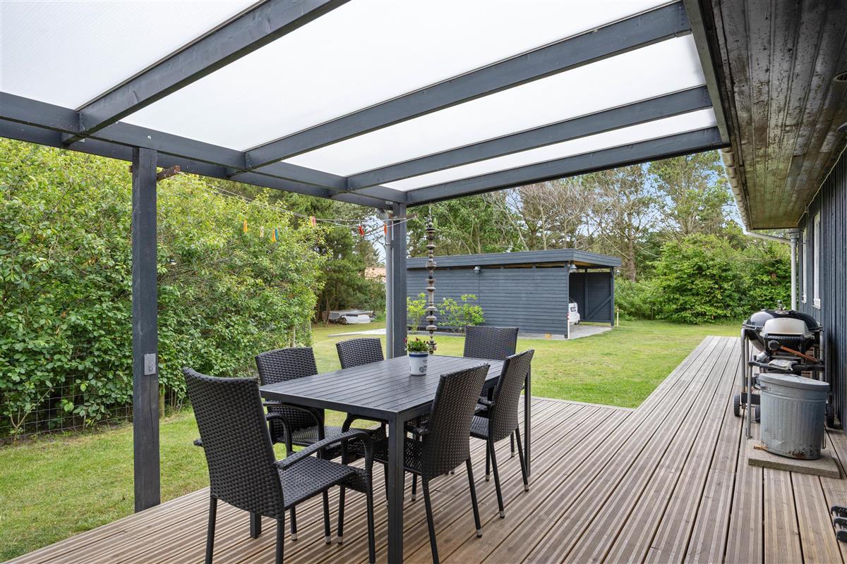The holiday home features multiple terraces, including both covered and enclosed options - ideal for families with children and dogs. There's also a fenced area of 350 square metres specifically for your dogs. There's plenty of space for everyone to relax in the sun. The secluded location offers excellent privacy, perfect for sunbathing on the loungers or enjoying a delicious barbecue under the open sky.