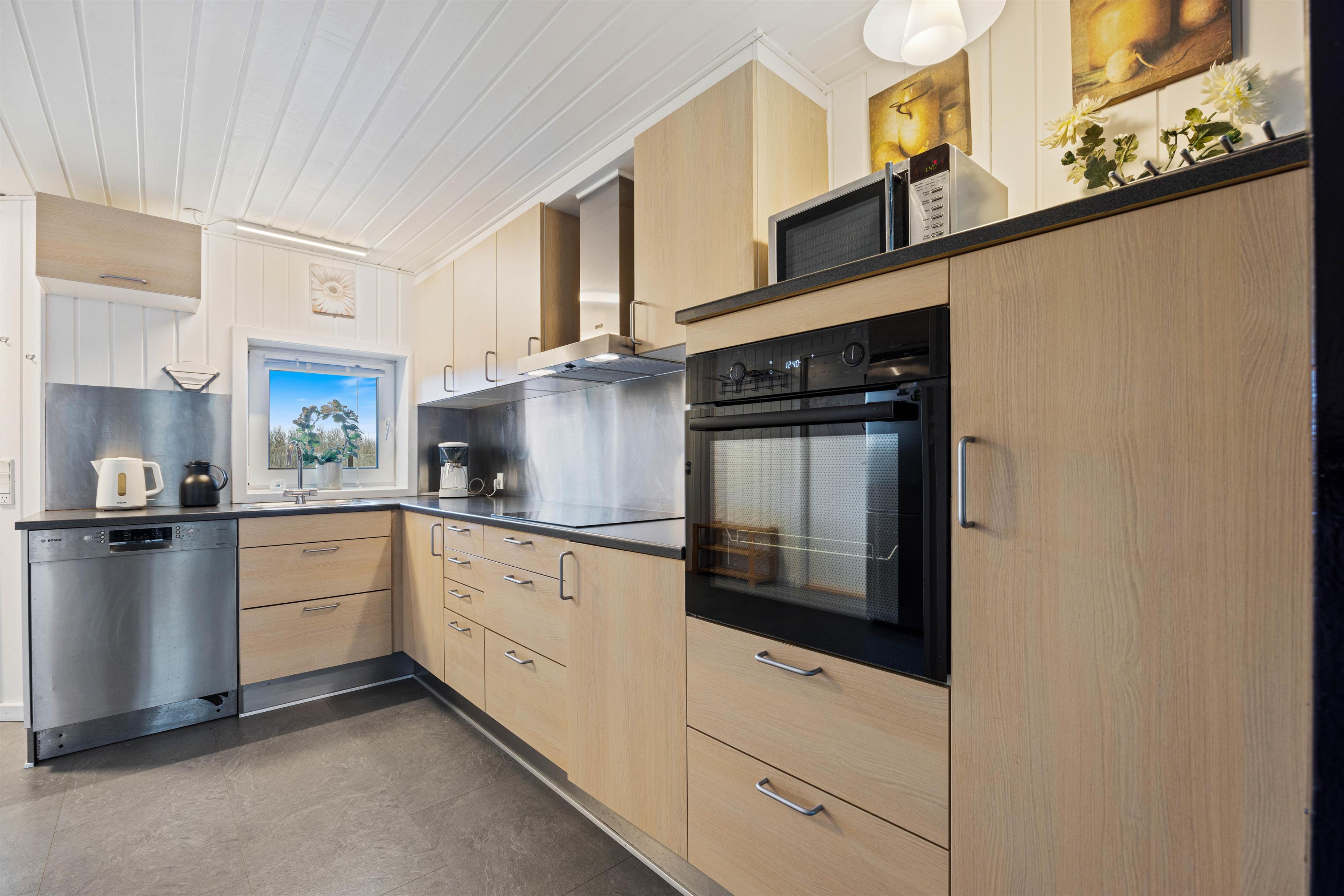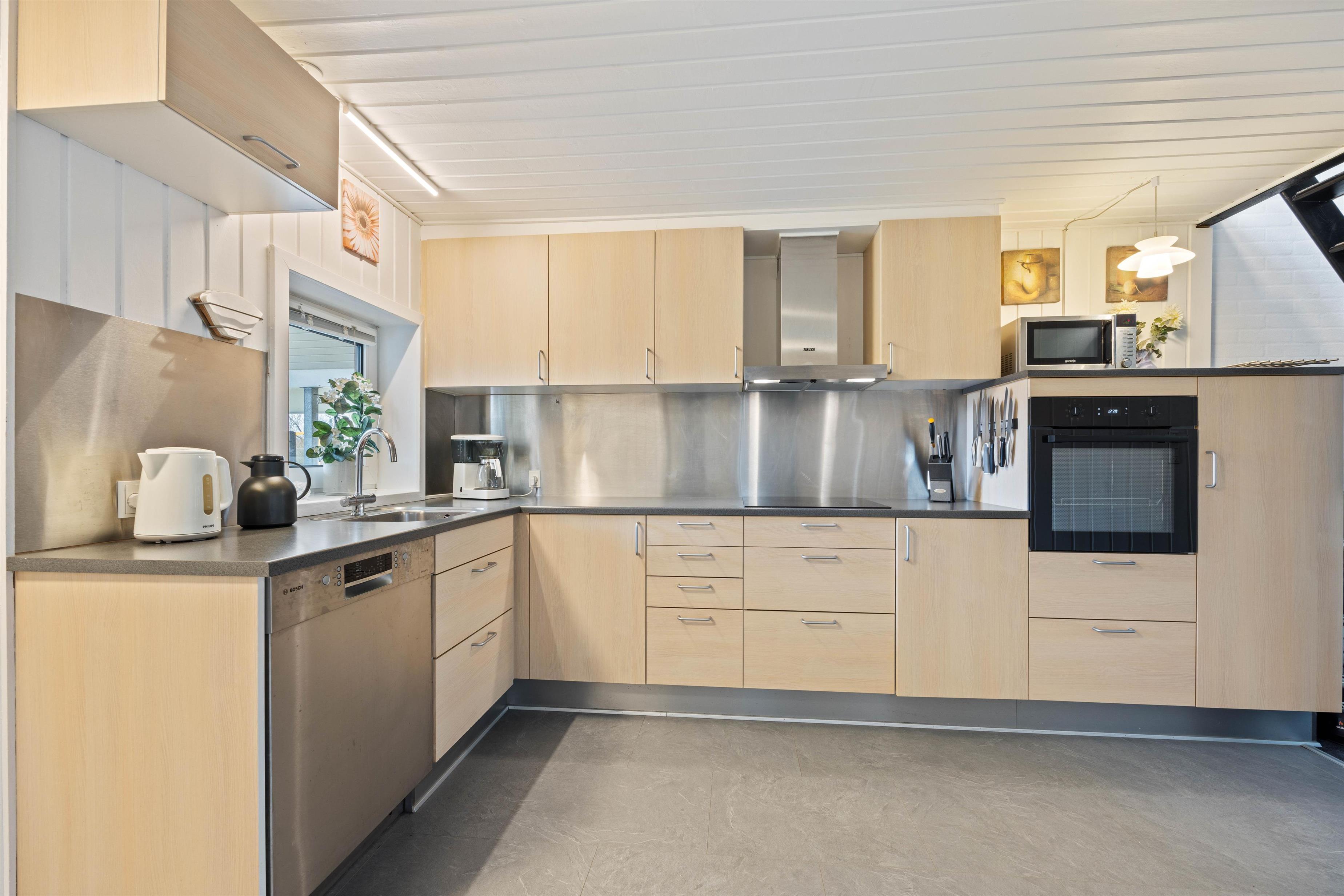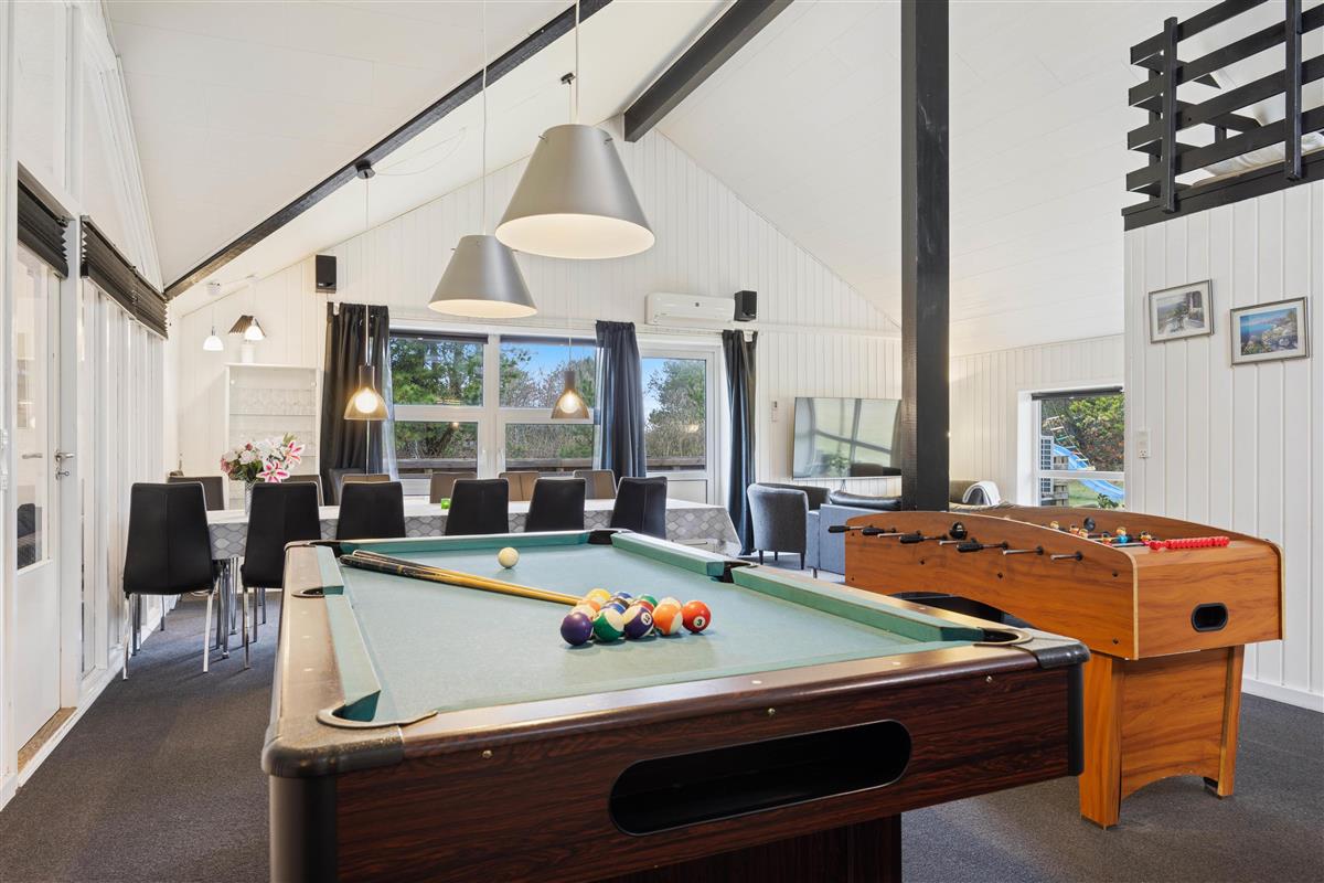 Upon entering the holiday home, you're welcomed by a large open-plan space connecting the kitchen, living room, dining area and games room. Here you can cook together, plan your holiday activities or watch a film as a group. On rainy days, the house offers plenty to do with a pool table and table football, ensuring you'll never be bored. Crown your pool champion while the wood-burning stove provides cosy warmth and that typical holiday home atmosphere in the background. Additionally, an energy-efficient air-to-air heat pump has been installed, distributing pleasant warmth throughout the holiday home.