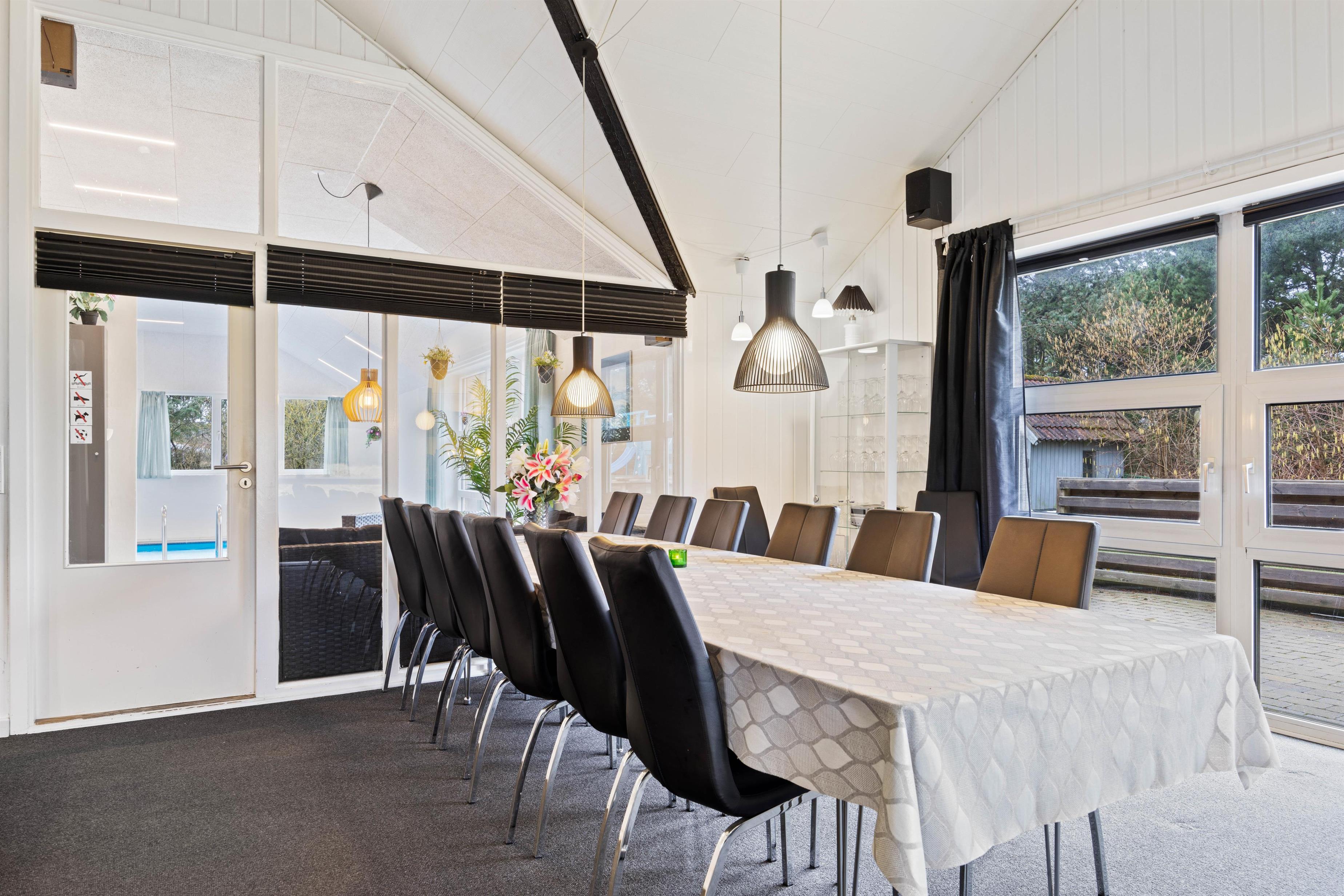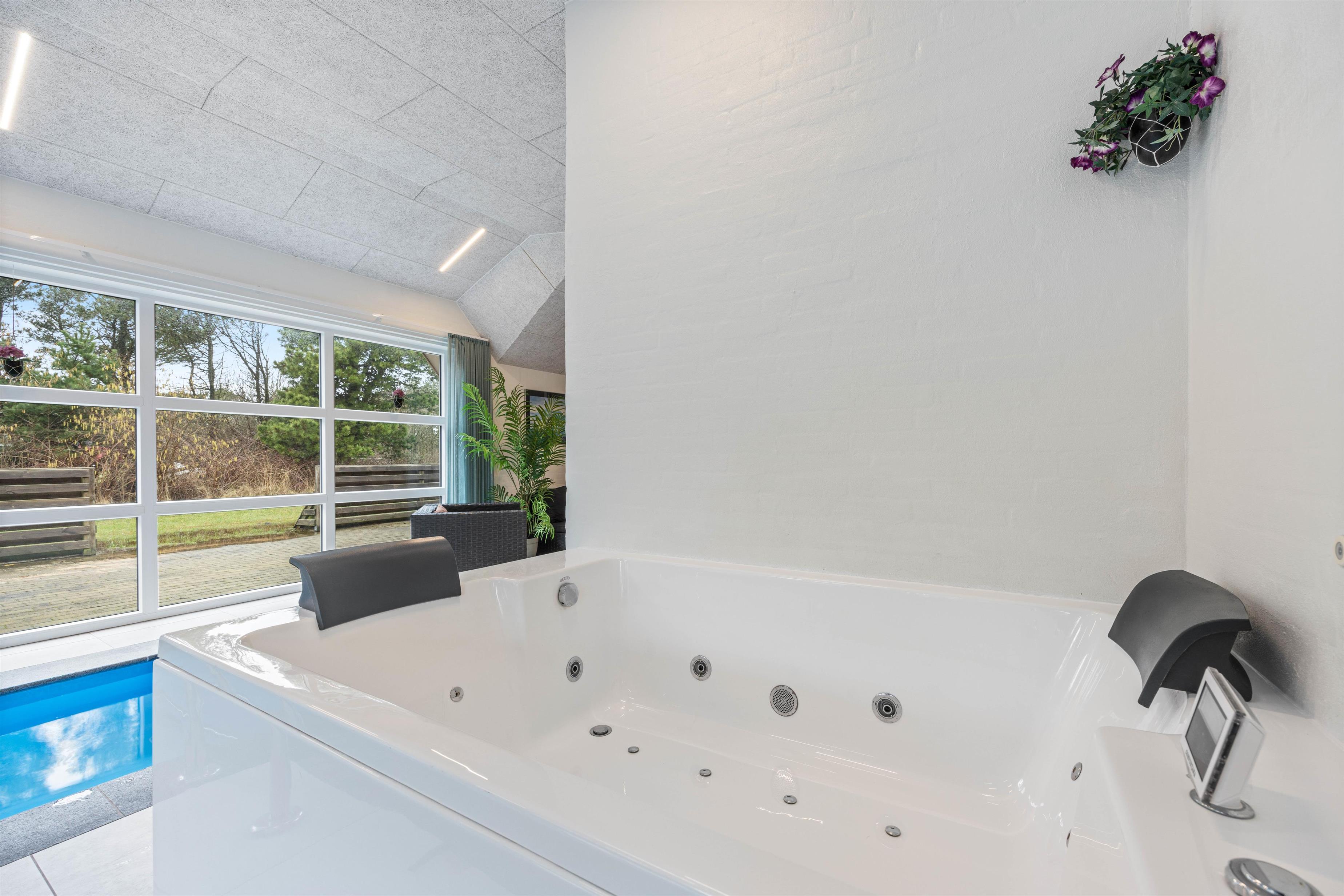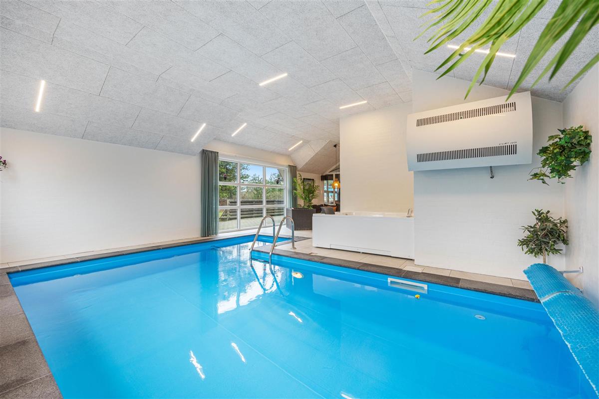 Looking to spend a holiday with the whole family on the Danish west coast? This 12-person pool house at Sivsangervej 33 in Lodberg Hede is the perfect choice. This holiday home offers plenty of space for both relaxation and fun. While water enthusiasts can enjoy themselves in the indoor swimming pool, others can unwind in the hot tub or the house's own sauna.