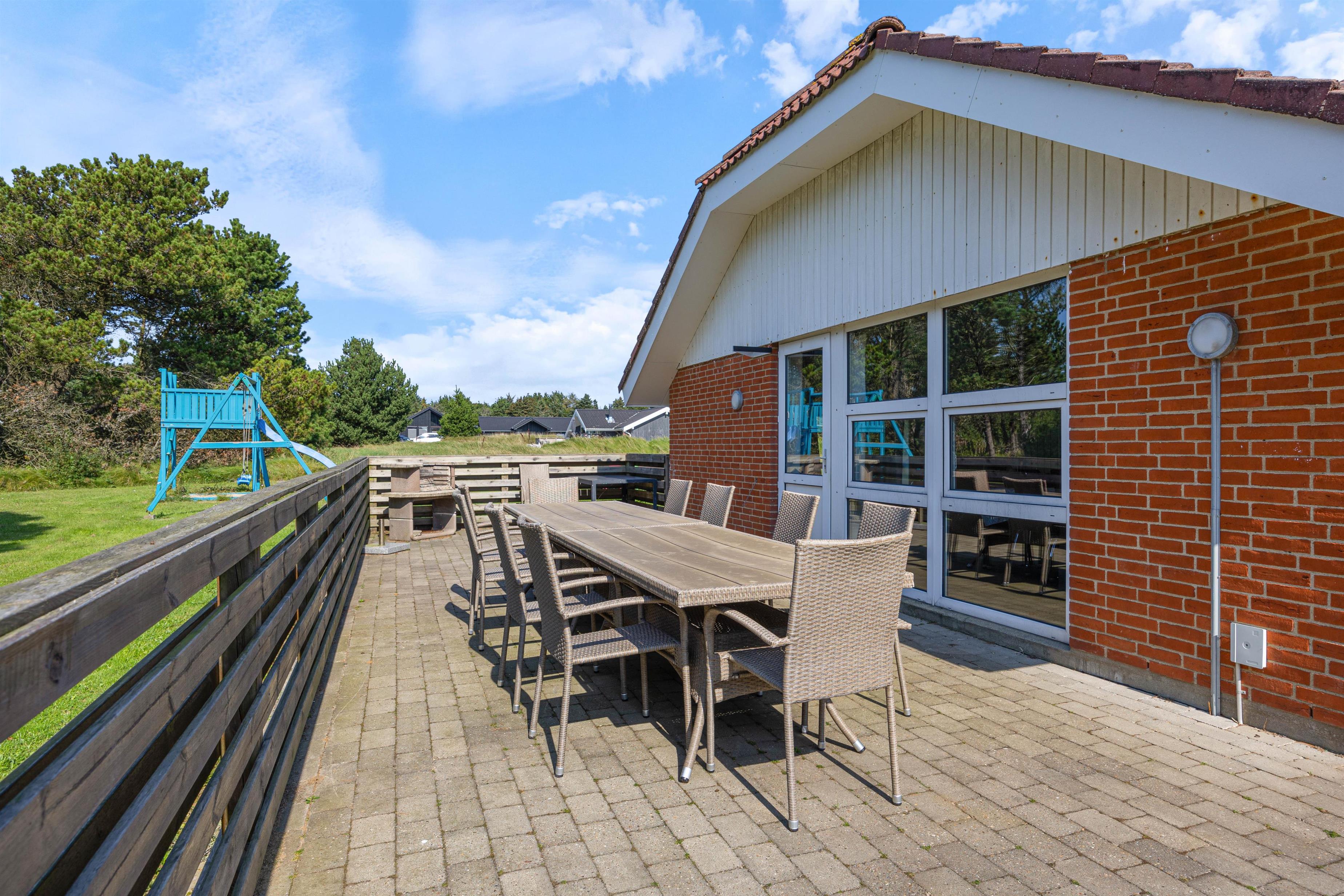 From the kitchen, you can access the covered terrace, which is partially screened. Everyone can find their favourite spot here, even on rainy days. While you make yourself comfortable on the garden furniture, your children can enjoy themselves on the swing or build magnificent sandcastles in the sandpit. In the evening, you can round off a wonderful holiday day with a delicious barbecue.