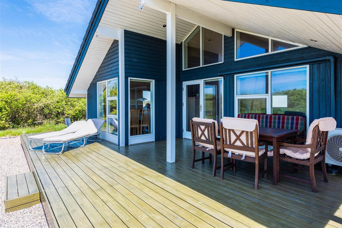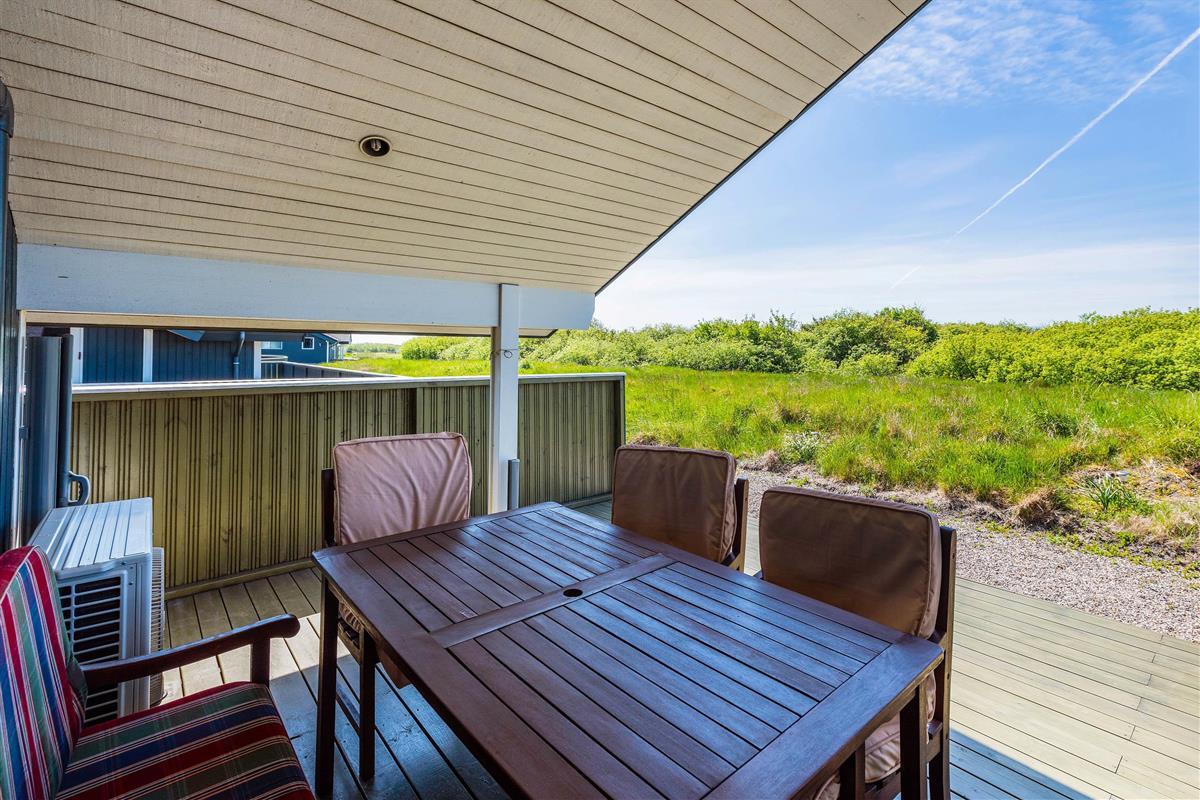 The terrace at Klevevej 71 offers both covered and open areas, perfect for enjoying the fresh air. Well-furnished with garden furniture, a bench, sun loungers and a barbecue, you have everything needed for relaxing in the sunshine and enjoying the outdoors.