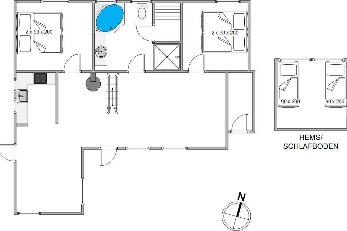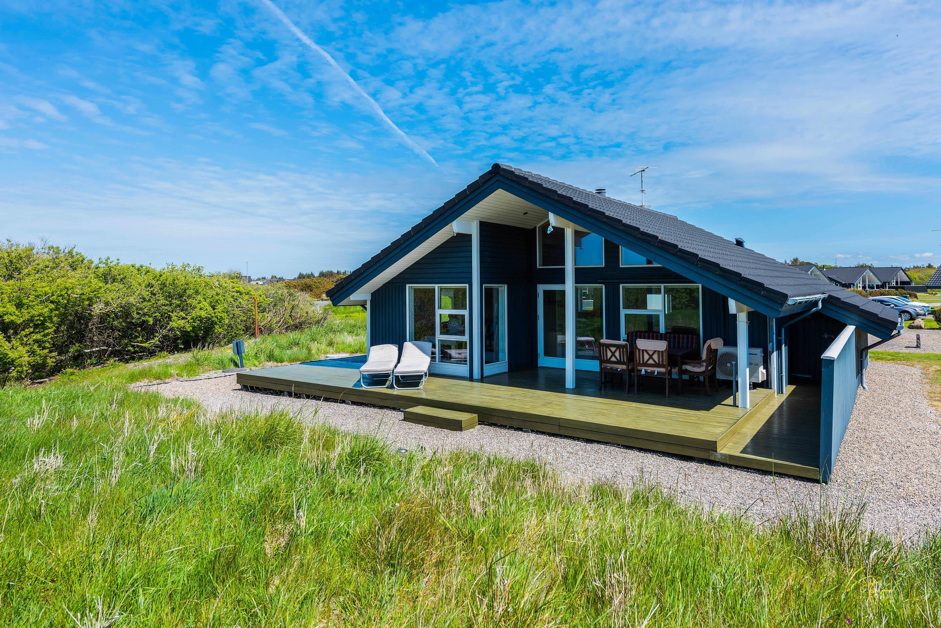 This inviting holiday home in Lodbjerg Hede is bright and welcoming, accommodating up to 6 people. The holiday home features a sauna, whirlpool and wood-burning stove. Two of the sleeping areas are located in the loft space, making them particularly suitable for children. Beautiful terraces, partially covered and shaded, are also available for your use.