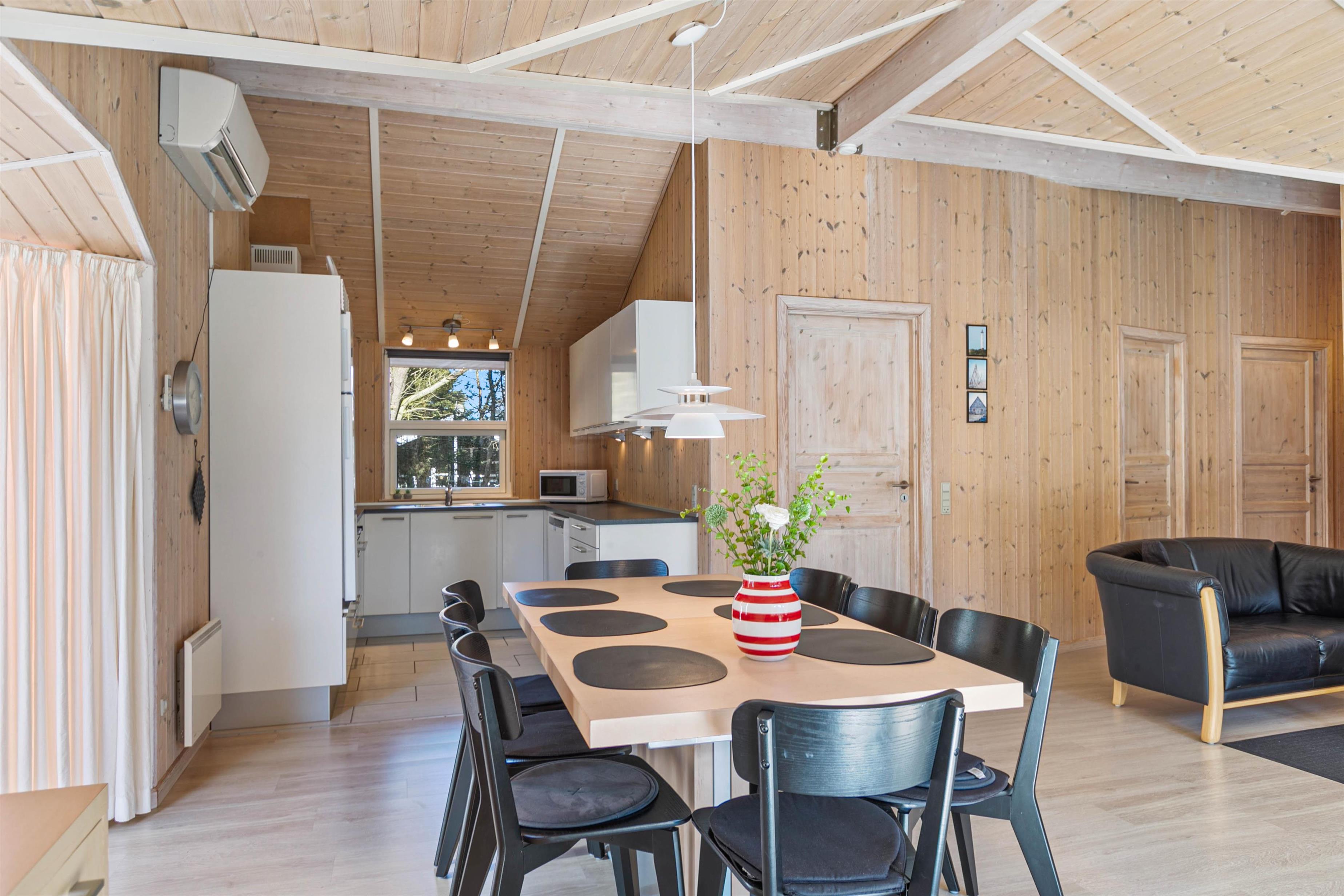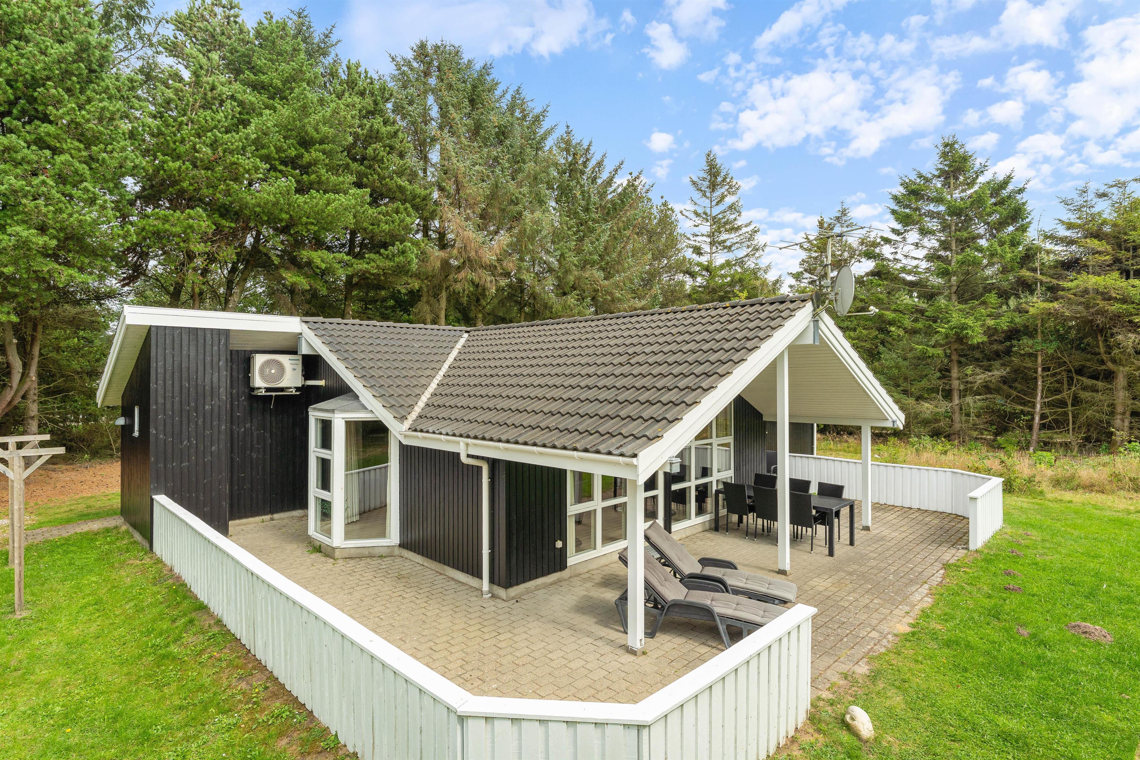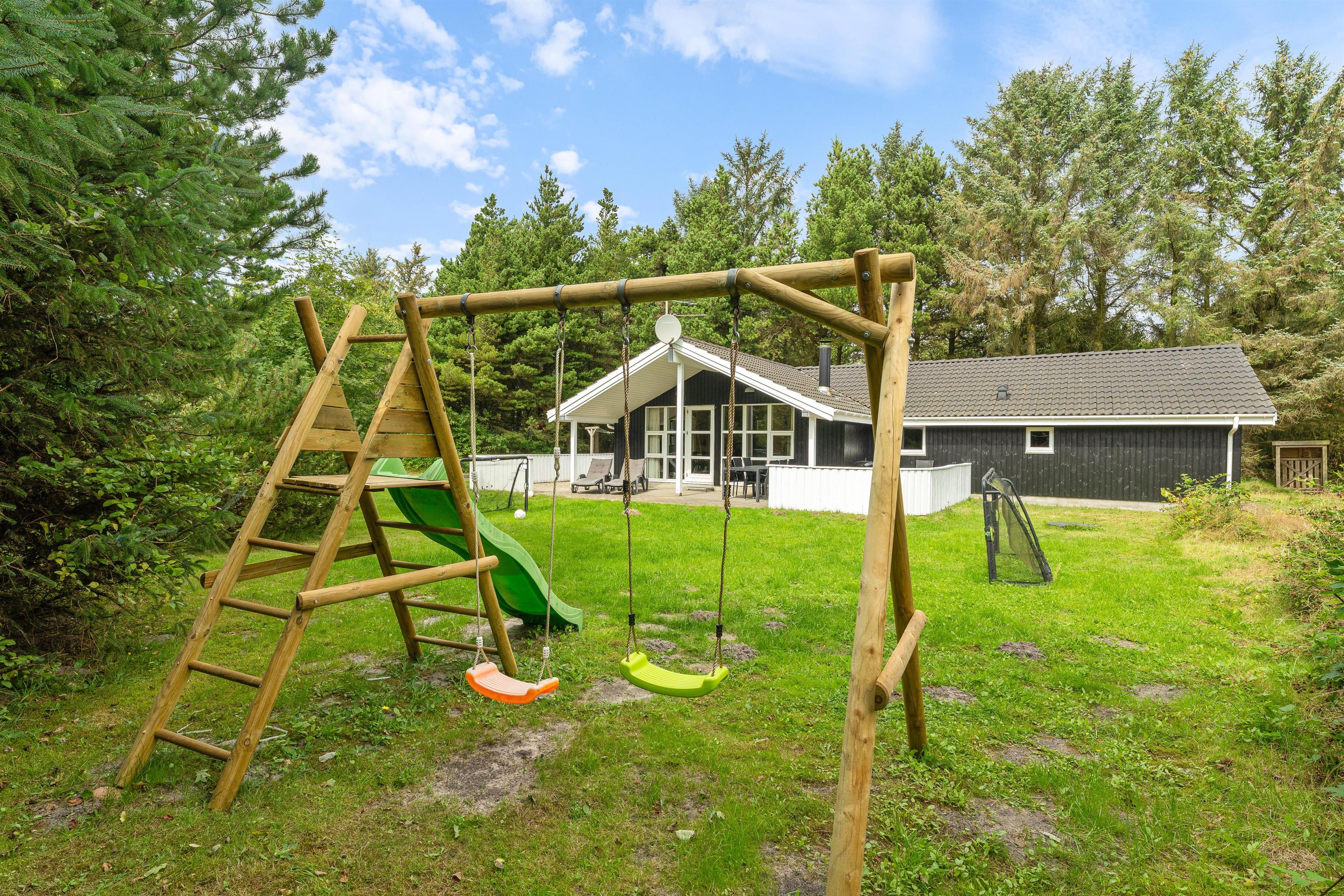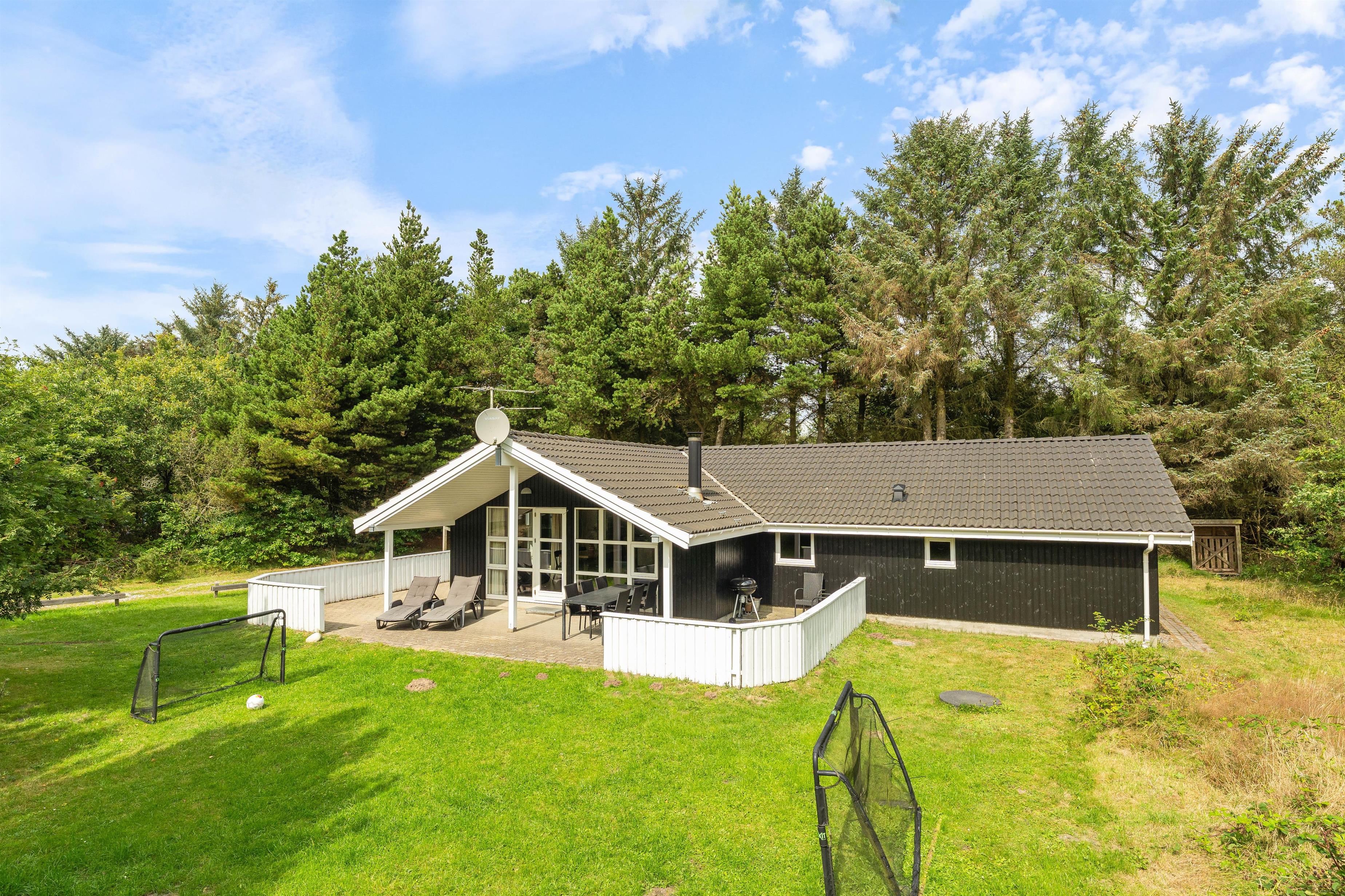 This beautiful holiday home for 8 people is located at Klitrosevej 15 in Lodbjerg Hede, not far from the North Sea. The holiday home sits on a large, partially enclosed plot surrounded by trees. It's perfect for two families wanting to holiday together.