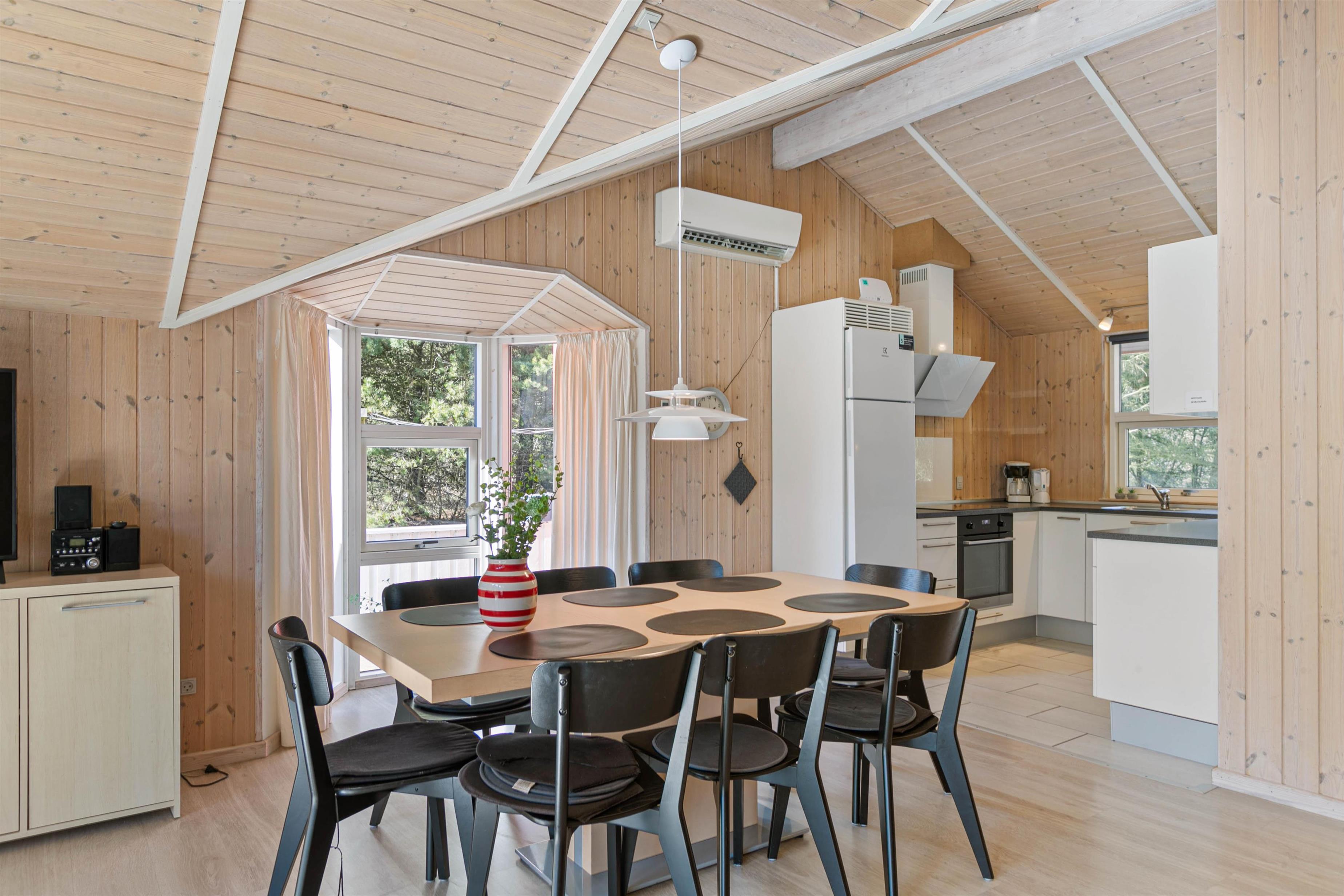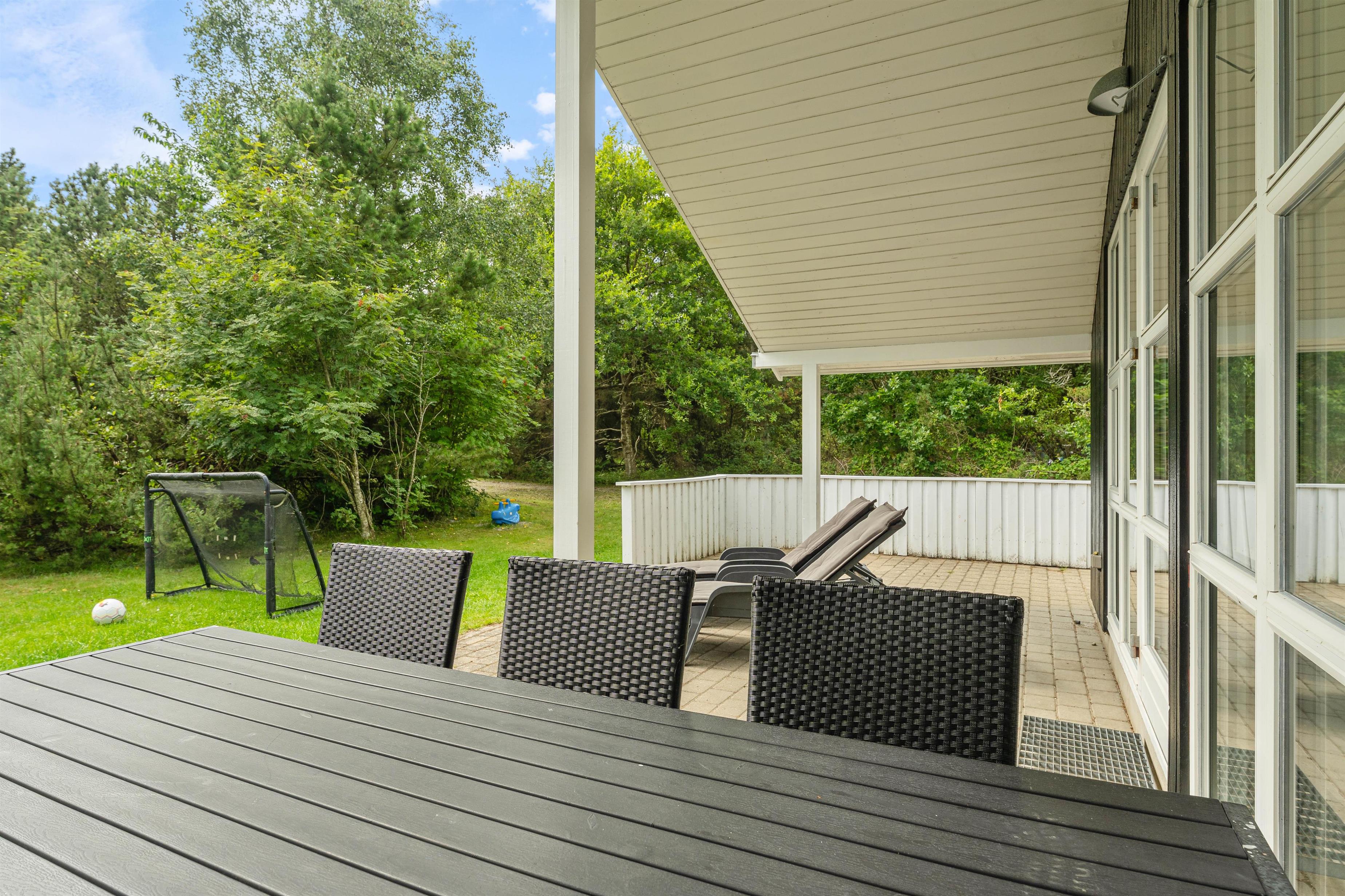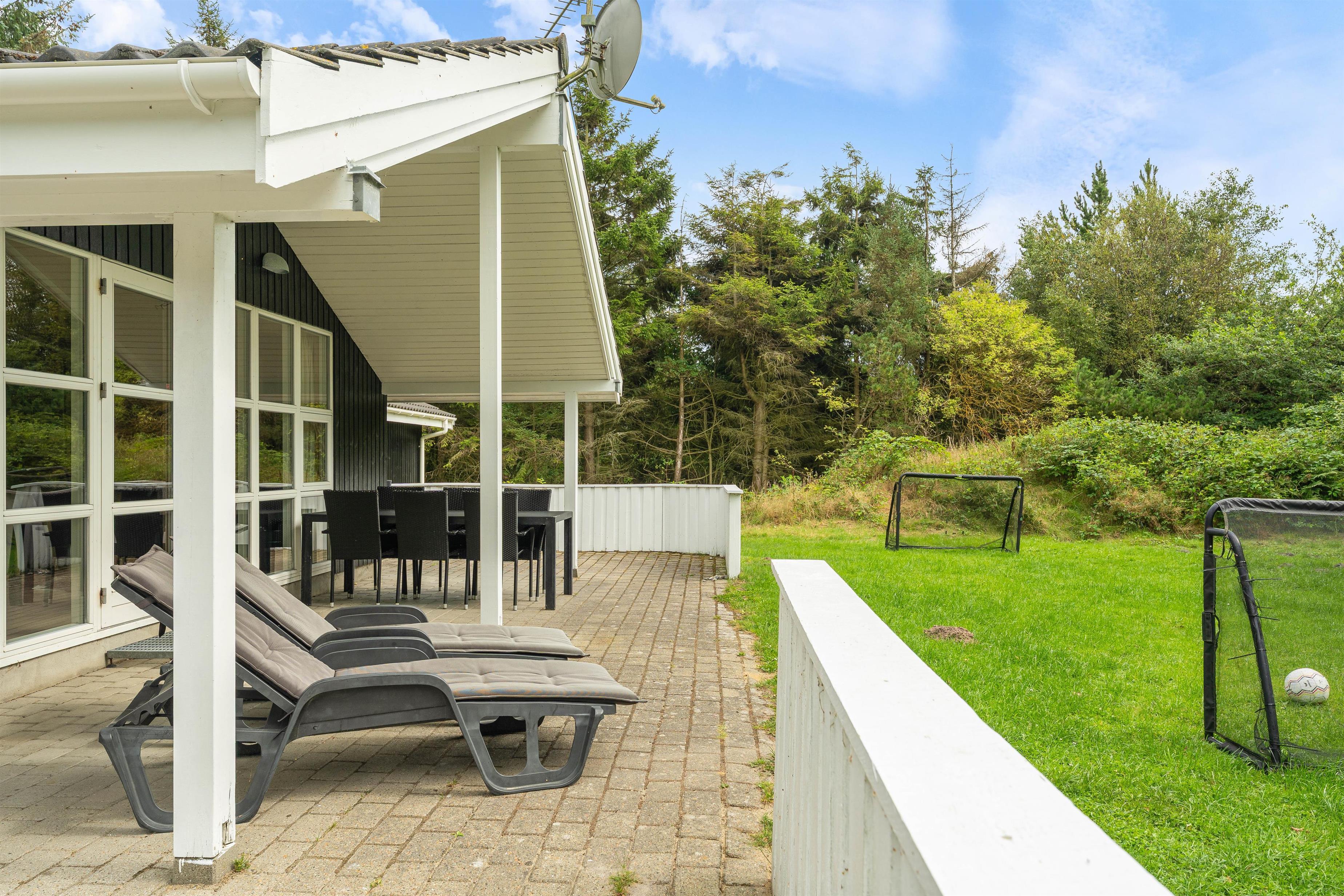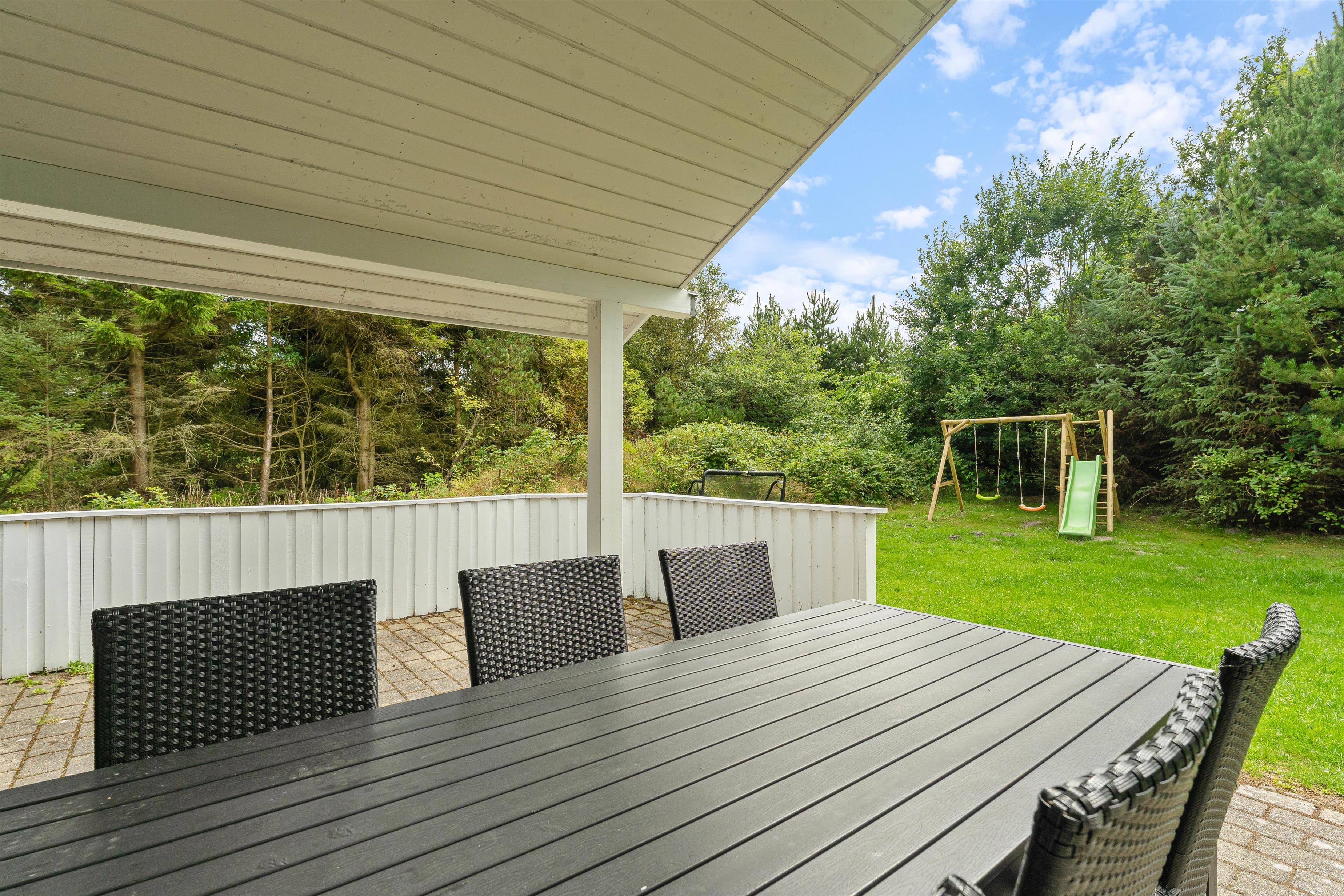 This beautiful holiday home for 8 people is located at Klitrosevej 15 in Lodbjerg Hede, not far from the North Sea. The holiday home sits on a large, partially enclosed plot surrounded by trees. It's perfect for two families wanting to holiday together.