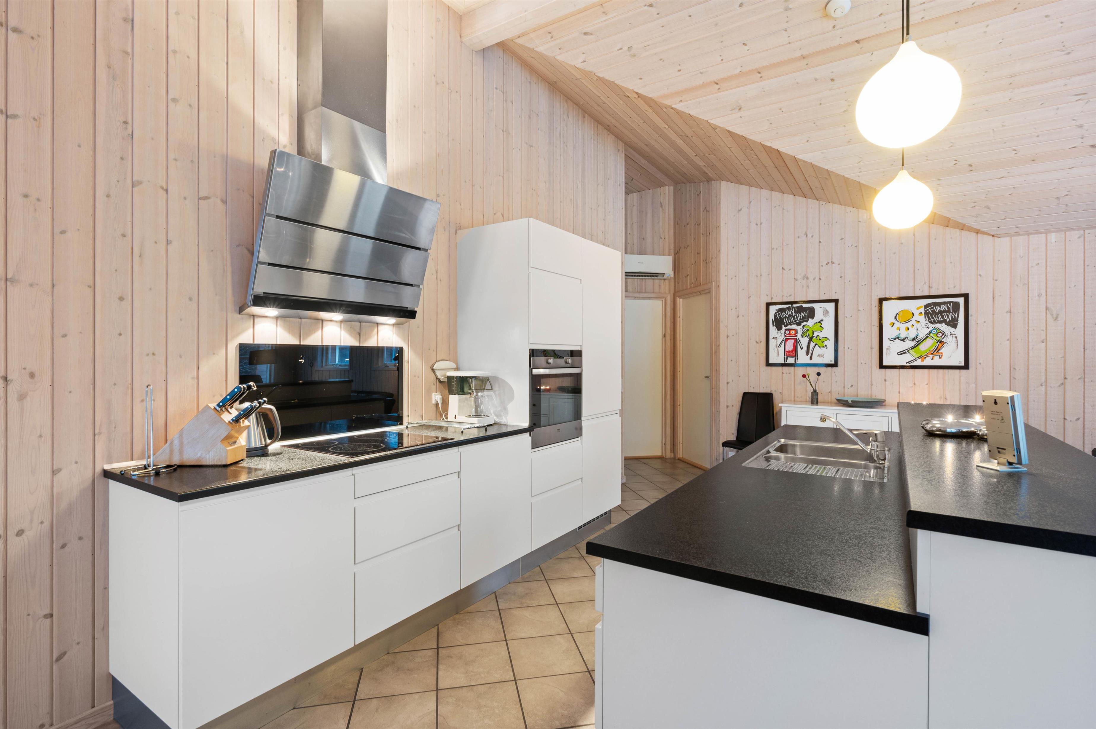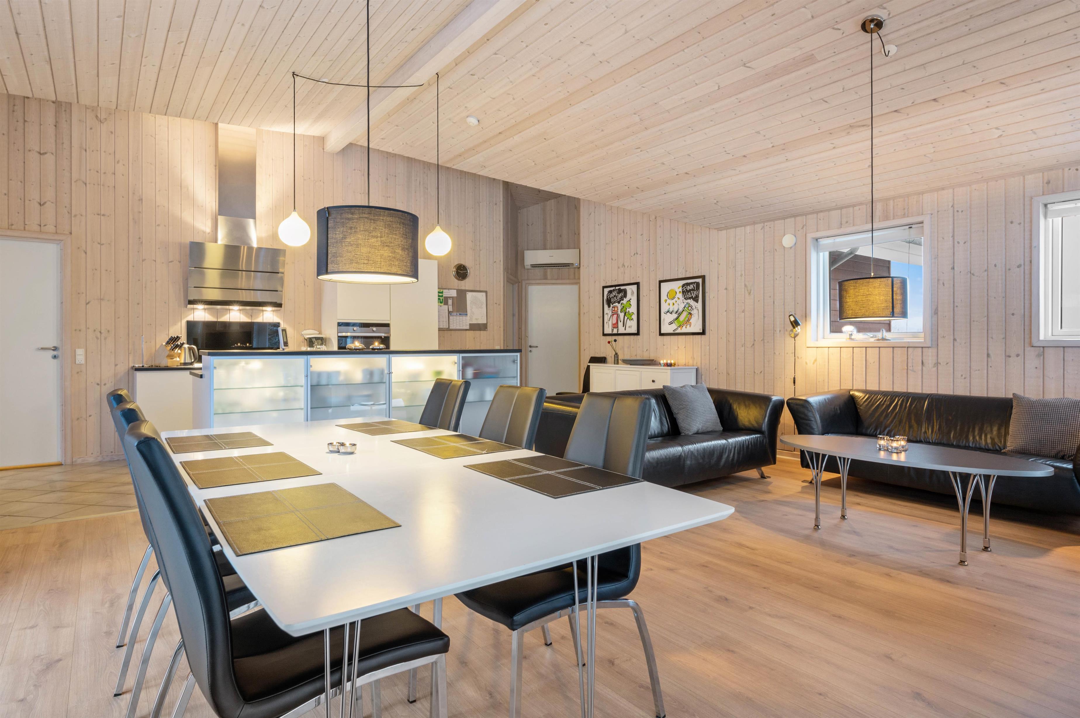 The holiday home offers 122 square metres of space and features bright colours and modern interior design. Large windows allow sunlight to flood in, creating a natural atmosphere even when indoors.