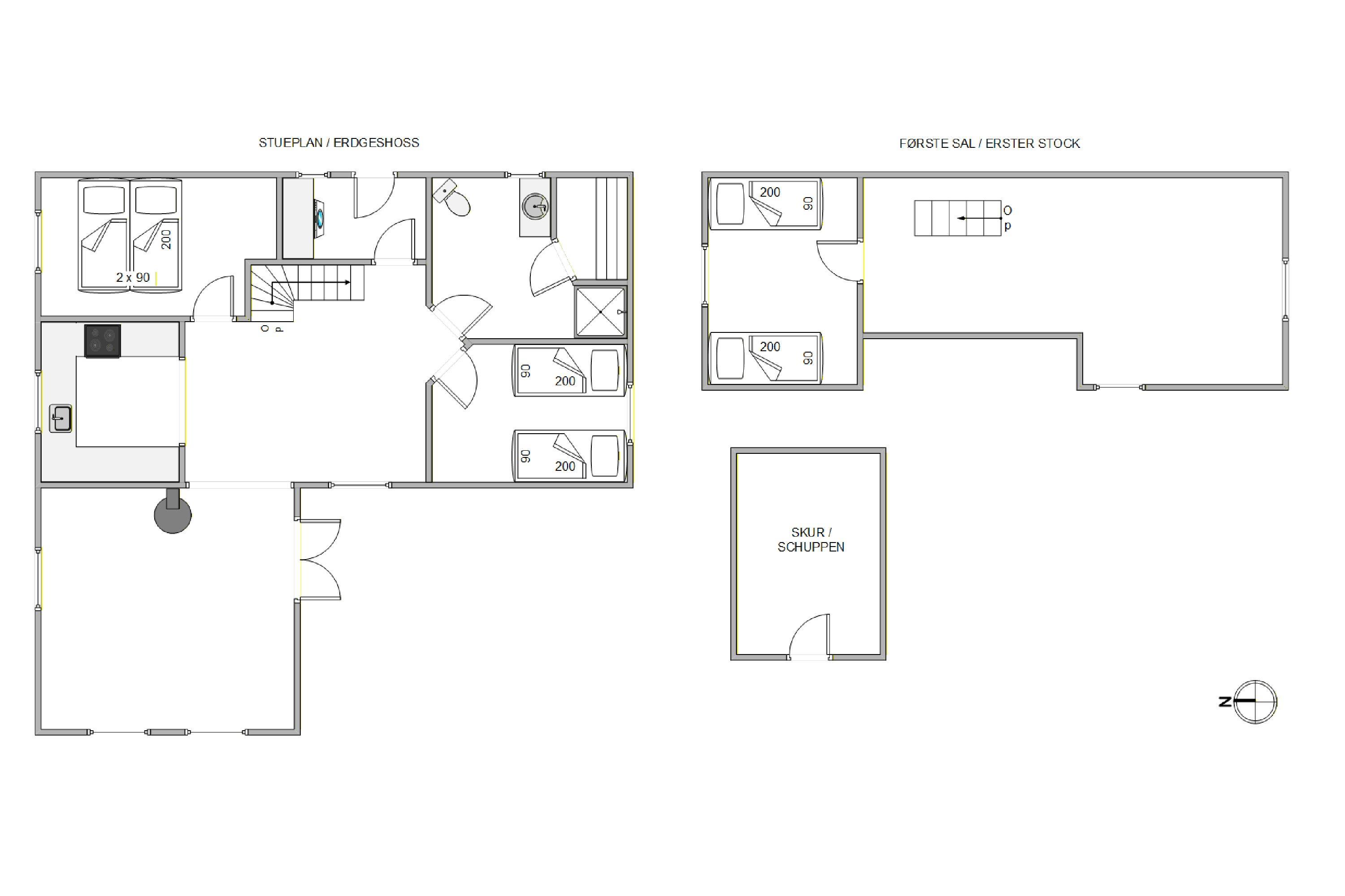 Der nahegelegene und wunderschöne Strand der Nordseeküste ist nur 1800 m entfernt und lädt zu ausgiebigen Spaziergängen und erfrischenden Badeausflügen ein. Auch euer Hund wird es lieben. Sollte es euch an Vorräten fehlen oder ihr habt Lust ein bisschen zu shoppen, sind die nächsten Einkaufsmöglichkeiten in dem ca. 2900 m entfernten Badeort Søndervig leicht erreichbar.