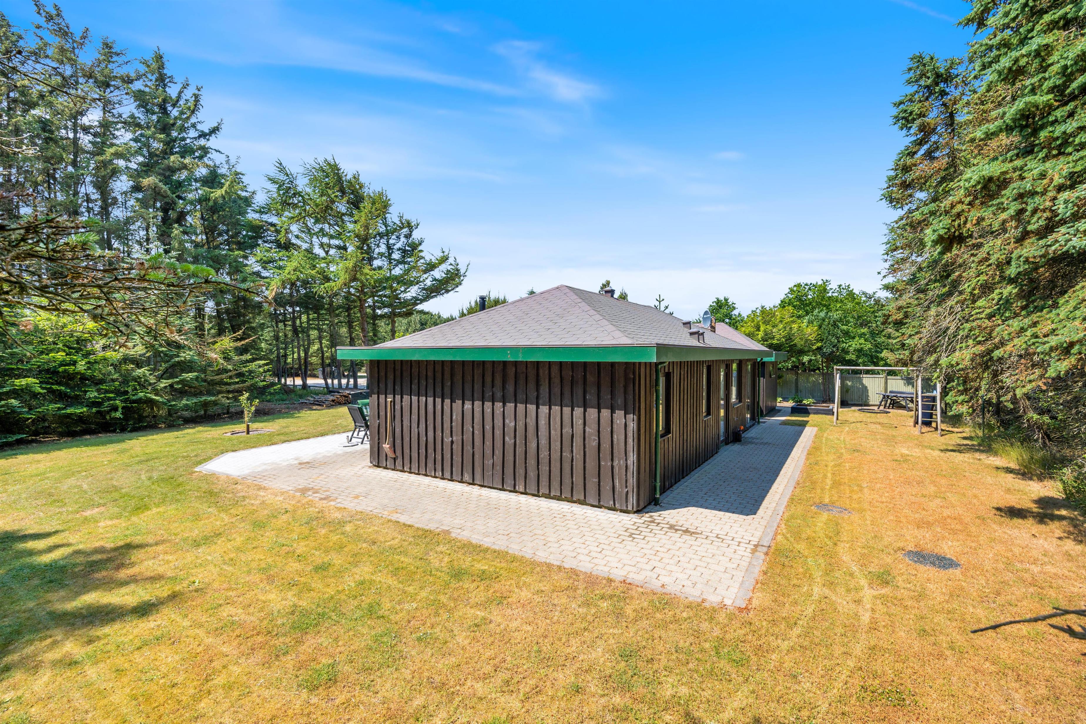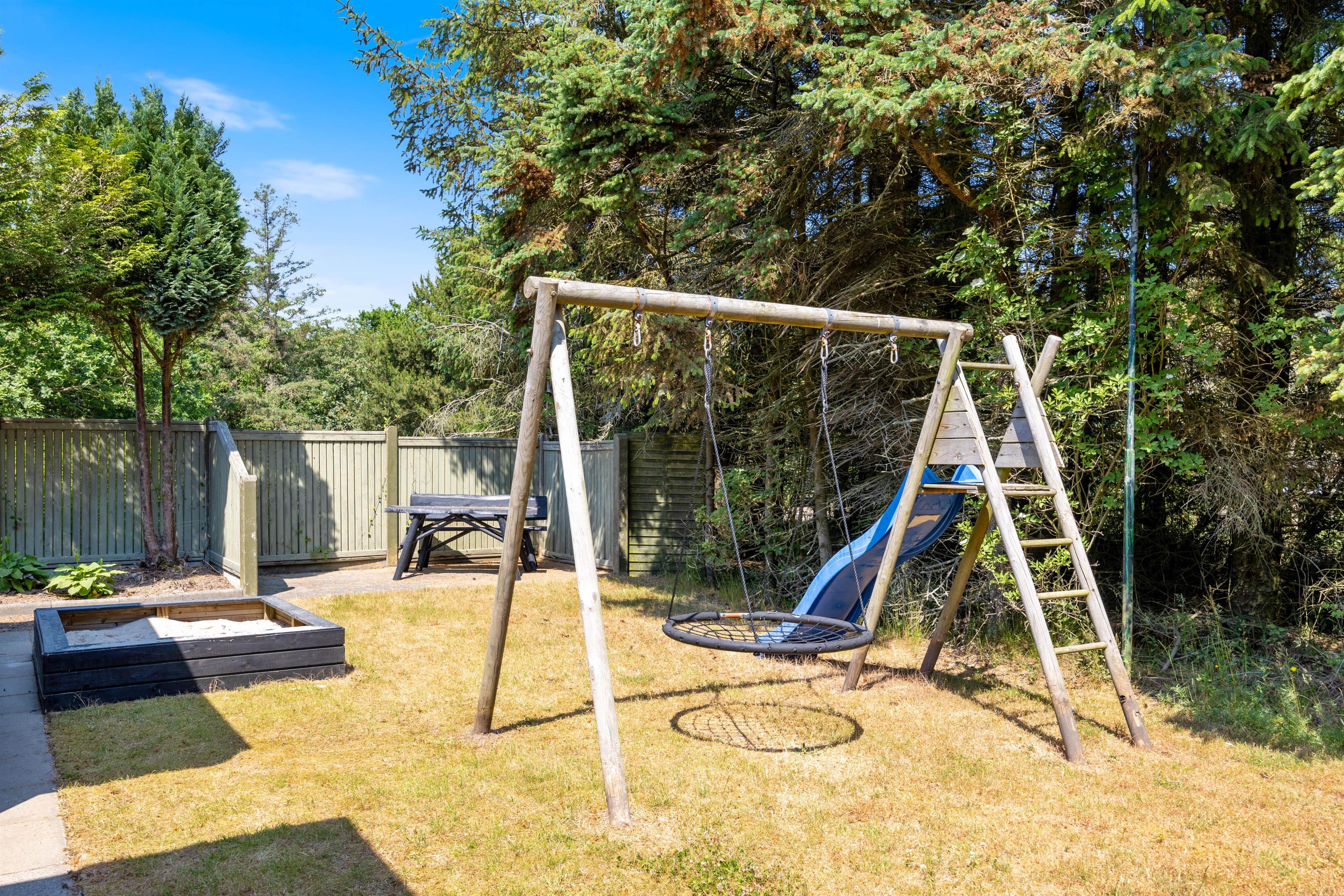The holiday home sits on a large, tree-surrounded plot that will surely be a highlight for any children in your family. Little ones can play to their heart's content and let their imagination run wild. The sandpit and swing will be particular favourites.