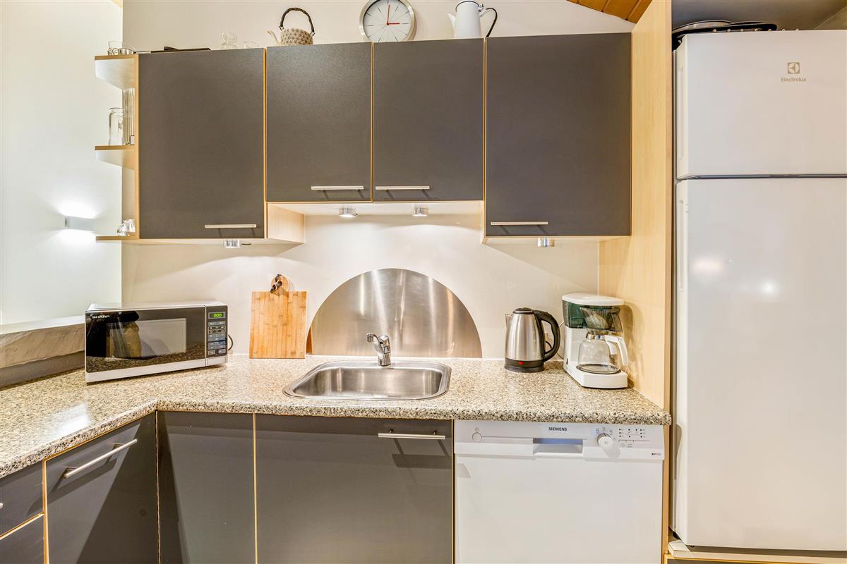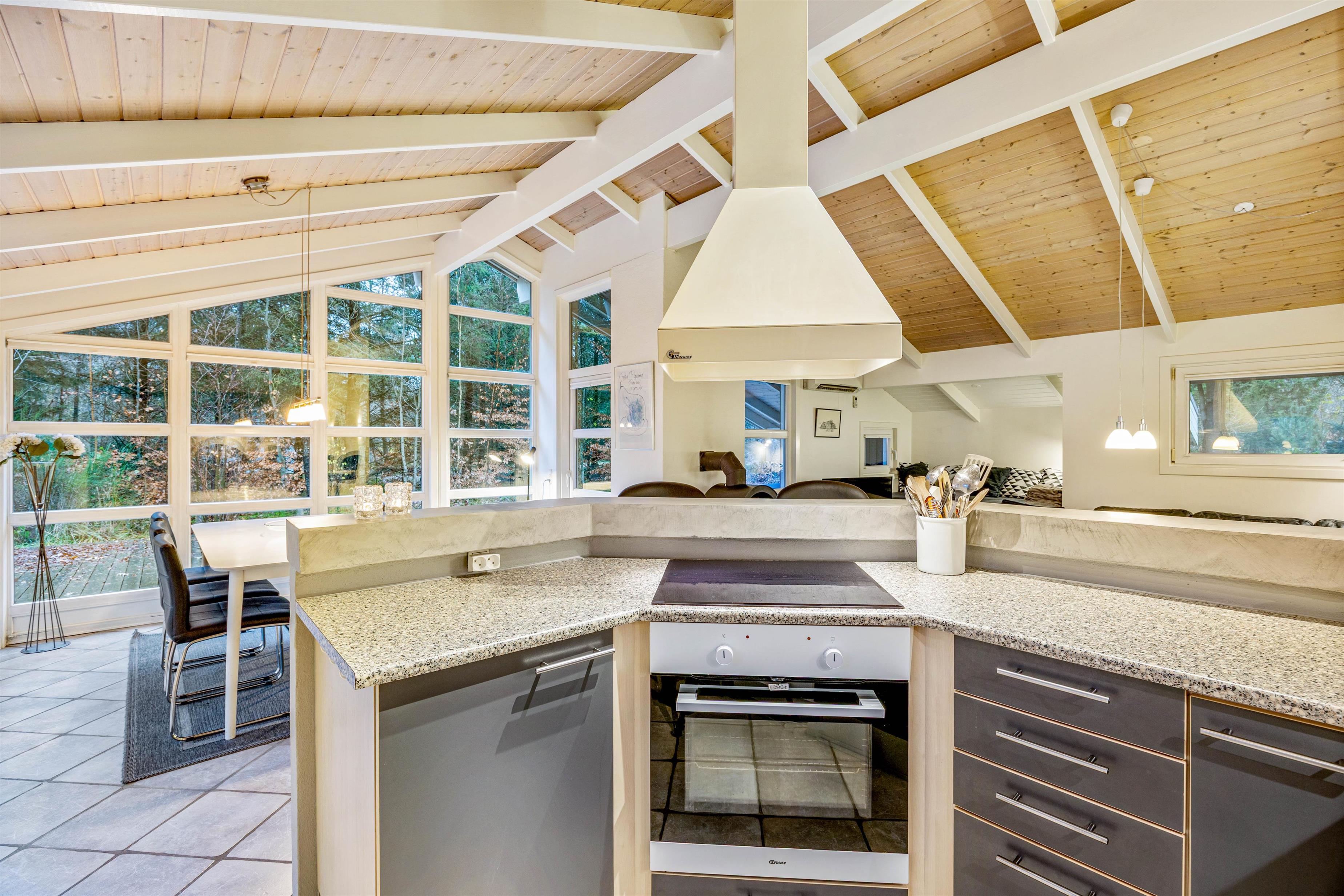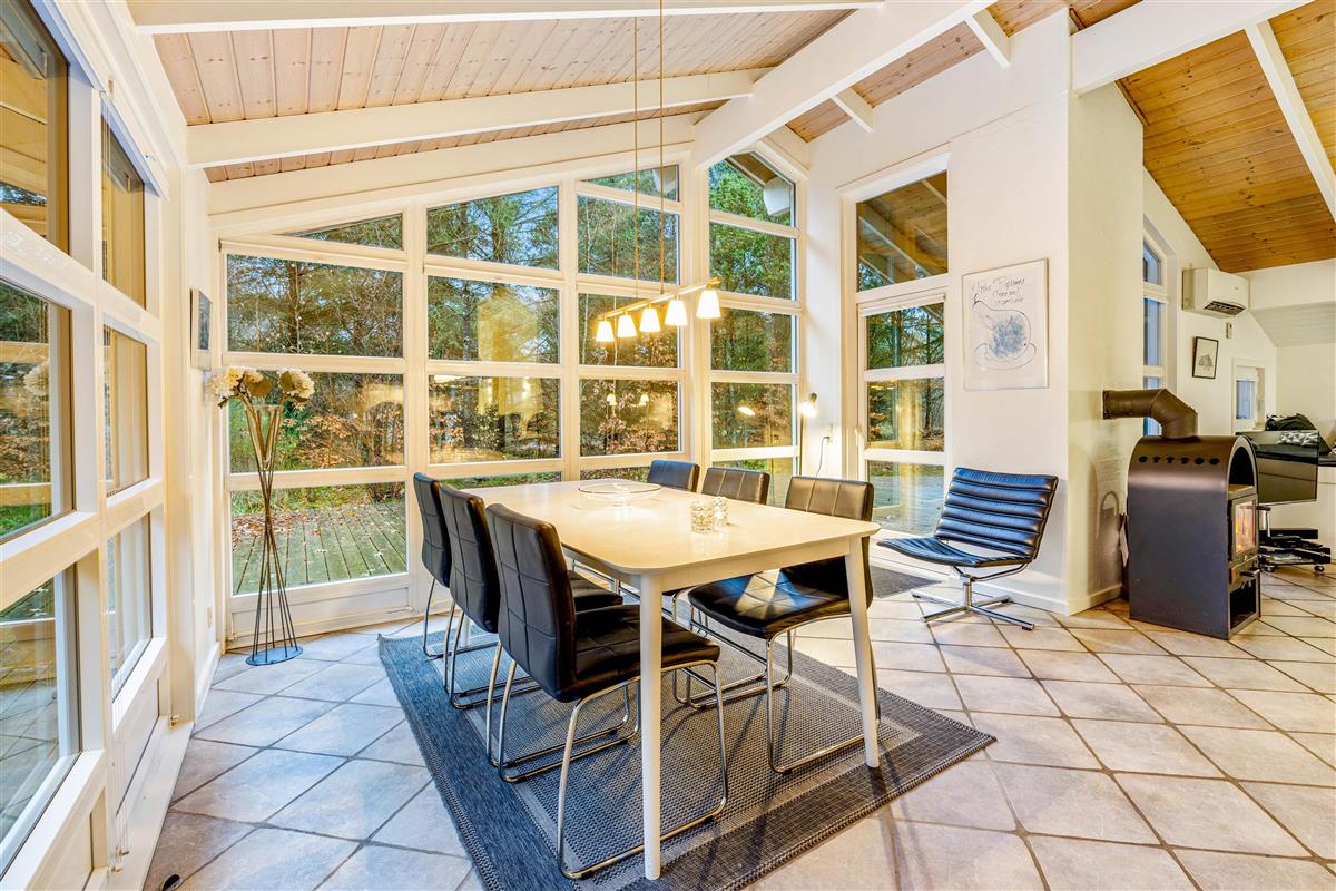 The beautiful kitchen opens onto the living and dining room, creating a spacious area where you can spend many hours with family and friends. The wood-burning stove provides warmth and cosiness on cooler days.
