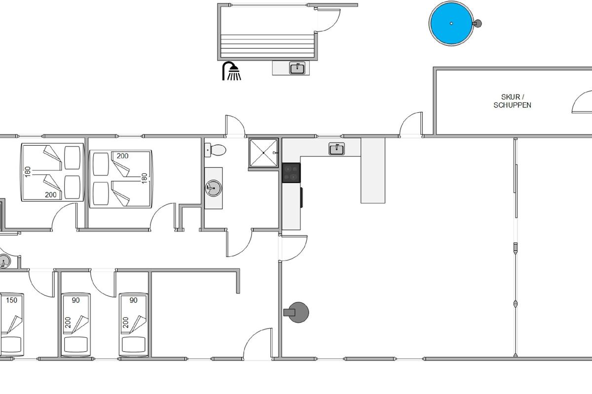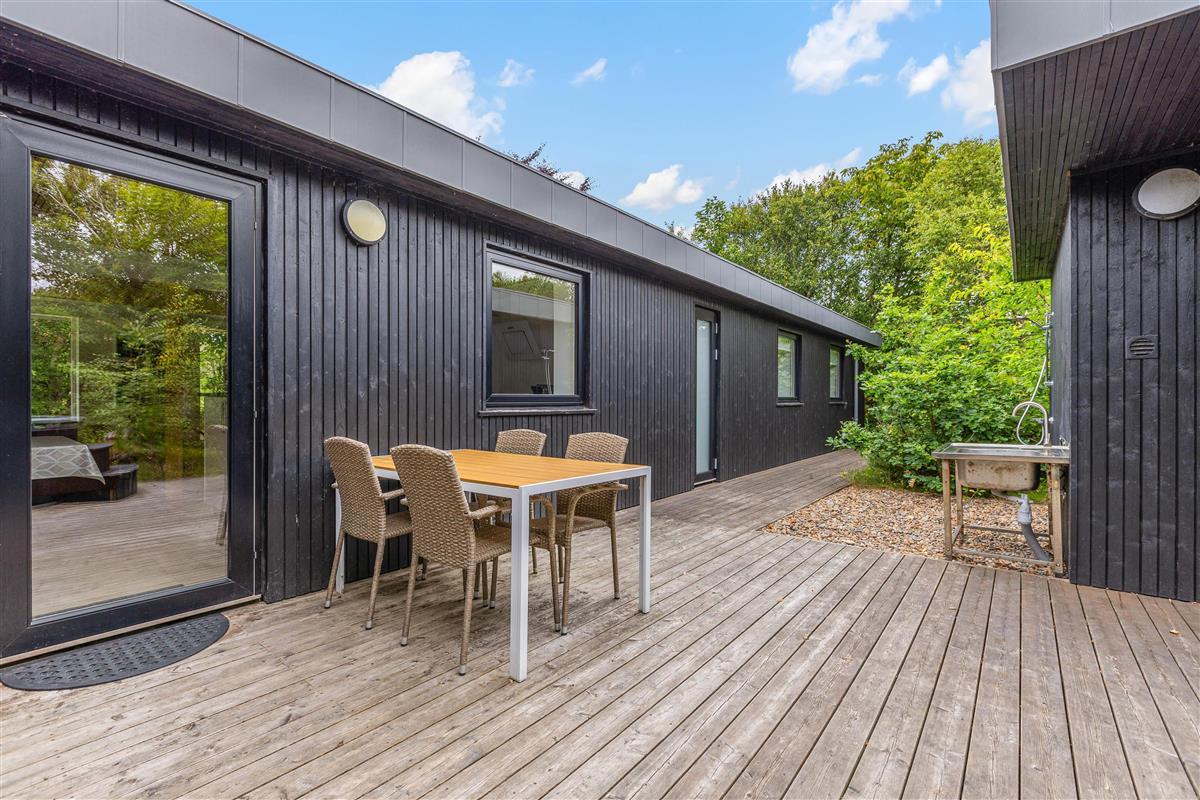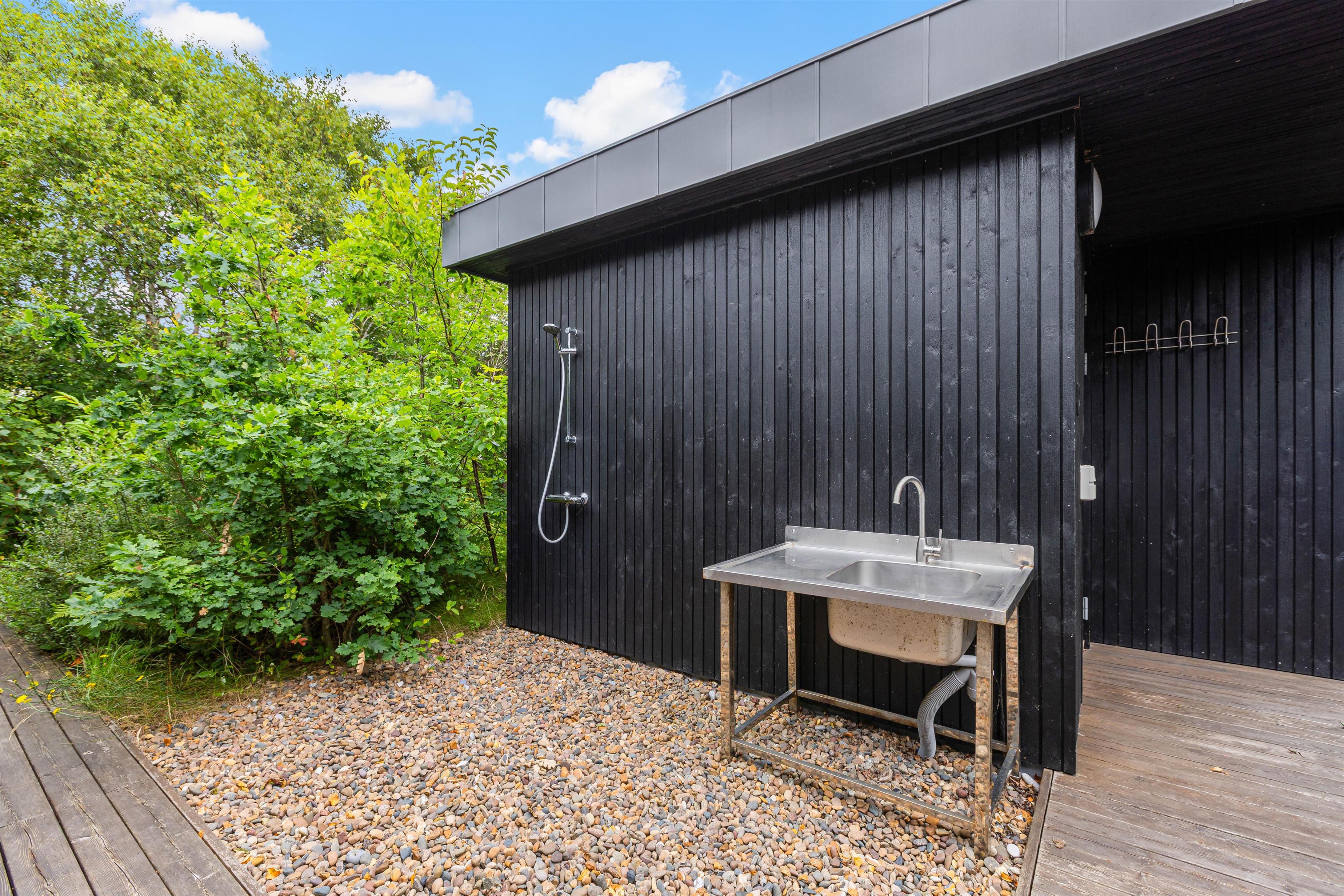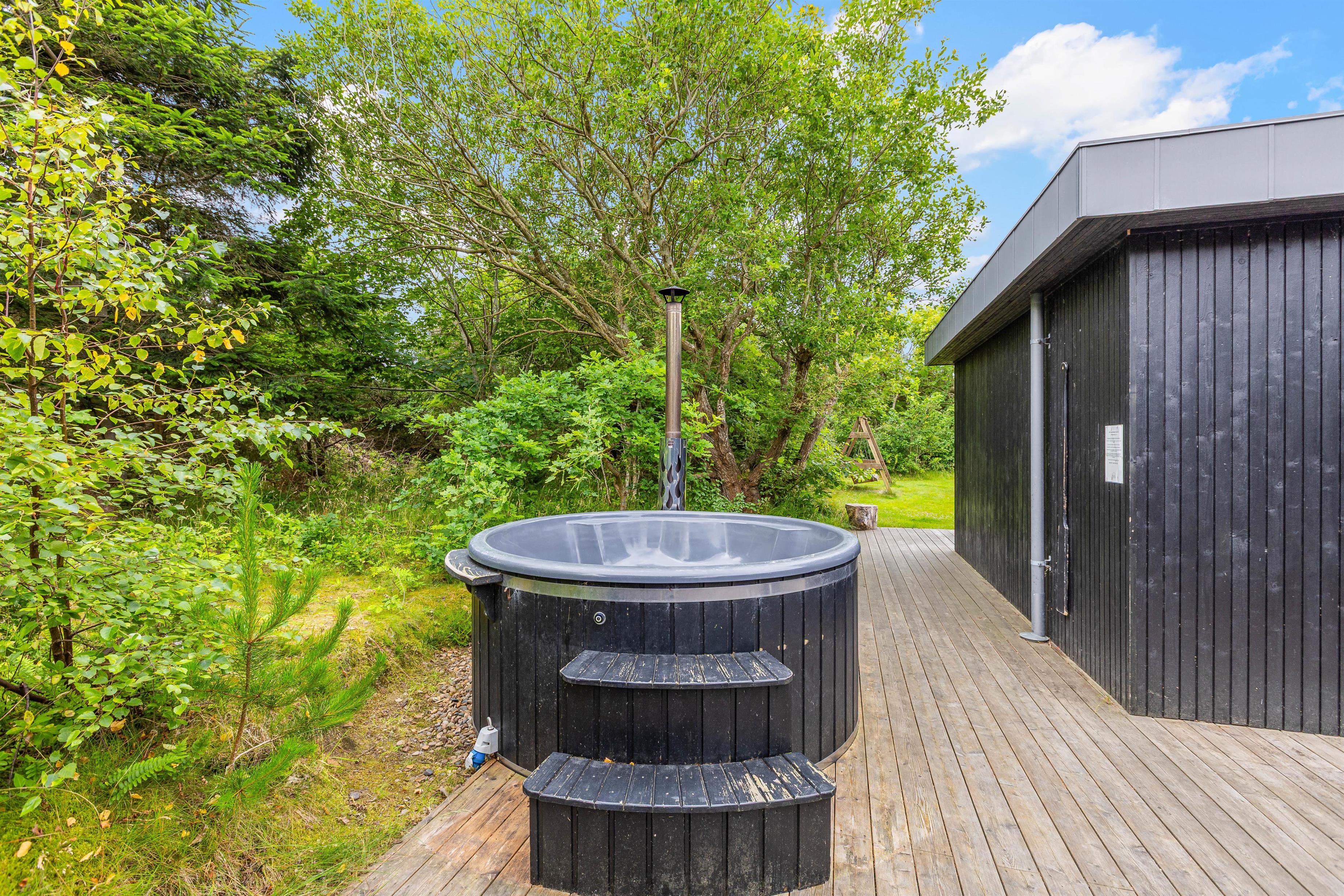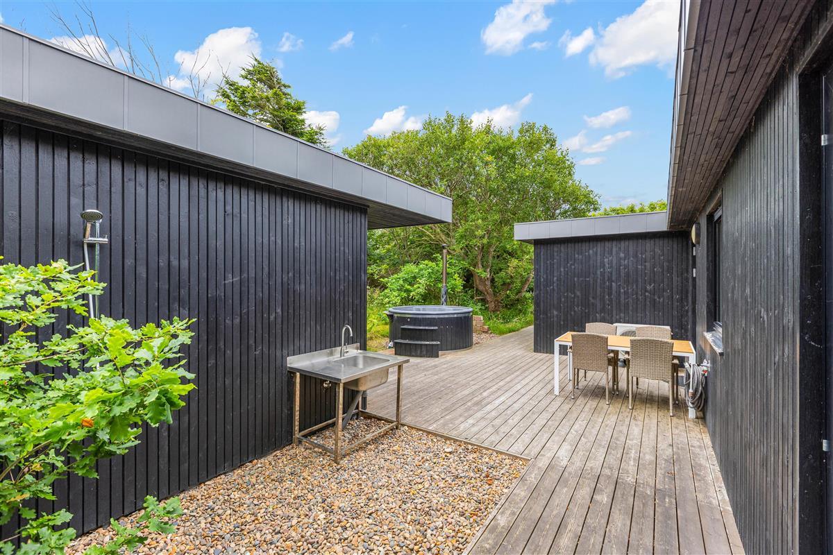 The beautifully designed terrace allows you to follow the sun, always finding a spot in either sun or shade. A barbecue enables outdoor meal preparation and dining. For outdoor enthusiasts, this holiday home is a dream come true. Ever fancied sleeping under the stars, showering outdoors, or cooking in the open air? It's all possible here - thanks to a shelter (outdoor sleeping structure), an outdoor shower (available April-November), and outdoor kitchen - perfect for fresh air enthusiasts. It's an exciting adventure for children! Not to forget - the Nordic-style outdoor bath and sauna - providing unique relaxation experiences!