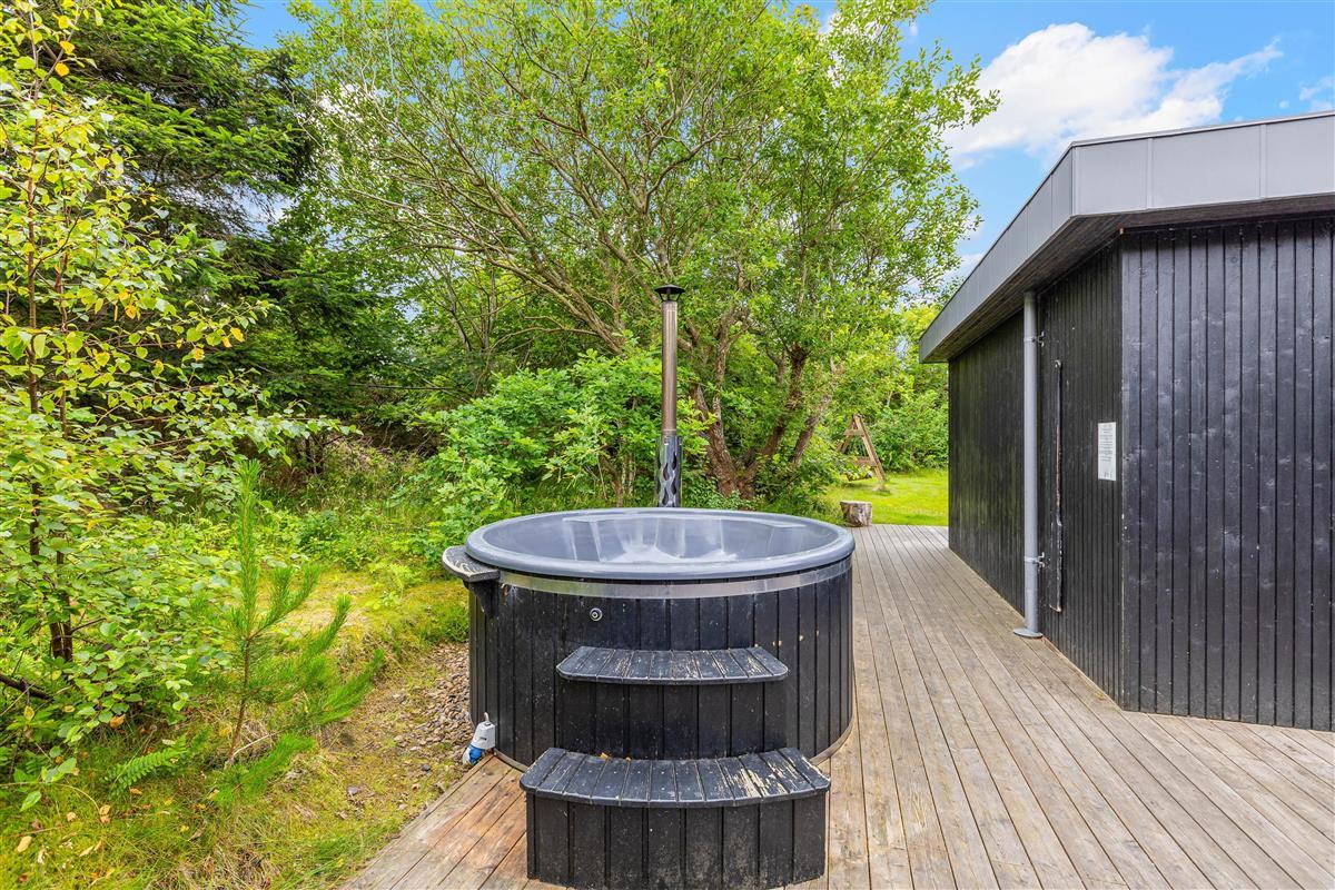 Situated in the heart of the Lodbjerg Hede holiday community and close to the resort of Søndervig, this stylishly renovated holiday home sits on wonderfully spacious grounds. Highlights include a large outdoor bath, an outdoor sauna, a shelter (camping structure), an outdoor shower, and an outdoor kitchen. The holiday home comfortably accommodates up to 8 people. Dogs are also welcome!