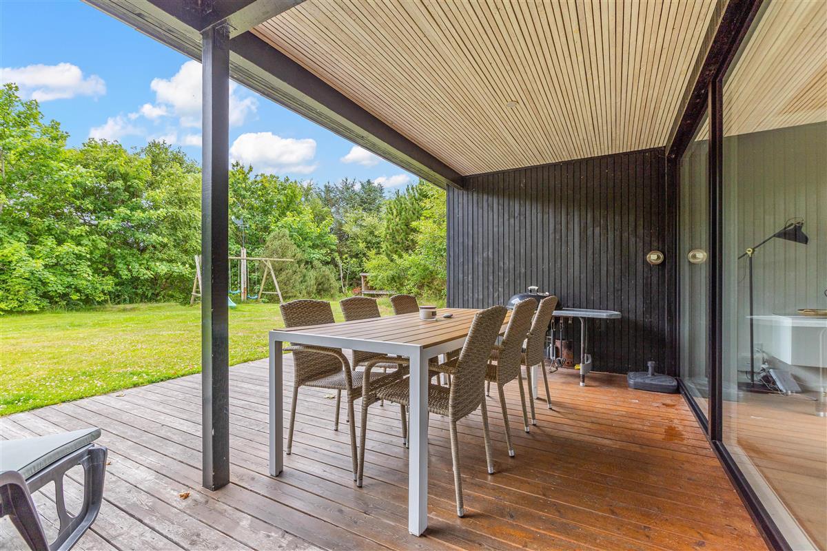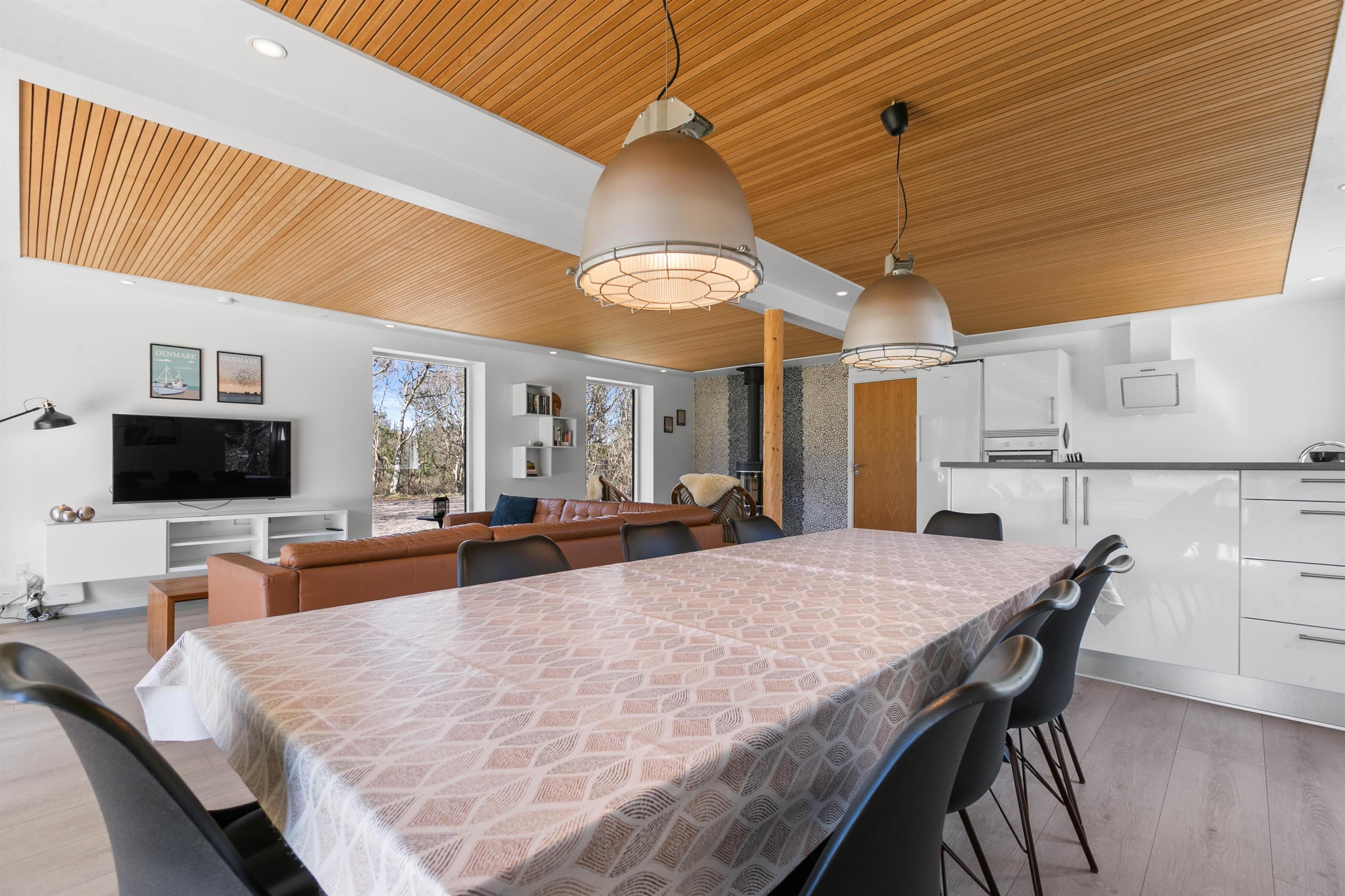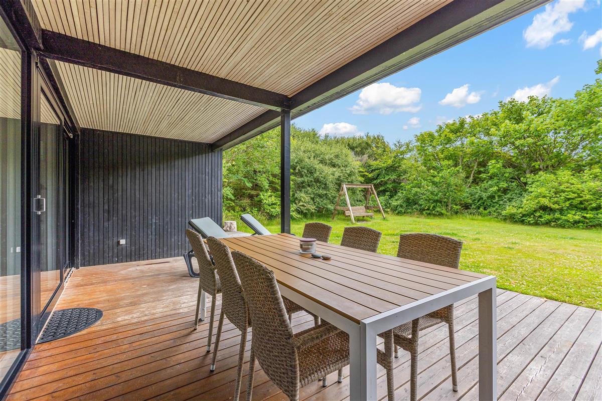 The holiday home sits on large natural grounds in Lodbjerg Hede, offering peace and privacy with sun loungers on the terrace. Children are well catered for with a swing and sandbox for hours of fun. The large lawn is also perfect for playing ball games with the family dog.