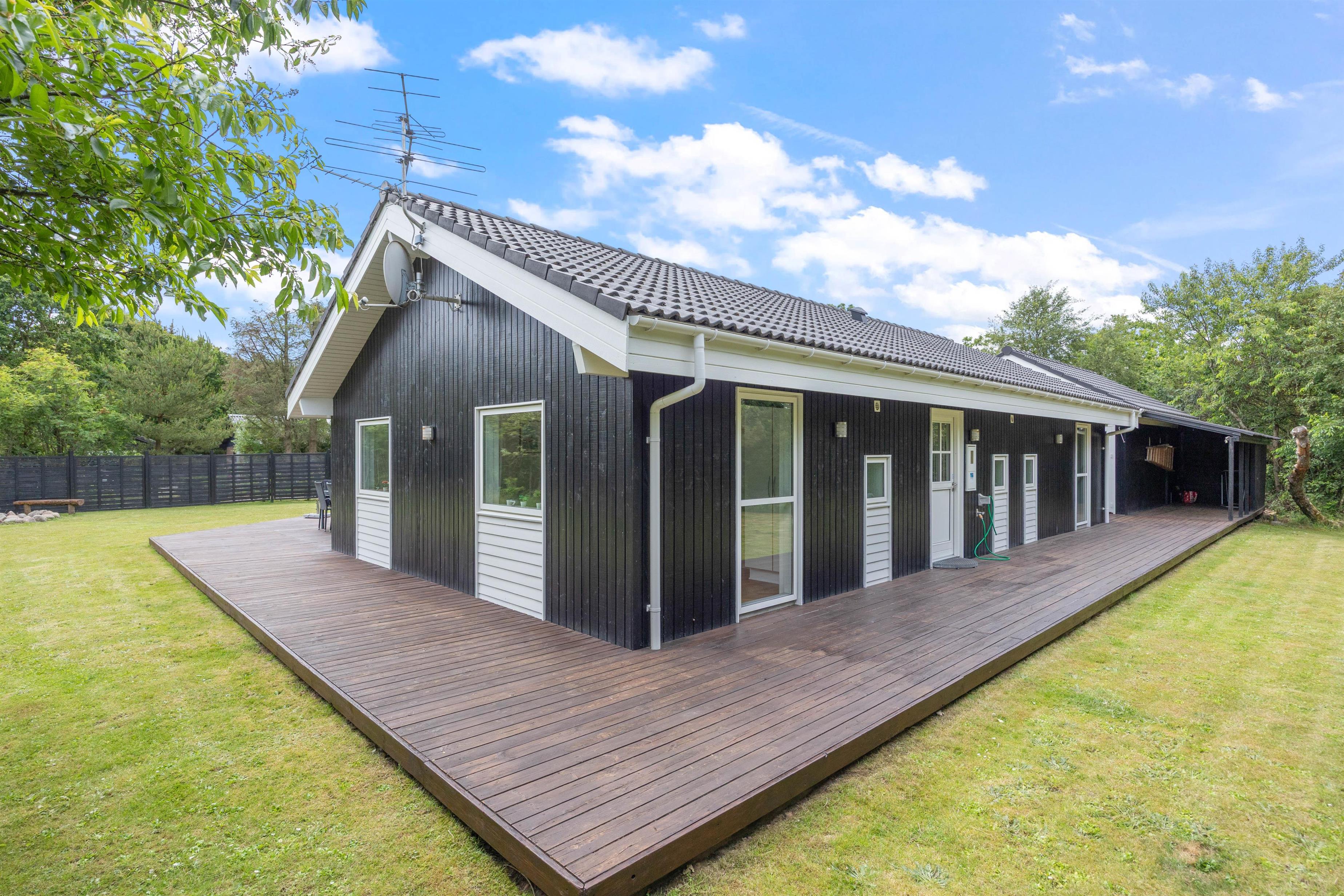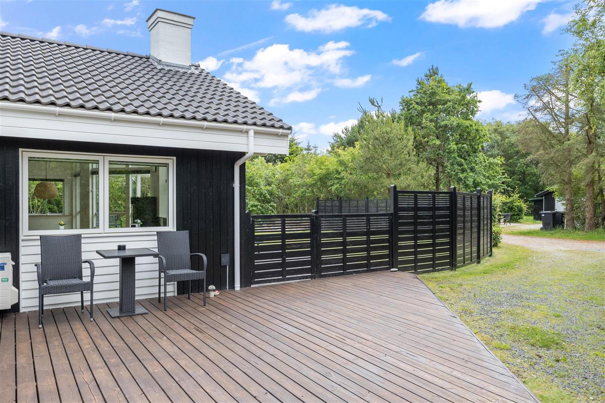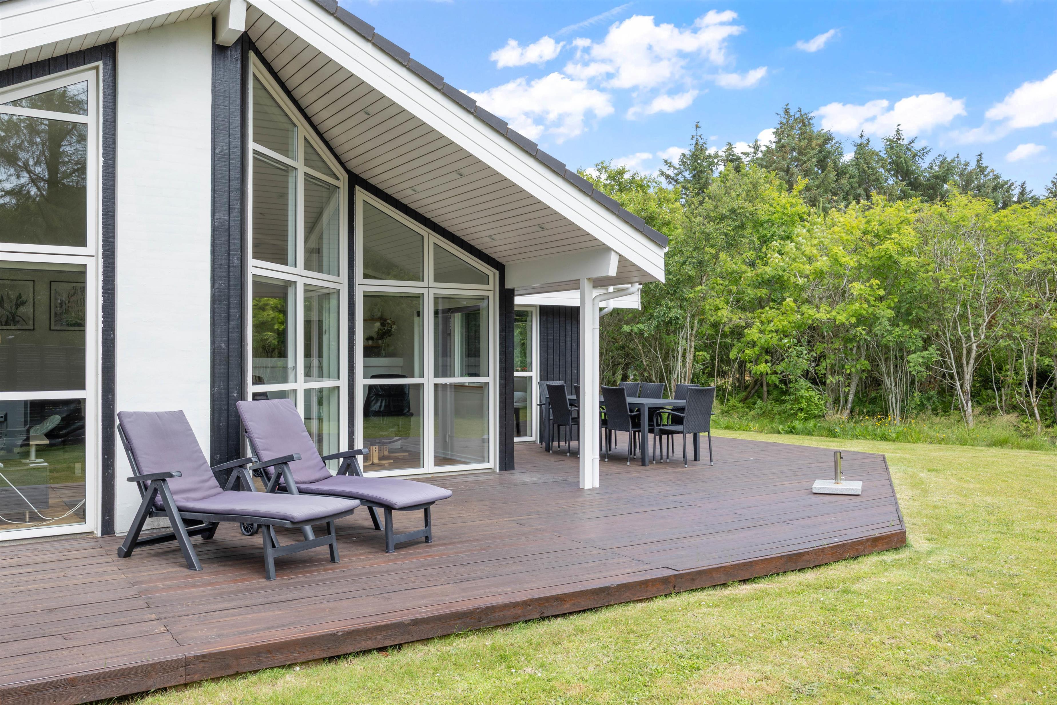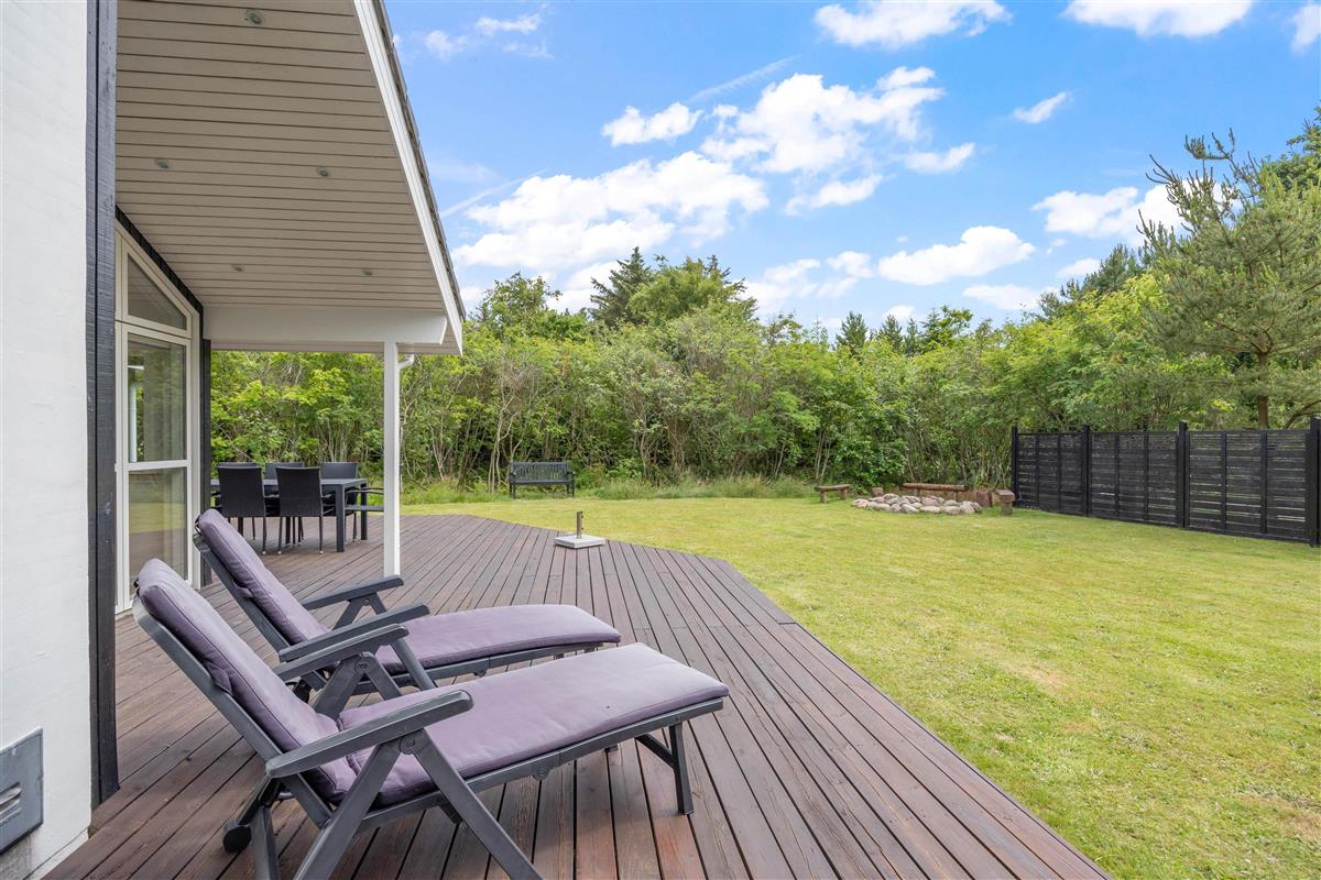 The large wooden terrace offers plenty of sunny spots, with a covered section providing welcome shade when needed. Around the holiday home, you'll find several cosy corners perfect for settling down with an exciting book or cup of coffee in peace.