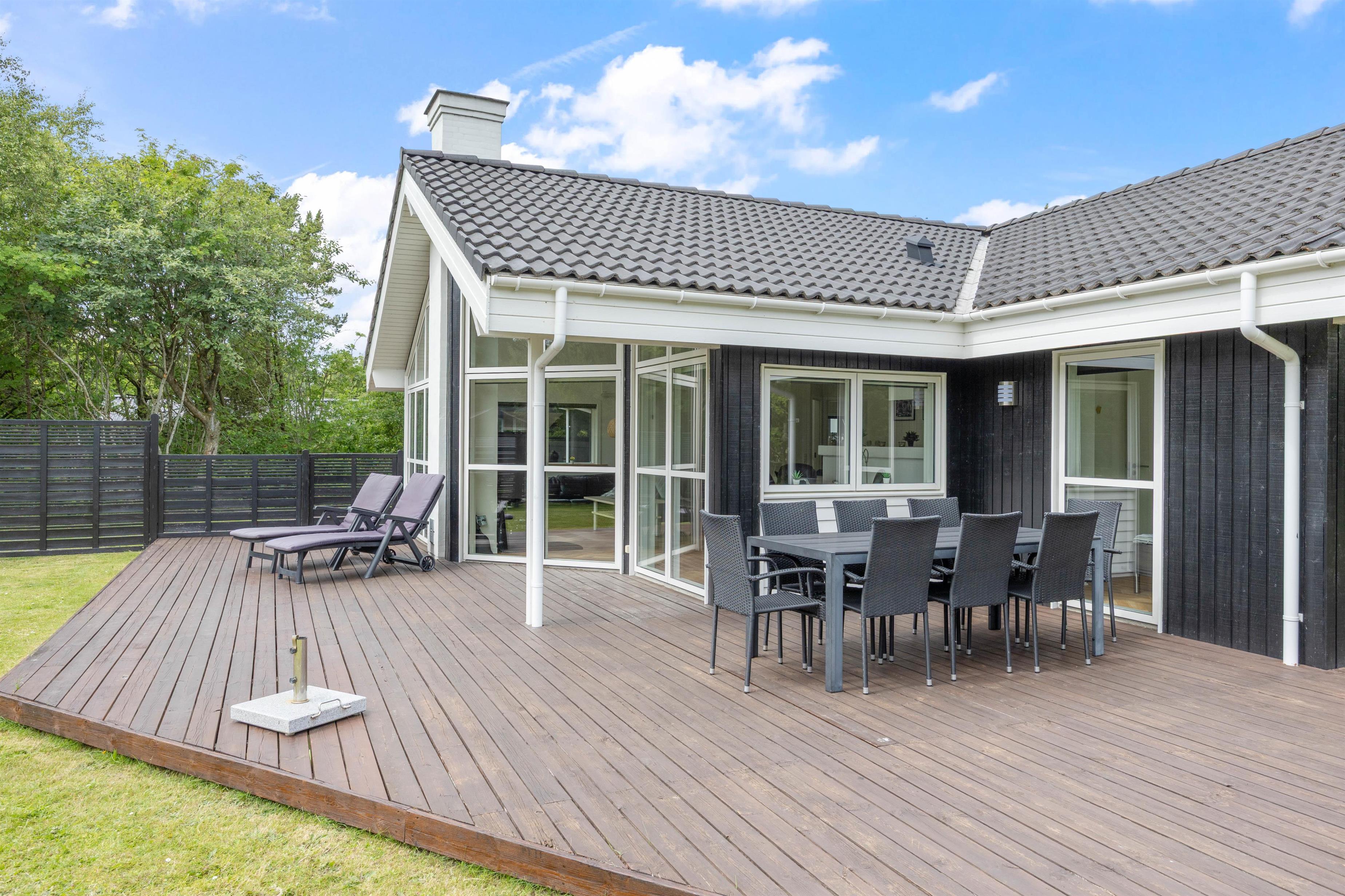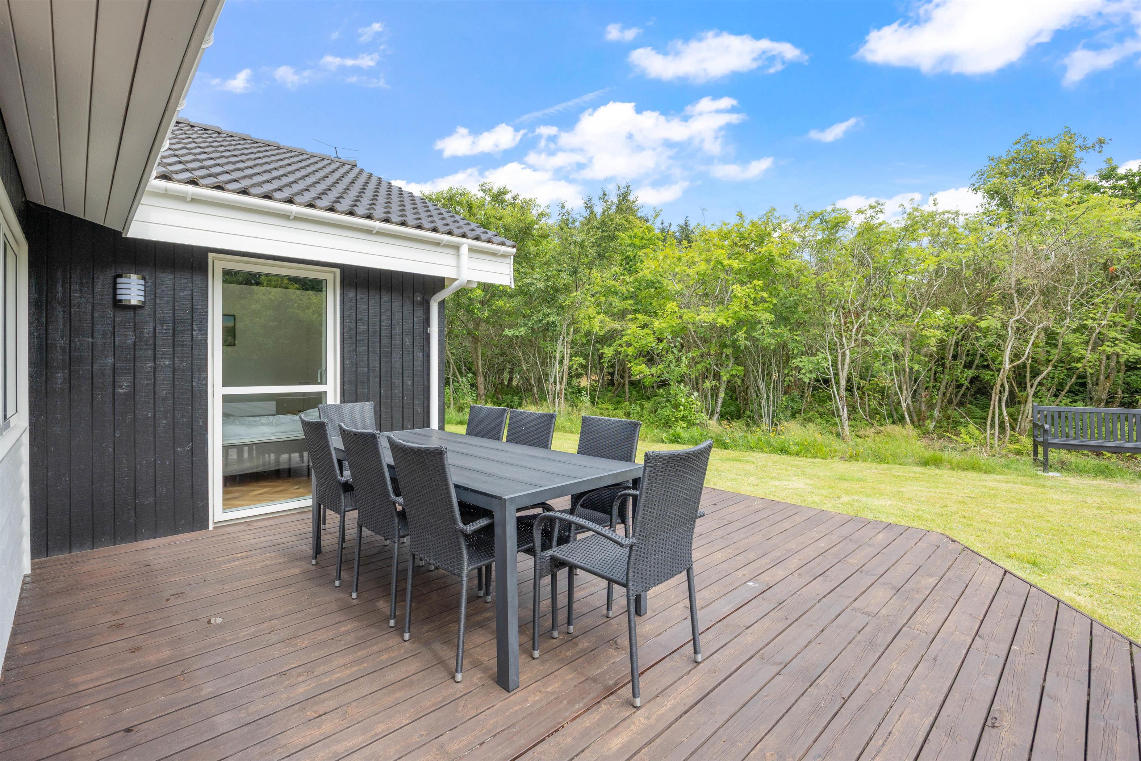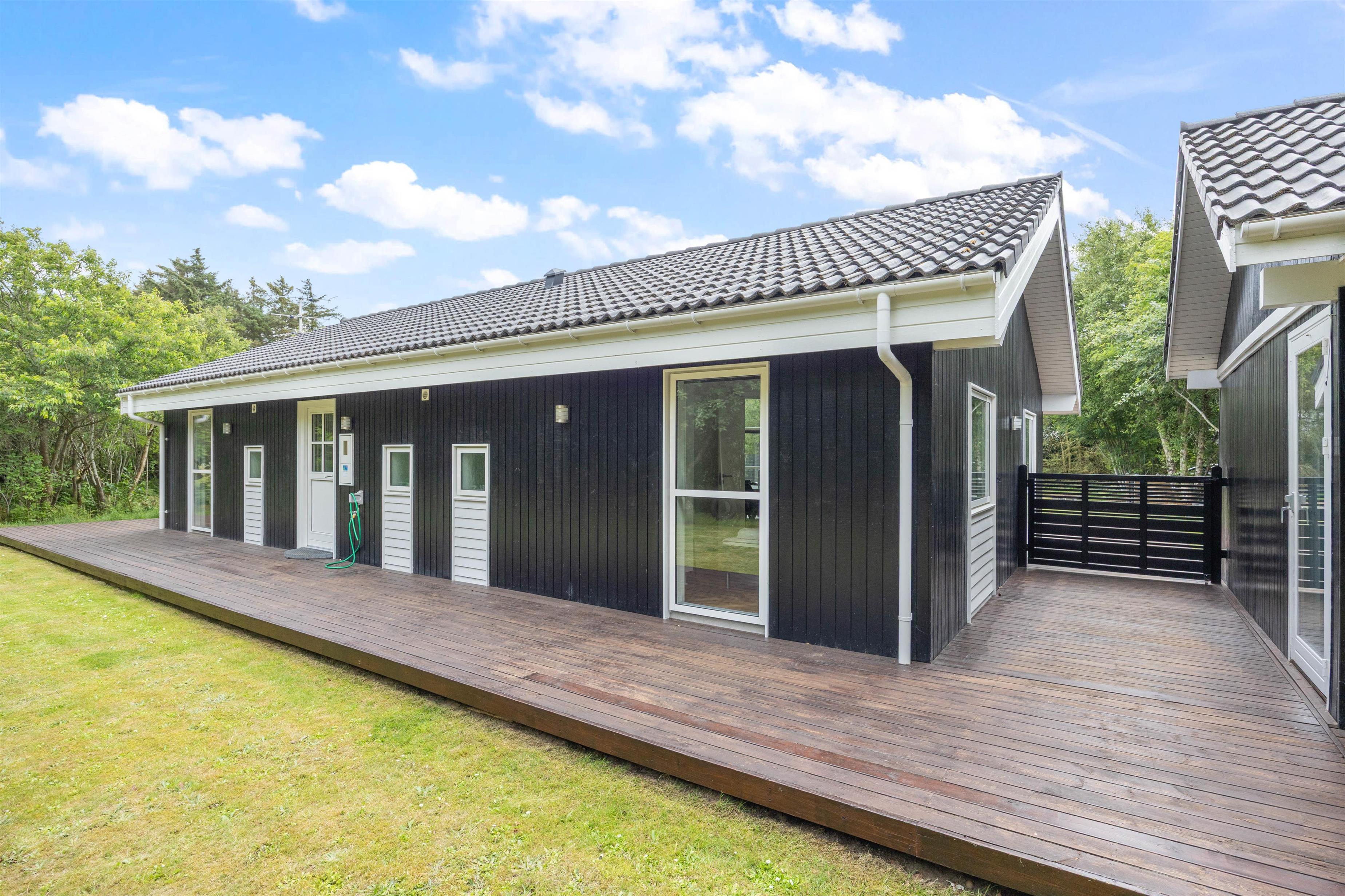 The large wooden terrace offers plenty of sunny spots, with a covered section providing welcome shade when needed. Around the holiday home, you'll find several cosy corners perfect for settling down with an exciting book or cup of coffee in peace.