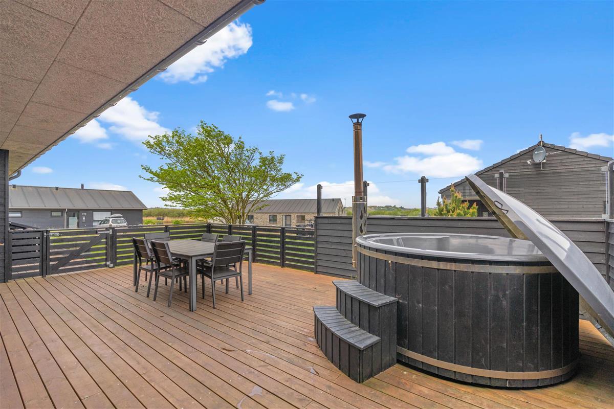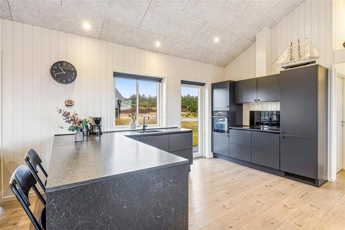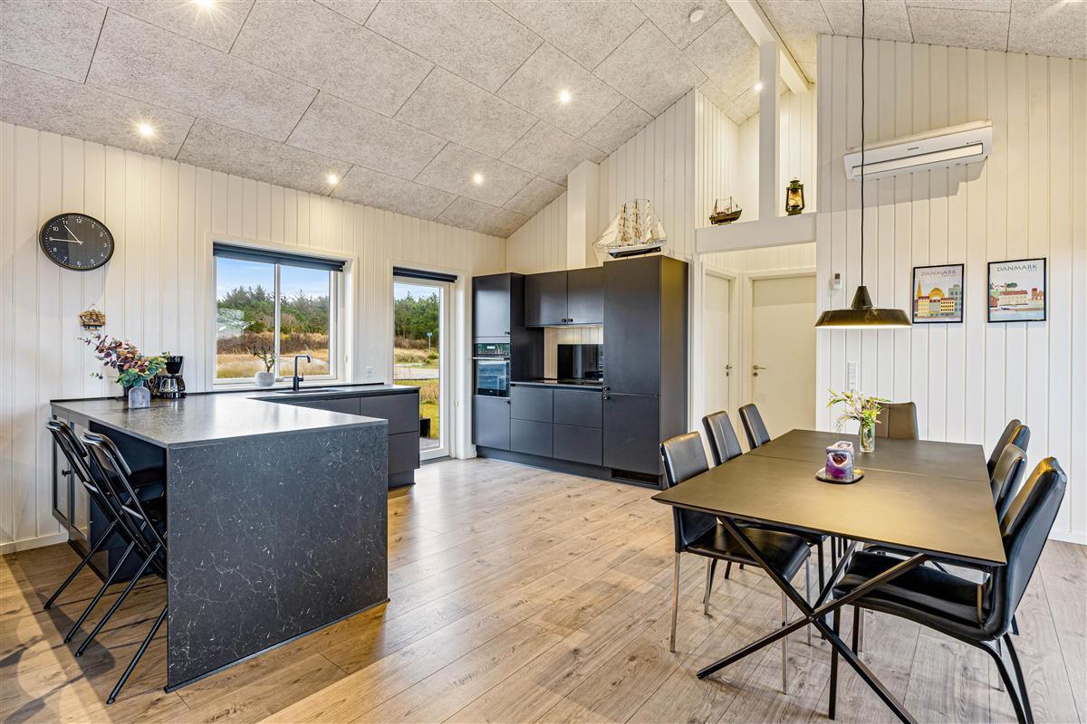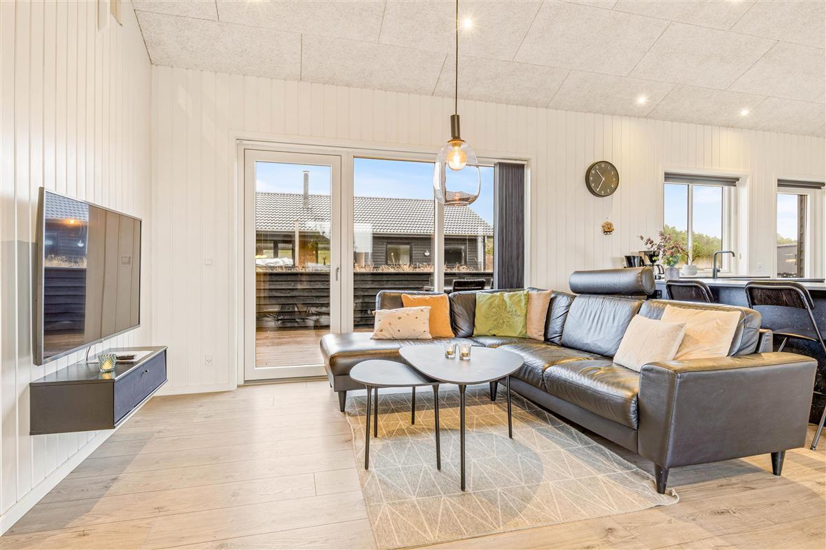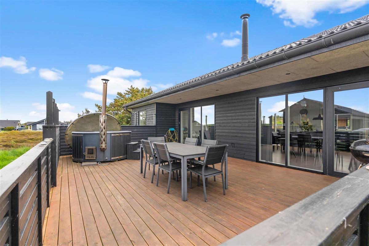 This elegant holiday home, built in 2020, is situated in a peaceful holiday region near Søndervig and offers excellent accommodation for up to 8 people and 2 dogs, perfect for a seaside holiday. A special highlight awaits you on the sheltered terrace - an outdoor hot tub under the open sky with space for 4 people!
