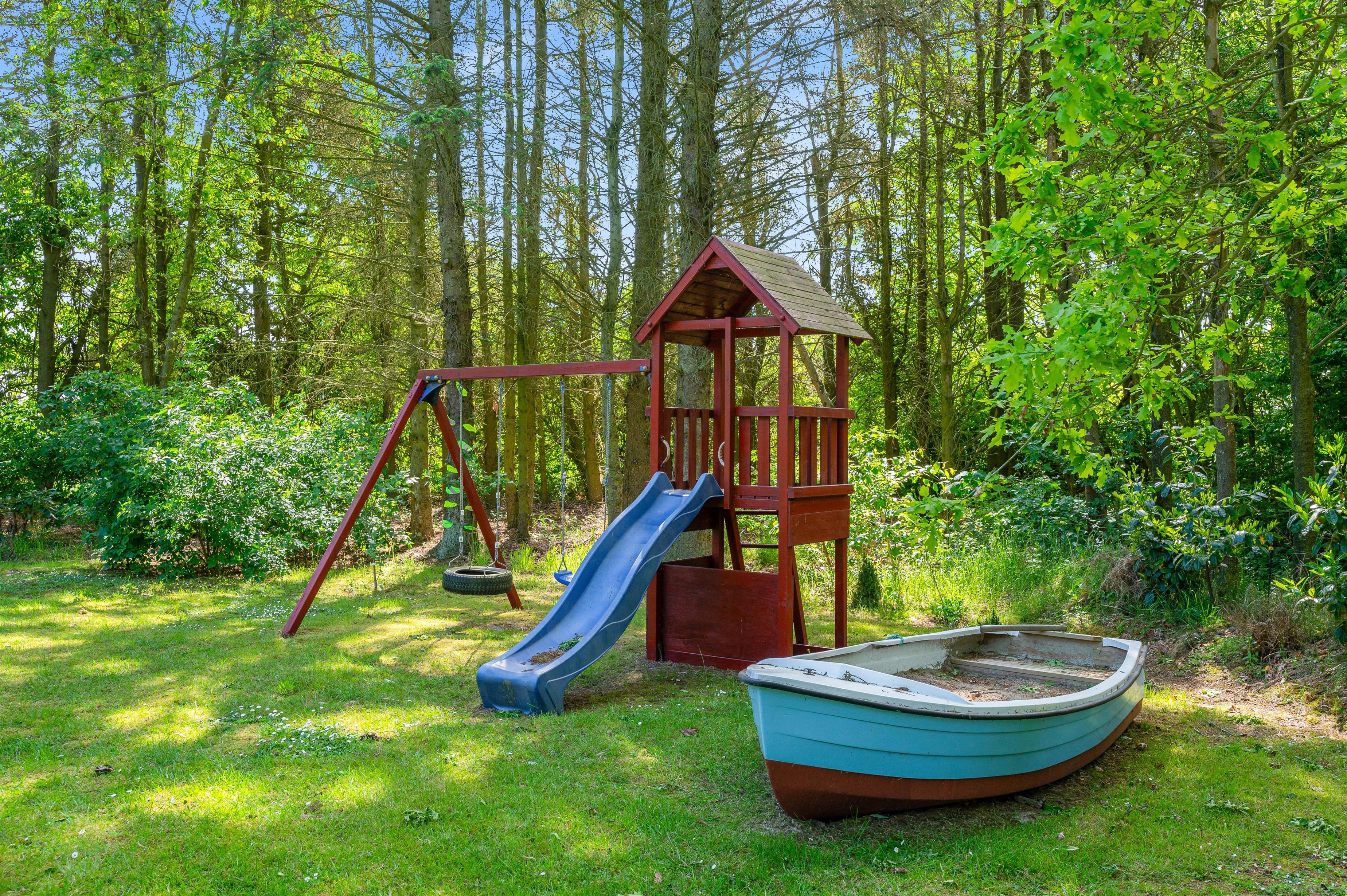 The holiday home features a shelter where you can spend the night outdoors and wake to birdsong and glorious sunrise - give it a try! It's a wonderful adventure for both adults and children.