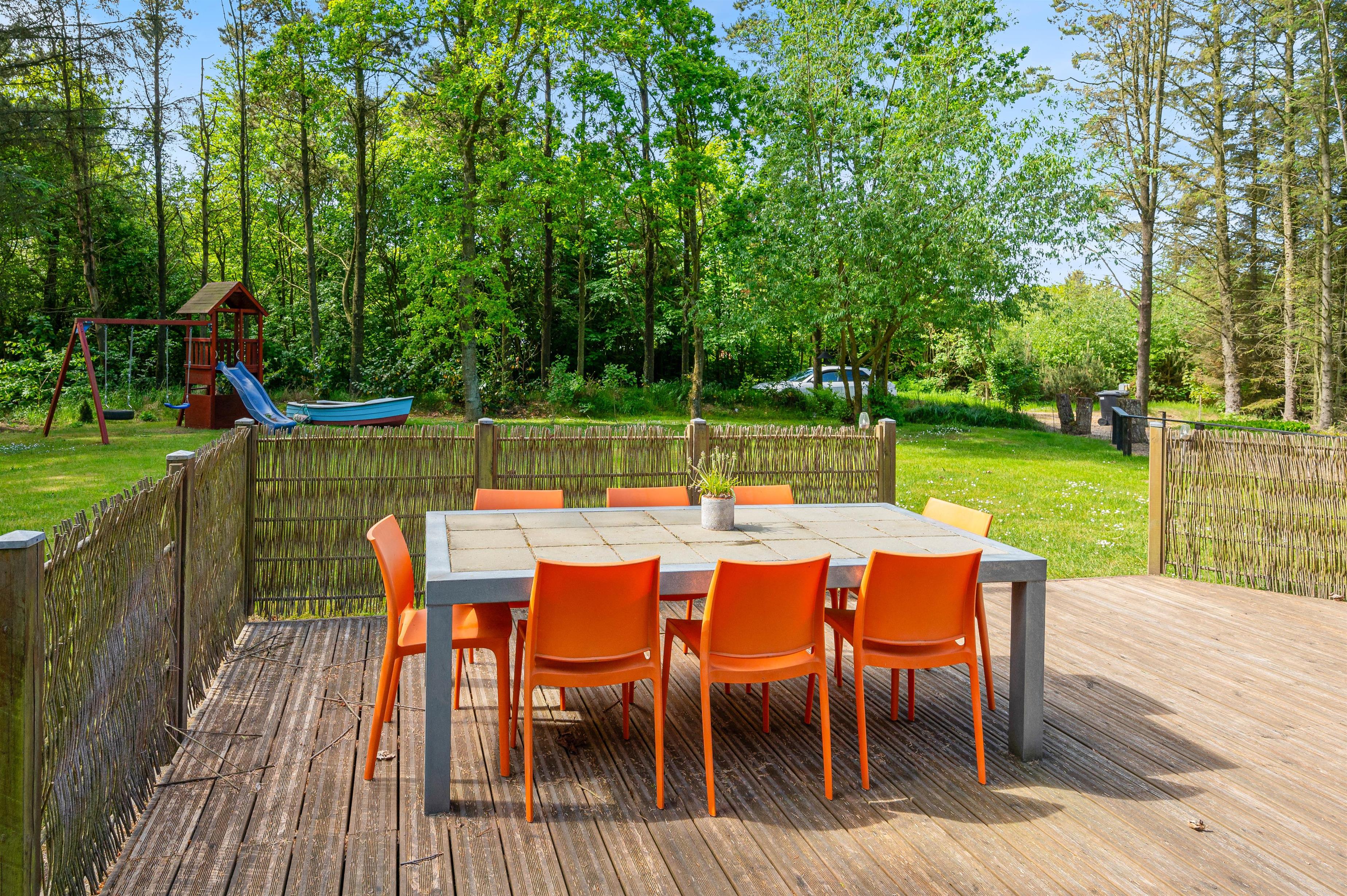 The summer house on Bøgealle 3 is situated in a peaceful area of the Lodbjerg Hede holiday region. The family-friendly holiday home is surrounded by over 2,000 square metres of green space, providing plenty of room for children and dogs to play and explore.