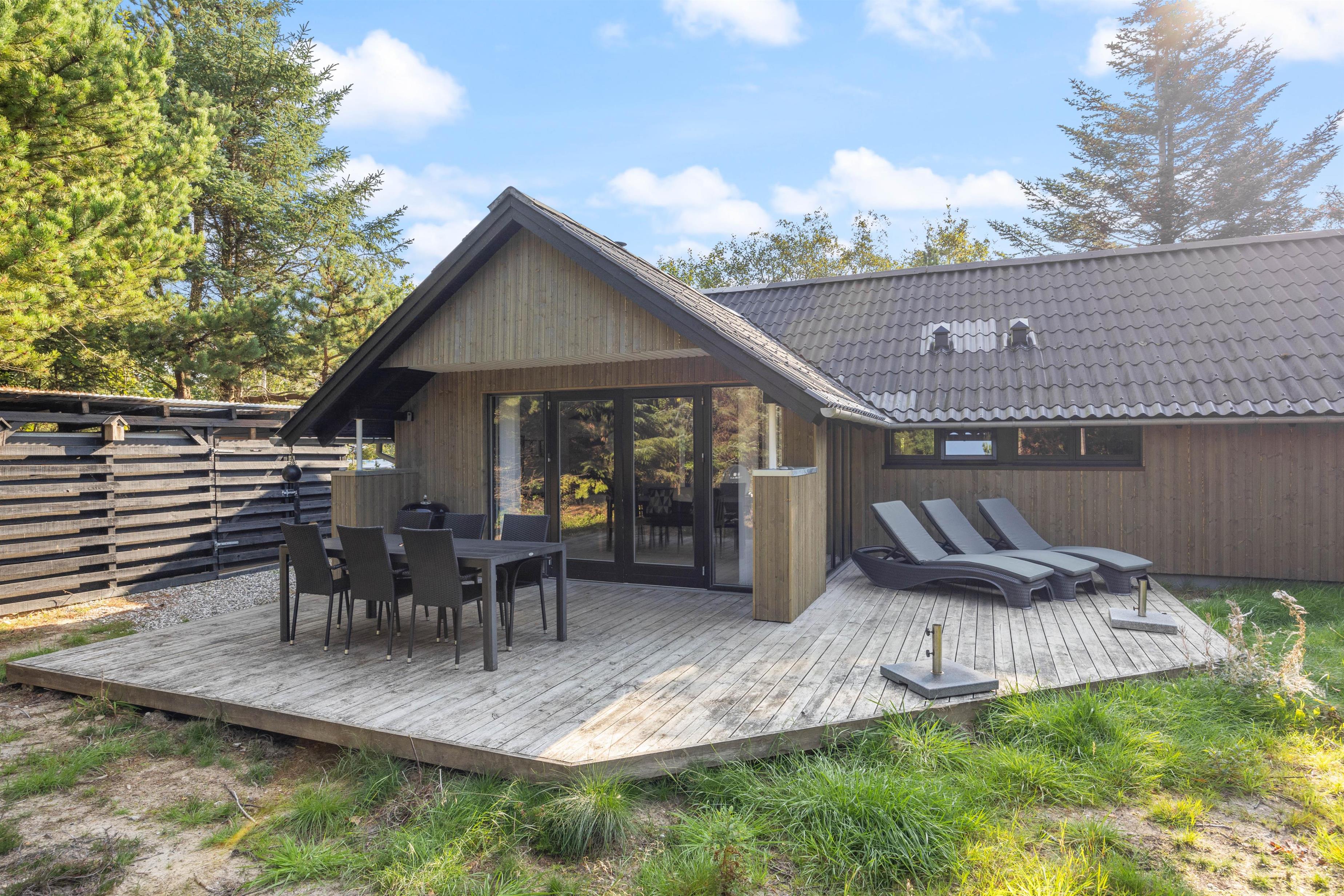 Located at Ahornallee 14 in Lodbjerg Hede, this house offers plenty of space both indoors and outdoors for families with up to two dogs.