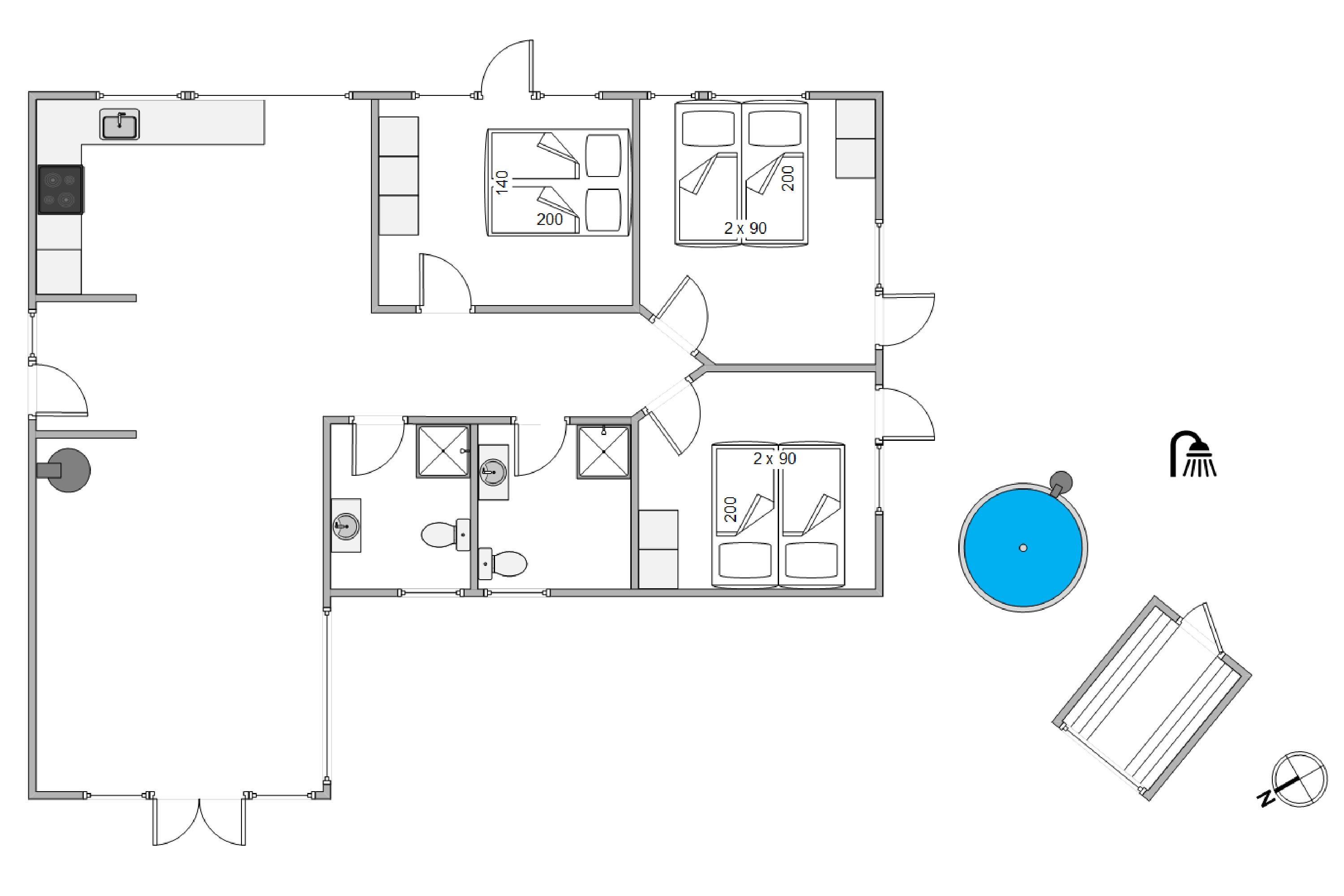 Impressive outdoor area - large plot with wood-fired hot tub, shower and garden sauna