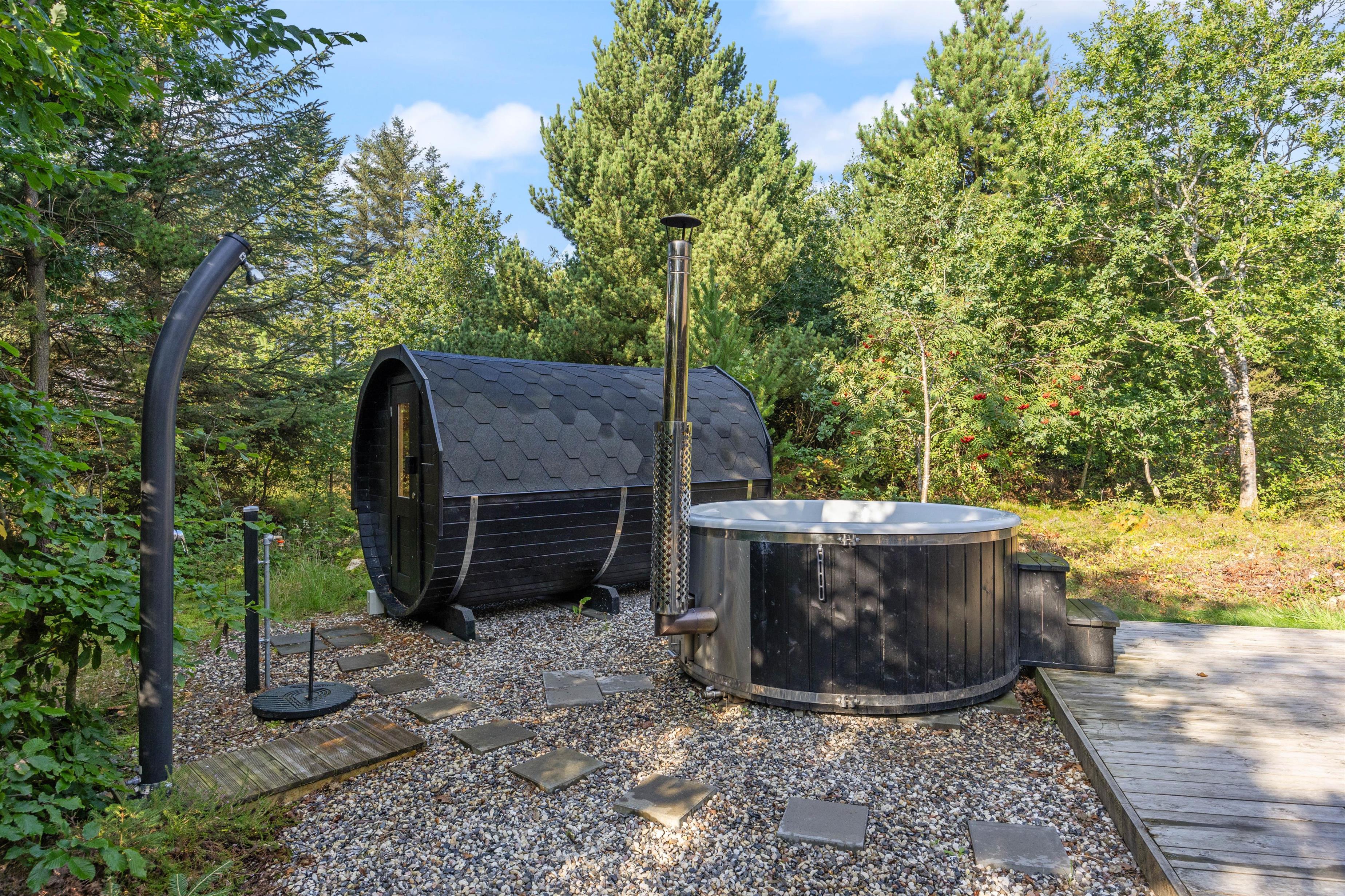 Thanks to the holiday home's beautiful location, you can fully immerse yourself in your wellness experience - accompanied only by the song of wild birds chirping in the treetops.