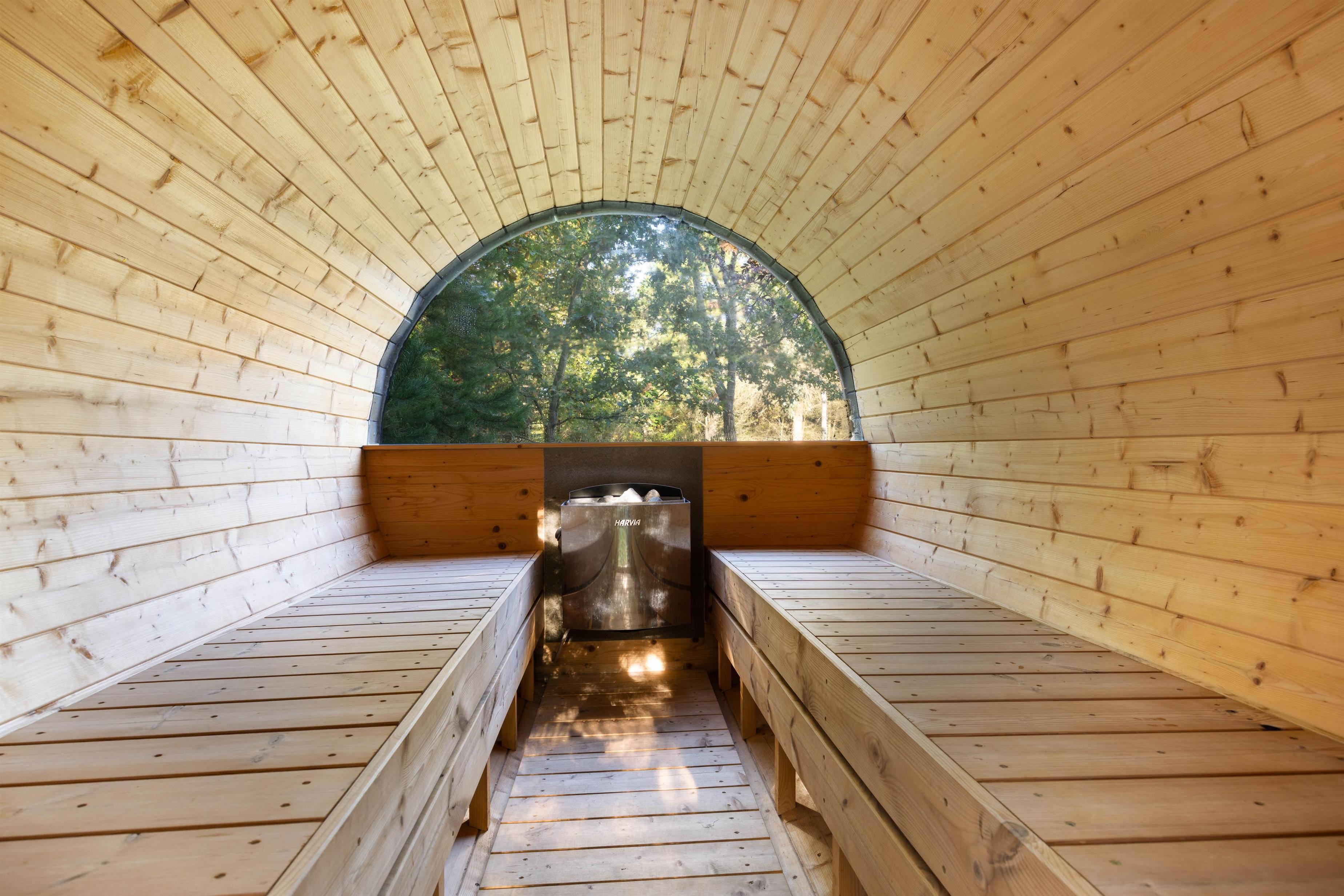 A traditional Nordic wood-fired hot tub and an outdoor sauna with views of the greenery are just two of the compelling features. Please note that to prevent frost damage, the outdoor shower is only available from April to November.