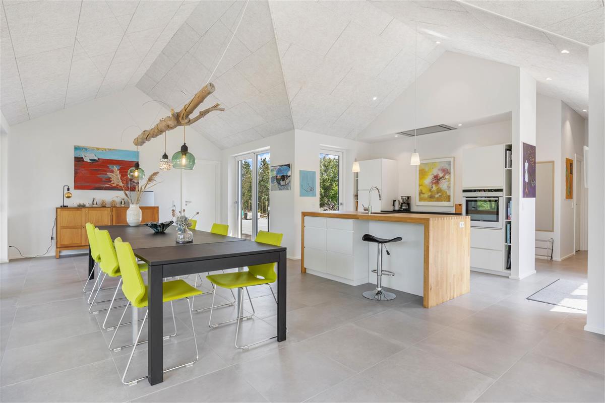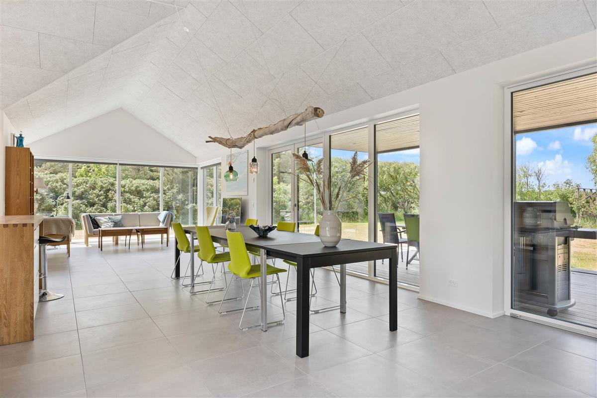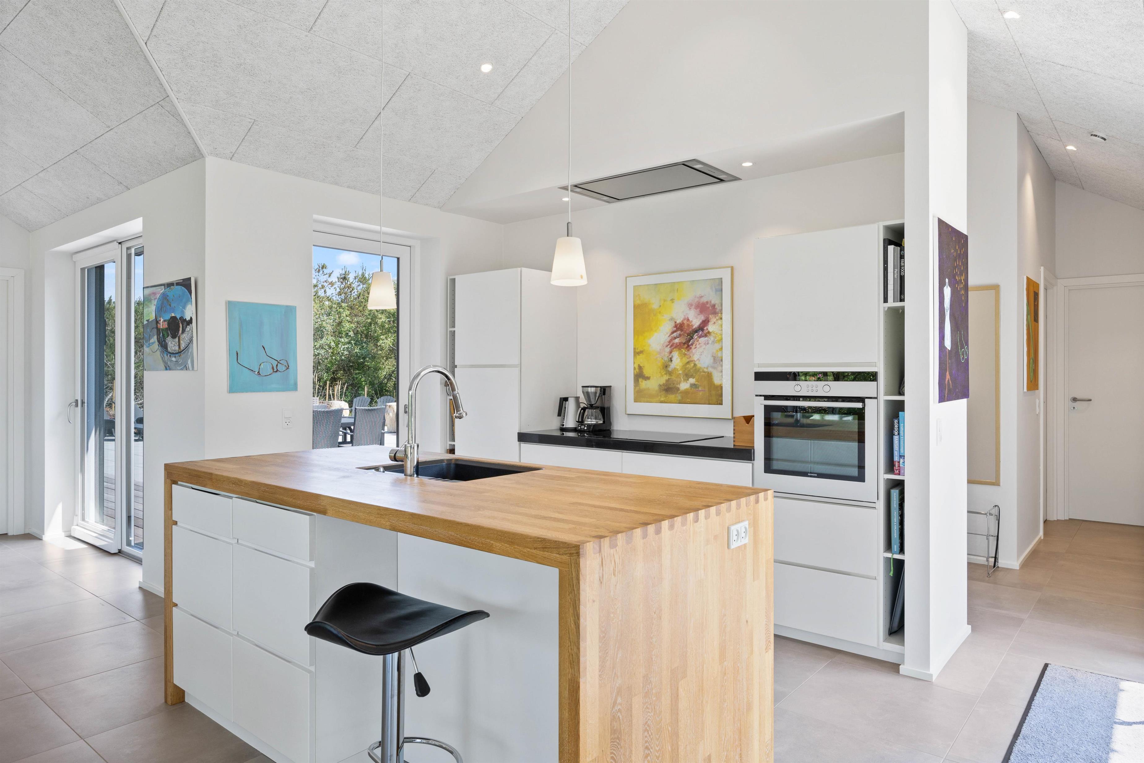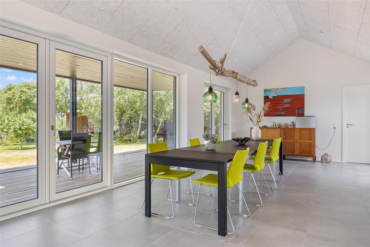 The holiday home at Egernvej 1 is ideal for couples or small families with dogs dreaming of a relaxing holiday in modern surroundings. The 120 square metres of living space feels even more spacious thanks to the light colour palette, large windows and open-beam ceiling.