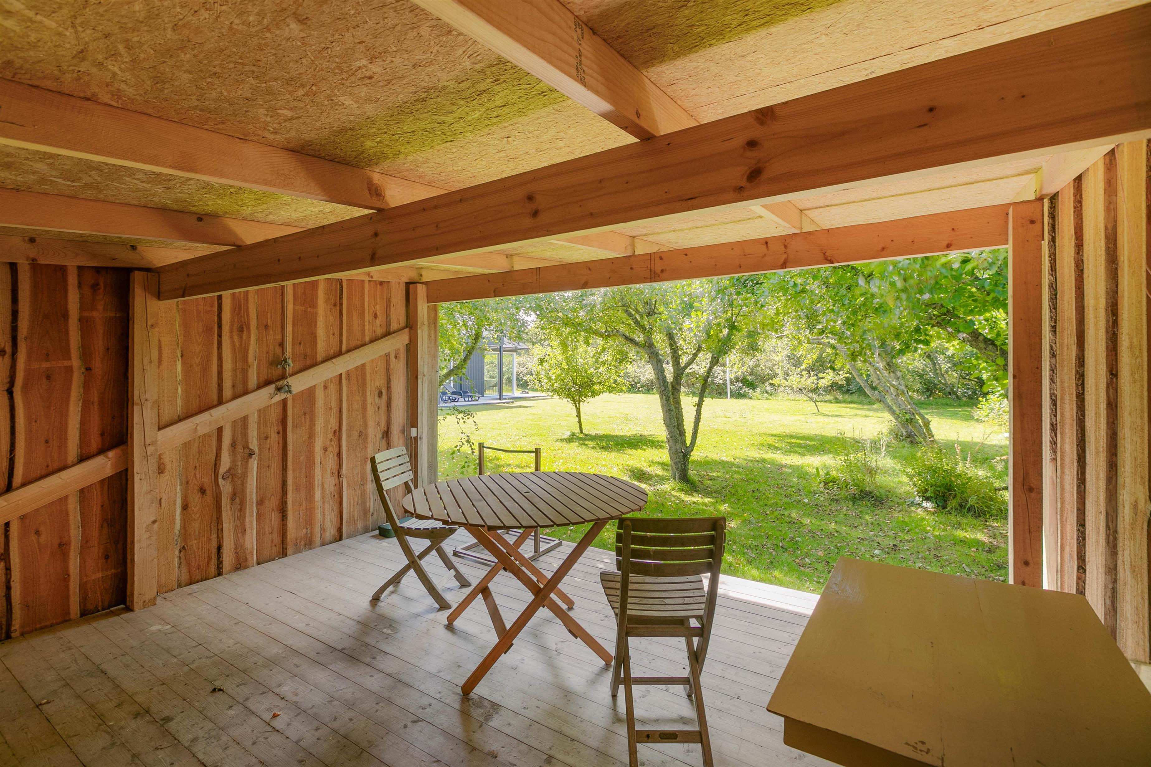 Beautiful outdoor area with covered terrace, outdoor shower and shelter